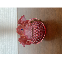 VTG UV REACTIVE FENTON Hobnail Amberina Cats Head Shoe/Slipper Figurine 5.5"L