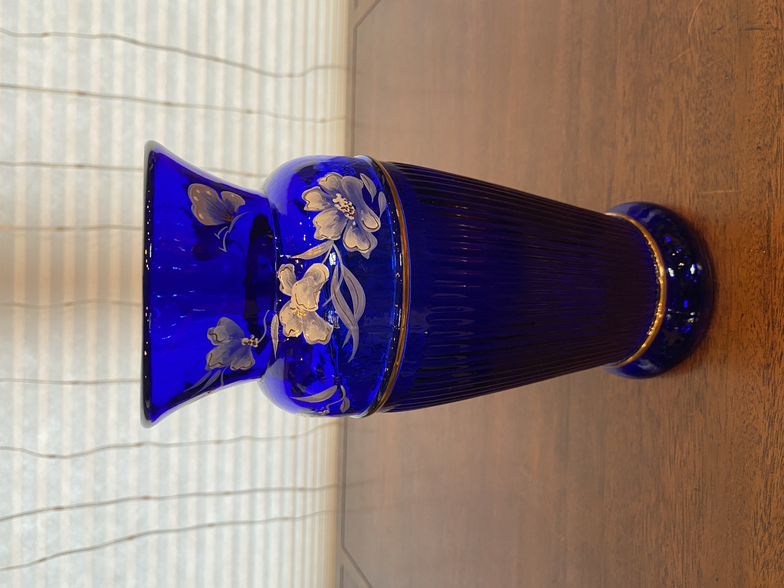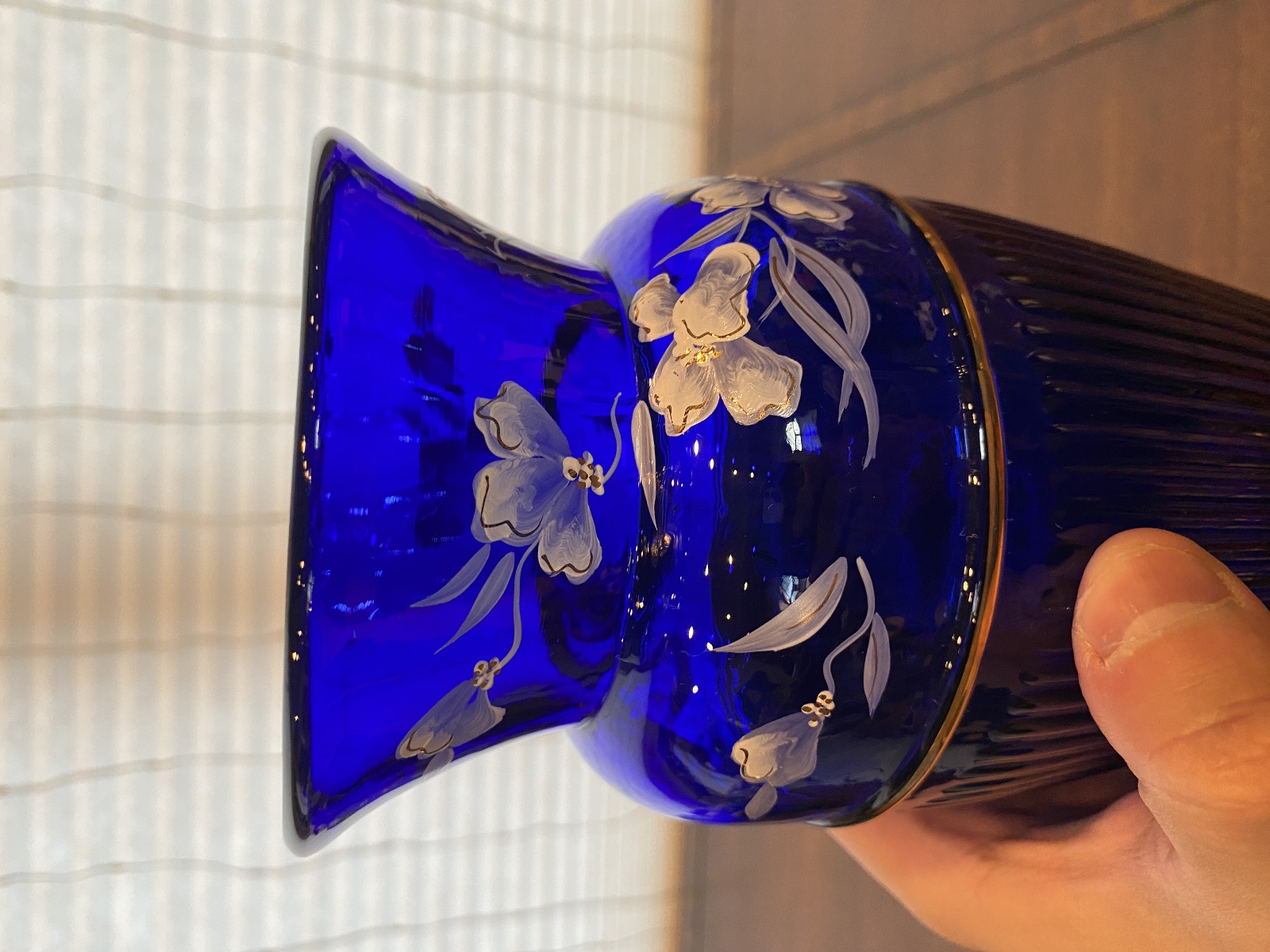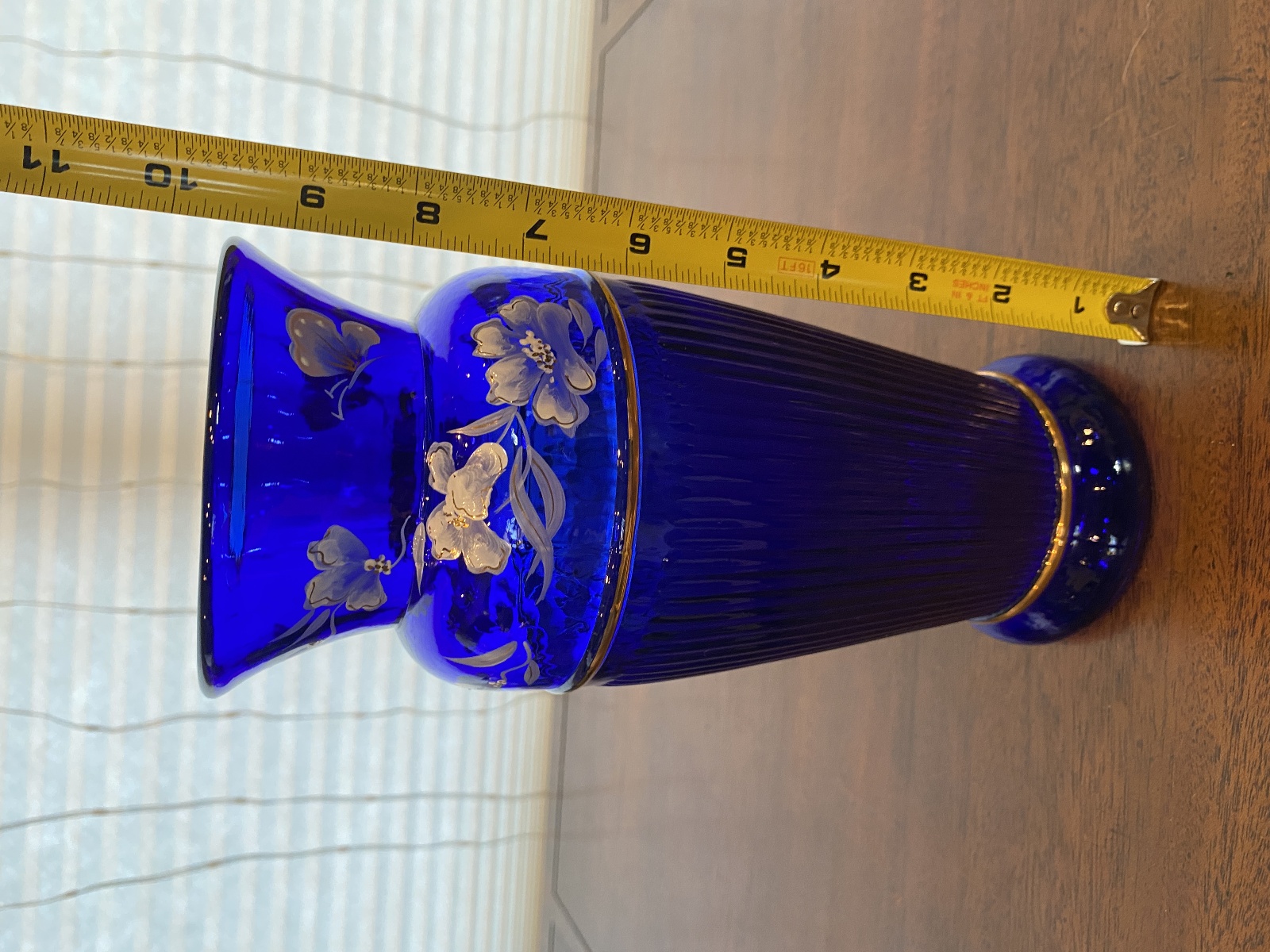 FENTON Cobalt Blue LANDMARK COLLECTION LTD ED #773/5000 Floral Vase 9.5"H SIGNED