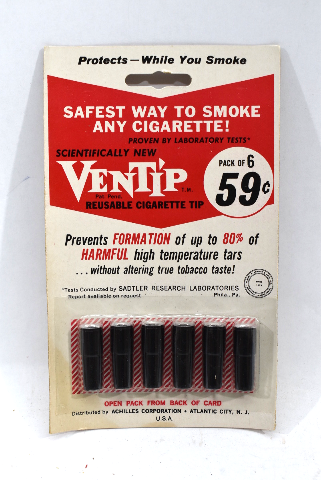 1960's VenTip Pack of 6 Cigarette Filter Tips Collectible Collector Ad 6.5"x4" New Old Stock pack of six reusable cigarette tips. See photos for details.