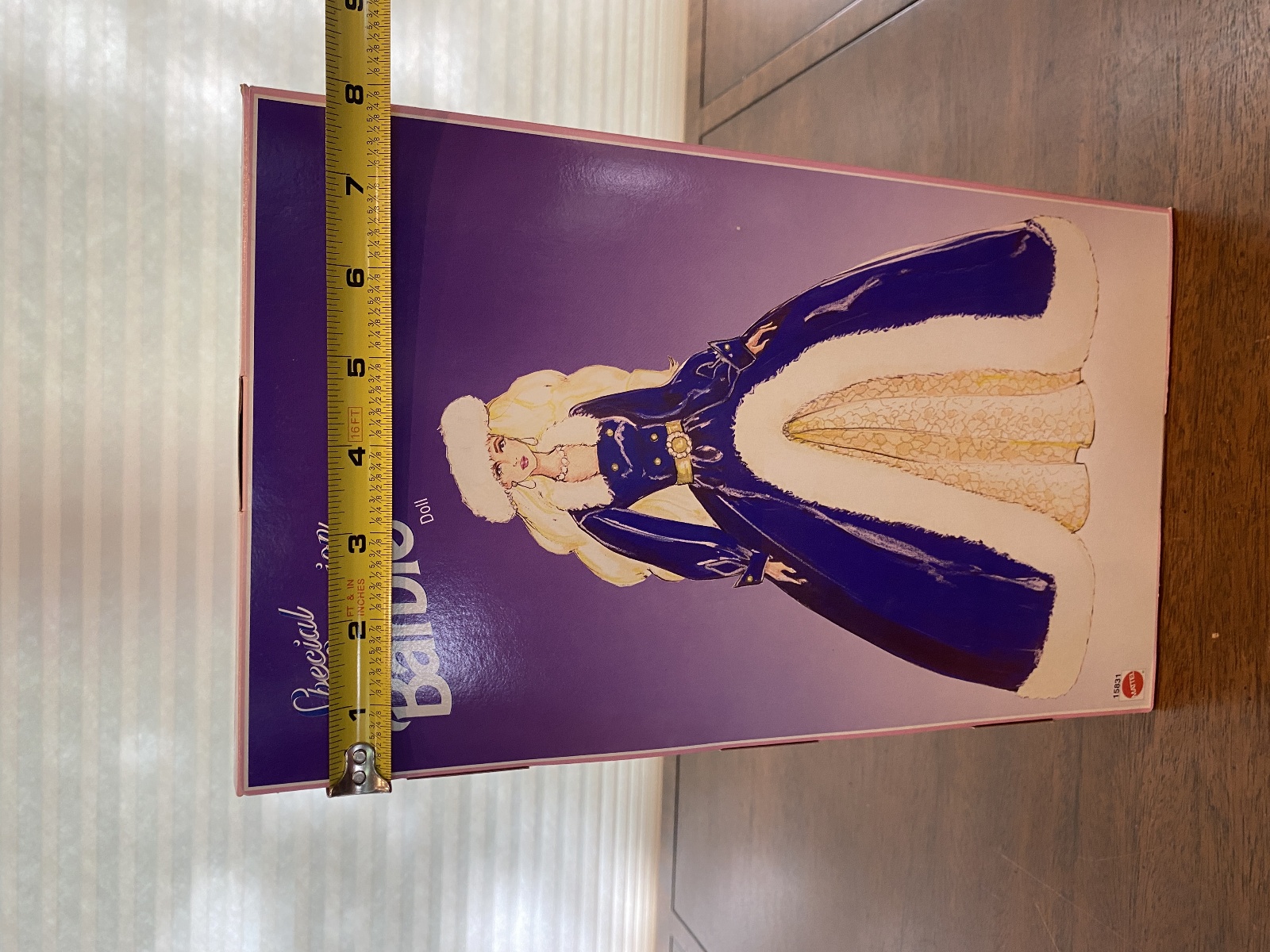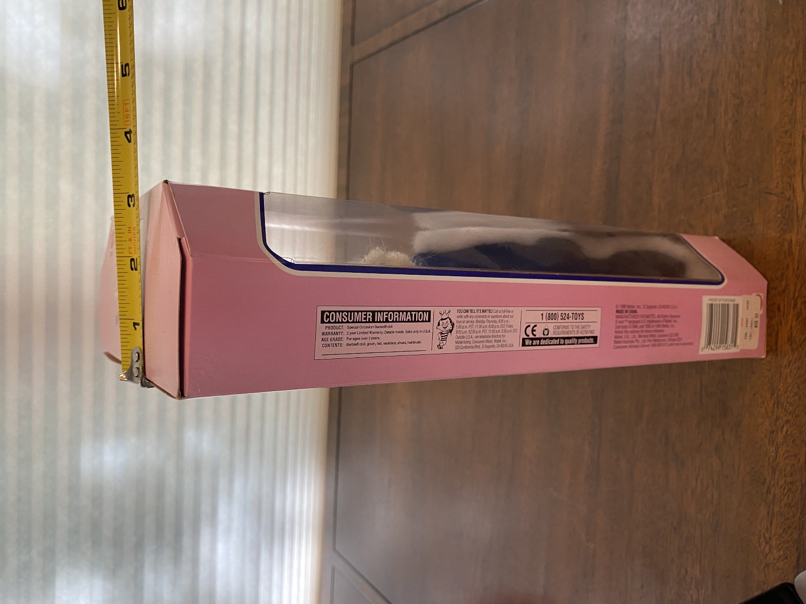 Doll is in great shape, box has some wear (Please refer back to the photos for condition and feel free to message me if you have any questions. Thank you)! Approximate measurements 8"L x 3"W x 13.5"H(SIZES OF THE BOX). 100% of the proceeds go to the registered non profit Cards of Love Inc. and with your purchase you are helping raise money to fund scholarships for at risk youth. Thank you!