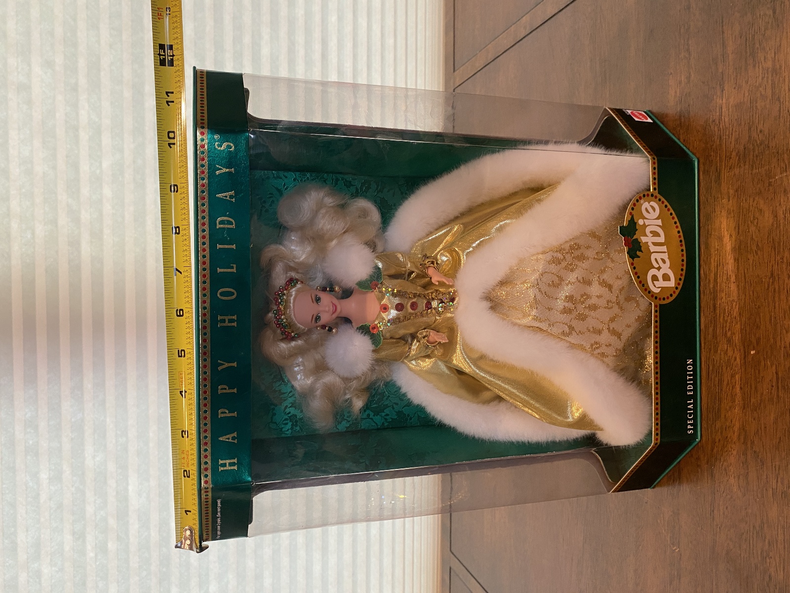 Doll is in great shape, box has some wear (Please refer back to the photos for condition and feel free to message me if you have any questions. Thank you)! Approximate measurements 12"L x 4"W x 13.75"H(SIZES OF THE BOX). 100% of the proceeds go to the registered non profit Cards of Love Inc. and with your purchase you are helping raise money to fund scholarships for at risk youth. Thank you!