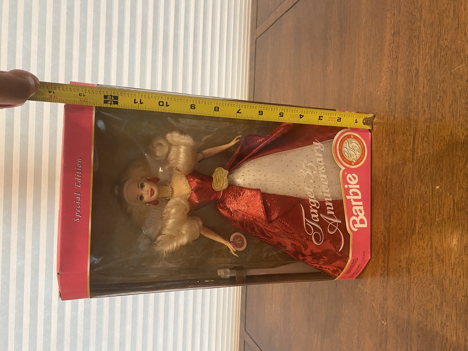 Doll is in great shape, box has some wear (Please refer back to the photos for condition and feel free to message me if you have any questions. Thank you)! Approximate measurements 8.5"L x 3"W x 13.5"H(SIZES OF THE BOX). 100% of the proceeds go to the registered non profit Cards of Love Inc. and with your purchase you are helping raise money to fund scholarships for at risk youth. Thank you!