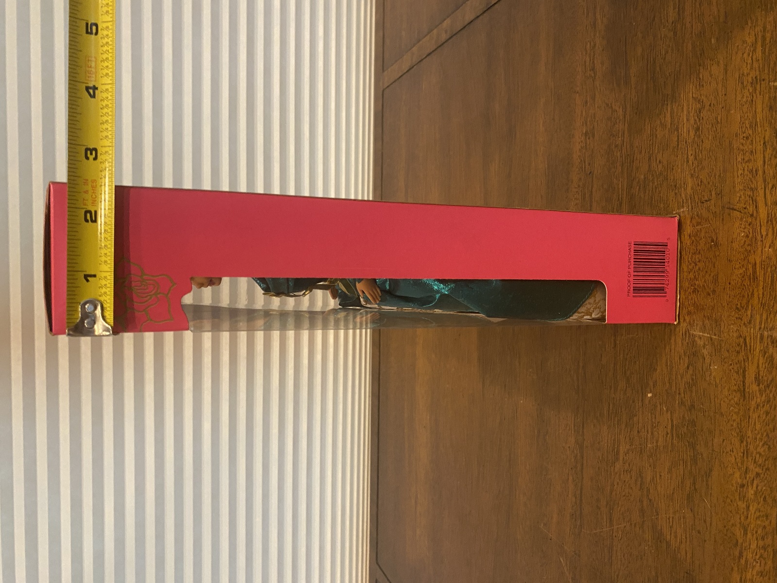 Doll is in great shape, box has some wear (Please refer back to the photos for condition and feel free to message me if you have any questions. Thank you)! Approximate measurements 7"L x 2.5"W x 13"H(SIZES OF THE BOX). 100% of the proceeds go to the registered non profit Cards of Love Inc. and with your purchase you are helping raise money to fund scholarships for at risk youth. Thank you!