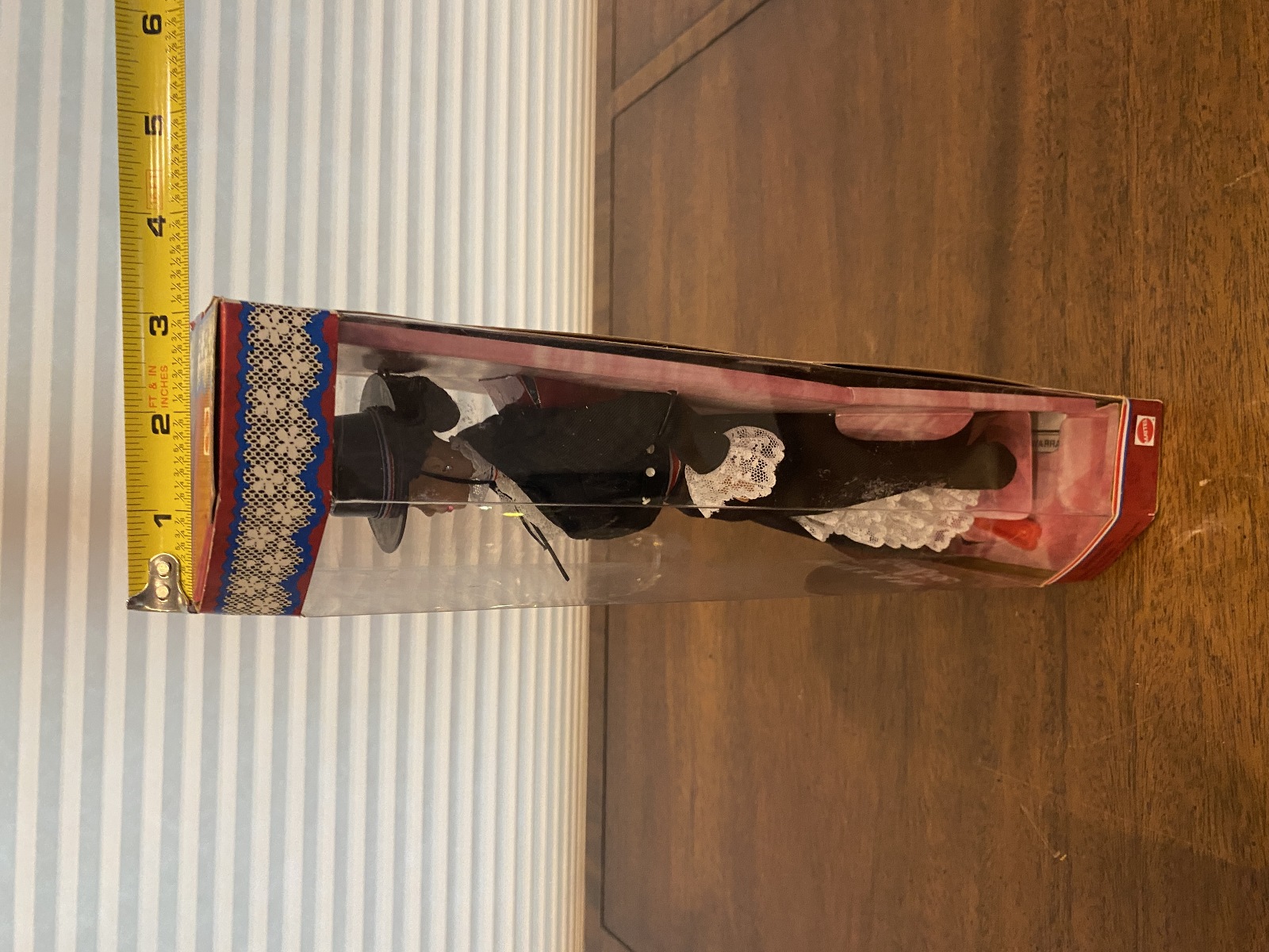 Doll is in great shape, box has some wear (Please refer back to the photos for condition and feel free to message me if you have any questions. Thank you)! Approximate measurements 6"L x 3"W x 13.5"H(SIZES OF THE BOX). 100% of the proceeds go to the registered non profit Cards of Love Inc. and with your purchase you are helping raise money to fund scholarships for at risk youth. Thank you!
