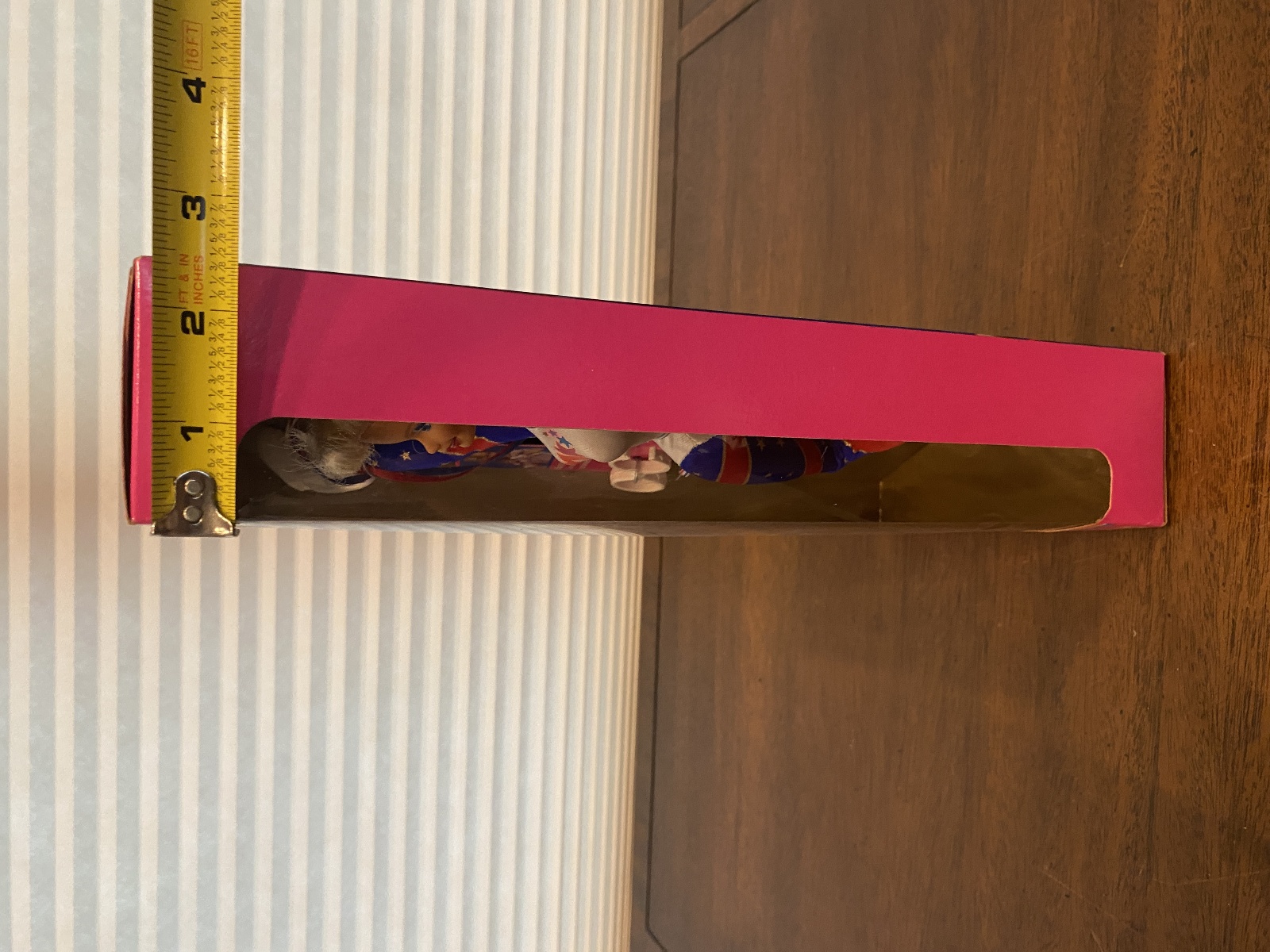Doll is in great shape, box has some wear (Please refer back to the photos for condition and feel free to message me if you have any questions. Thank you)! Approximate measurements 6.5"L x 2.5"W x 12.75"H(SIZES OF THE BOX). 100% of the proceeds go to the registered non profit Cards of Love Inc. and with your purchase you are helping raise money to fund scholarships for at risk youth. Thank you!