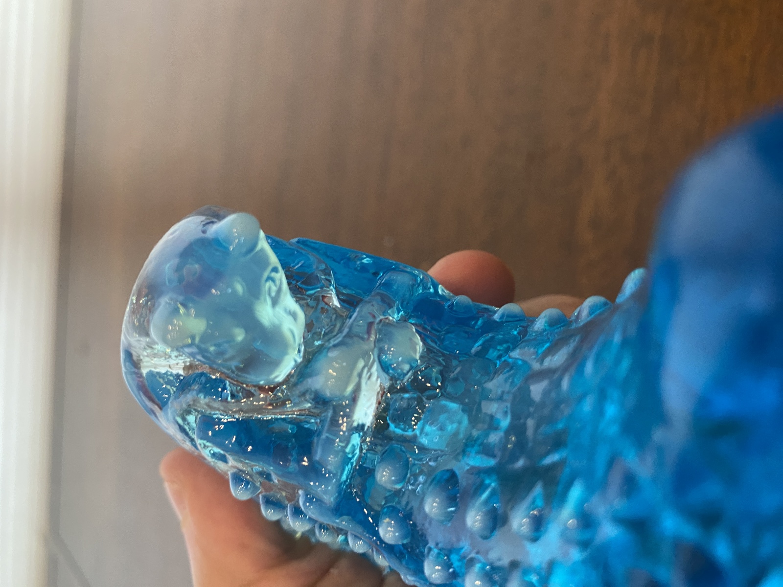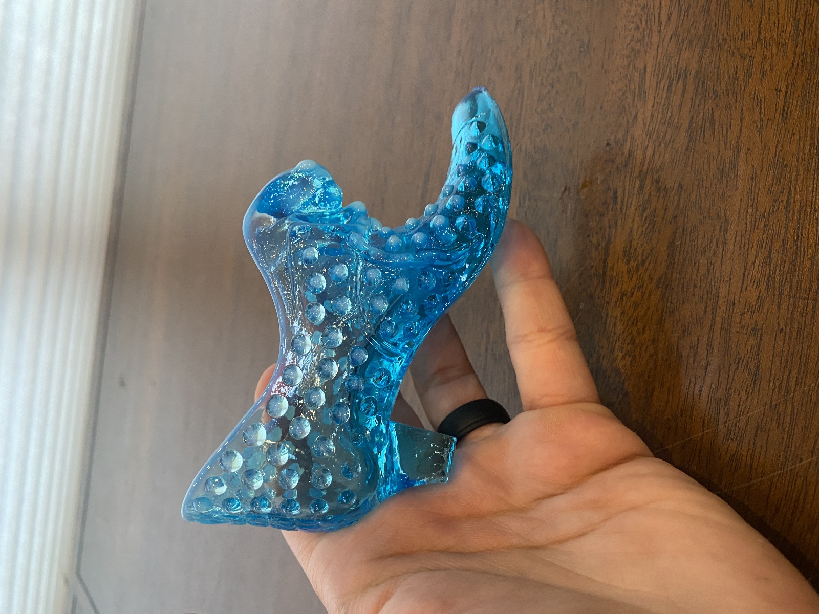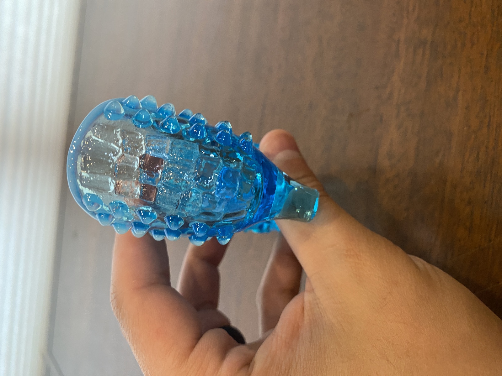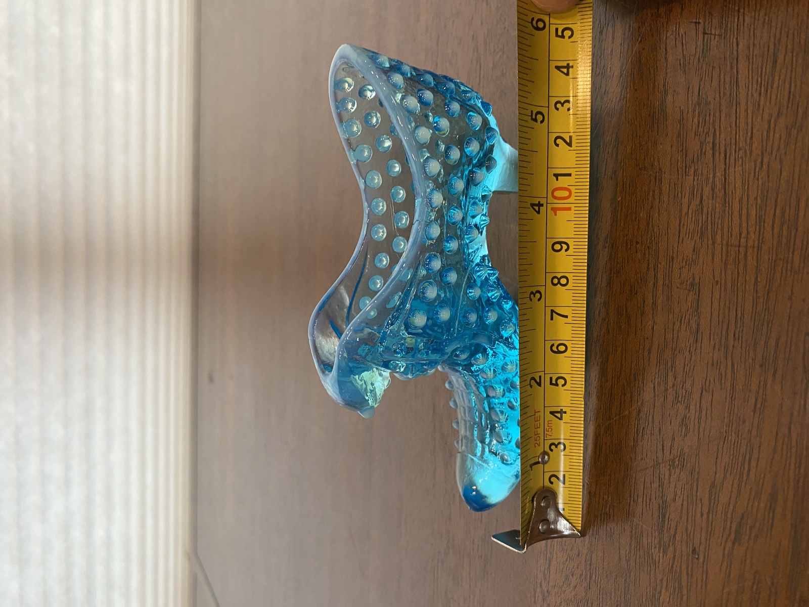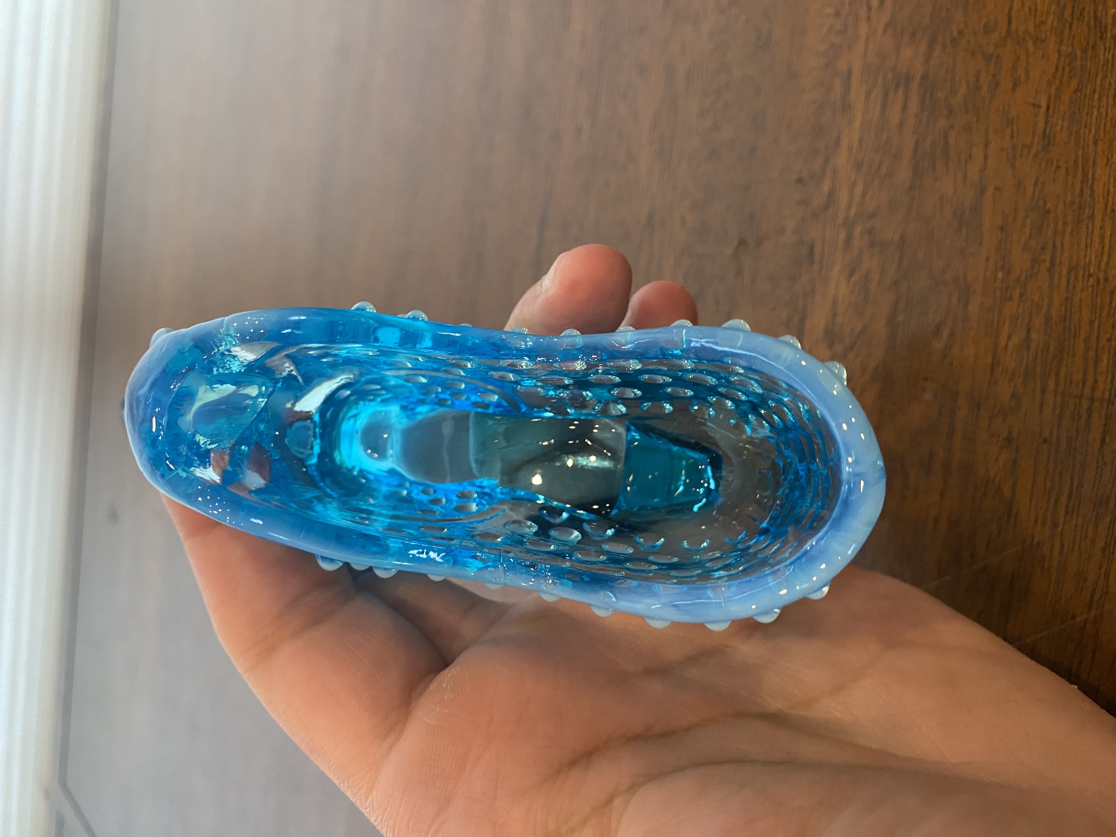 VTG FENTON Hobnail Blue Opalescent Cats Head Shoe/Slipper Figurine 5.5"L