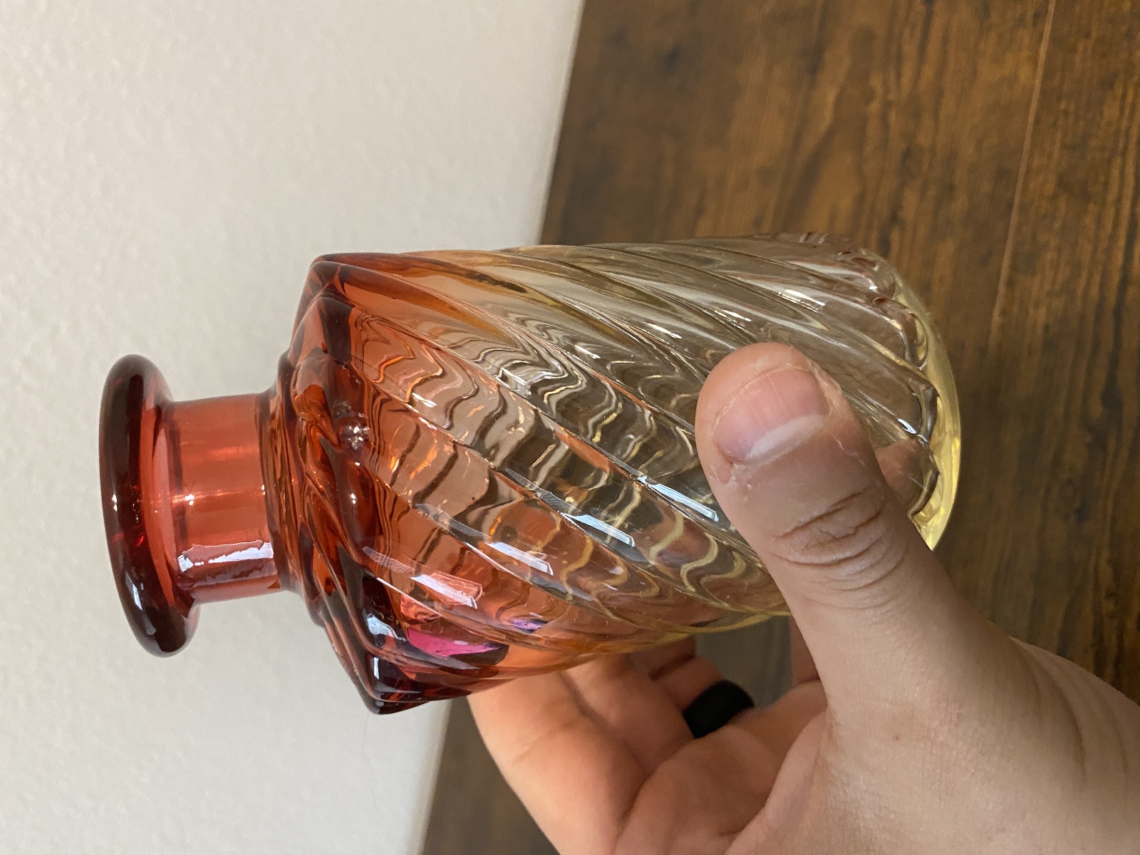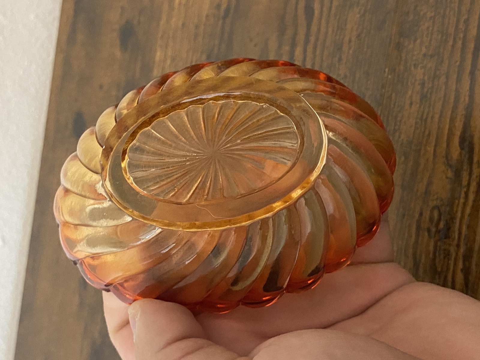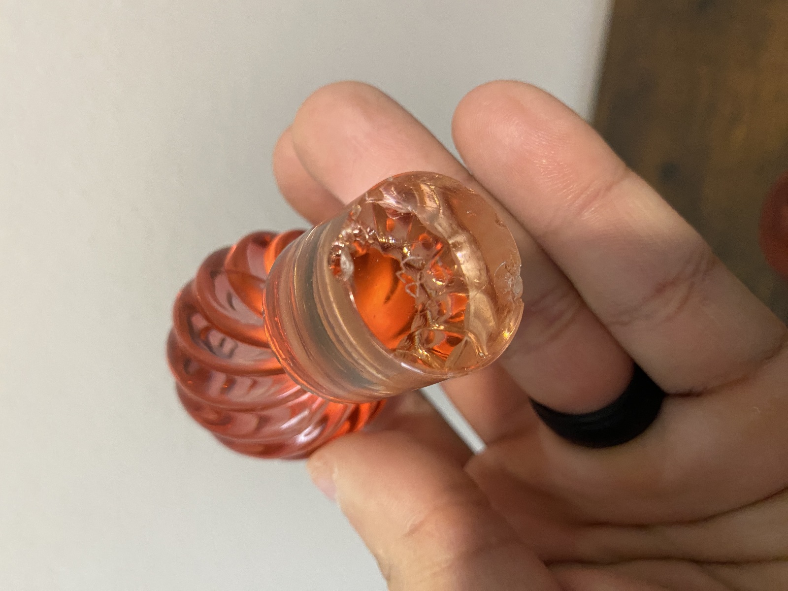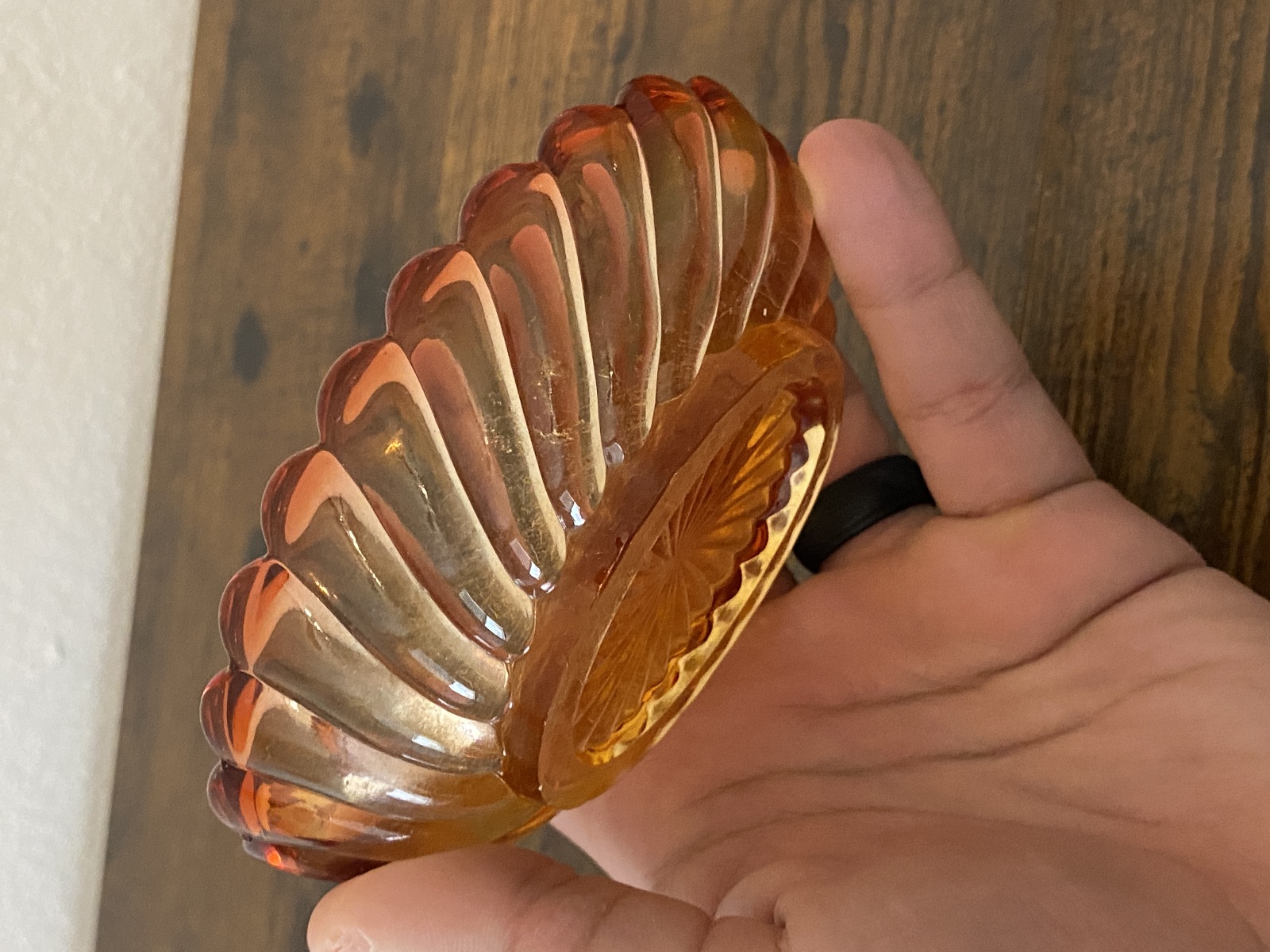 PLEASE NOTE THE BOTTLE AND STOPPER HAS SOME DAMAGE TO THEM(NOTED IN THE PHOTOS, Stopper has some chips and the side of the bottle has a chip too, the curved dish has a very tiny bite mark on the bottom, noted in the photos, and they all have some scratching from their many years of love, but overall this set is in really good shape for its age. (Please refer back to the photos for condition and feel free to message me if you have any questions. Thank you)!