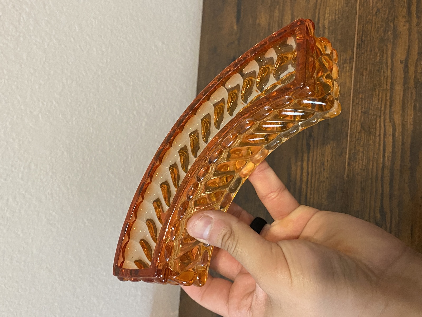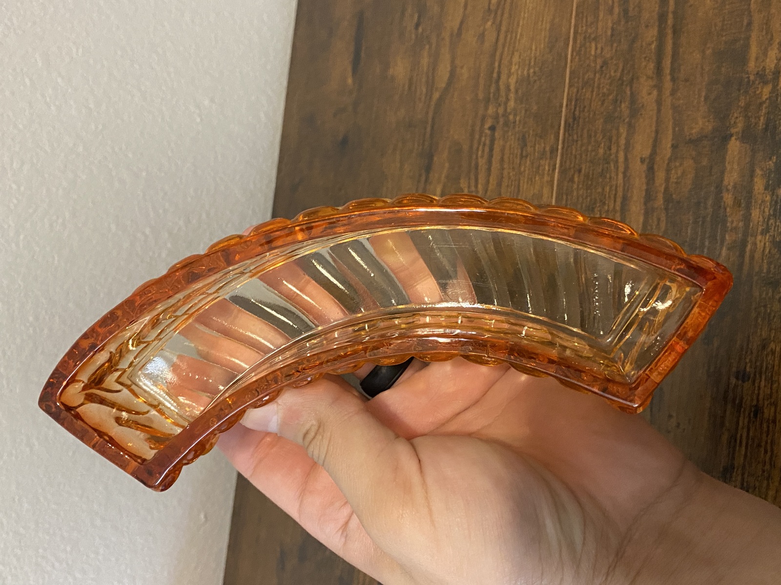 Approximate measurements Bottle-3"W x 7.5"H(W/Stopper) 5.5"H(W/Out Stopper), 9.75"L x 3 3/8"W x 1.5"H(Long Oval Dish), 8"L x 2"W x 2"H(Curved Dish), 4.75"L x 3.5"W x 1.25"H(Small Dish) 100% of the proceeds go to the registered non profit Cards of Love Inc. and with your purchase you are helping raise money to fund scholarships for at risk youth. Thank you!