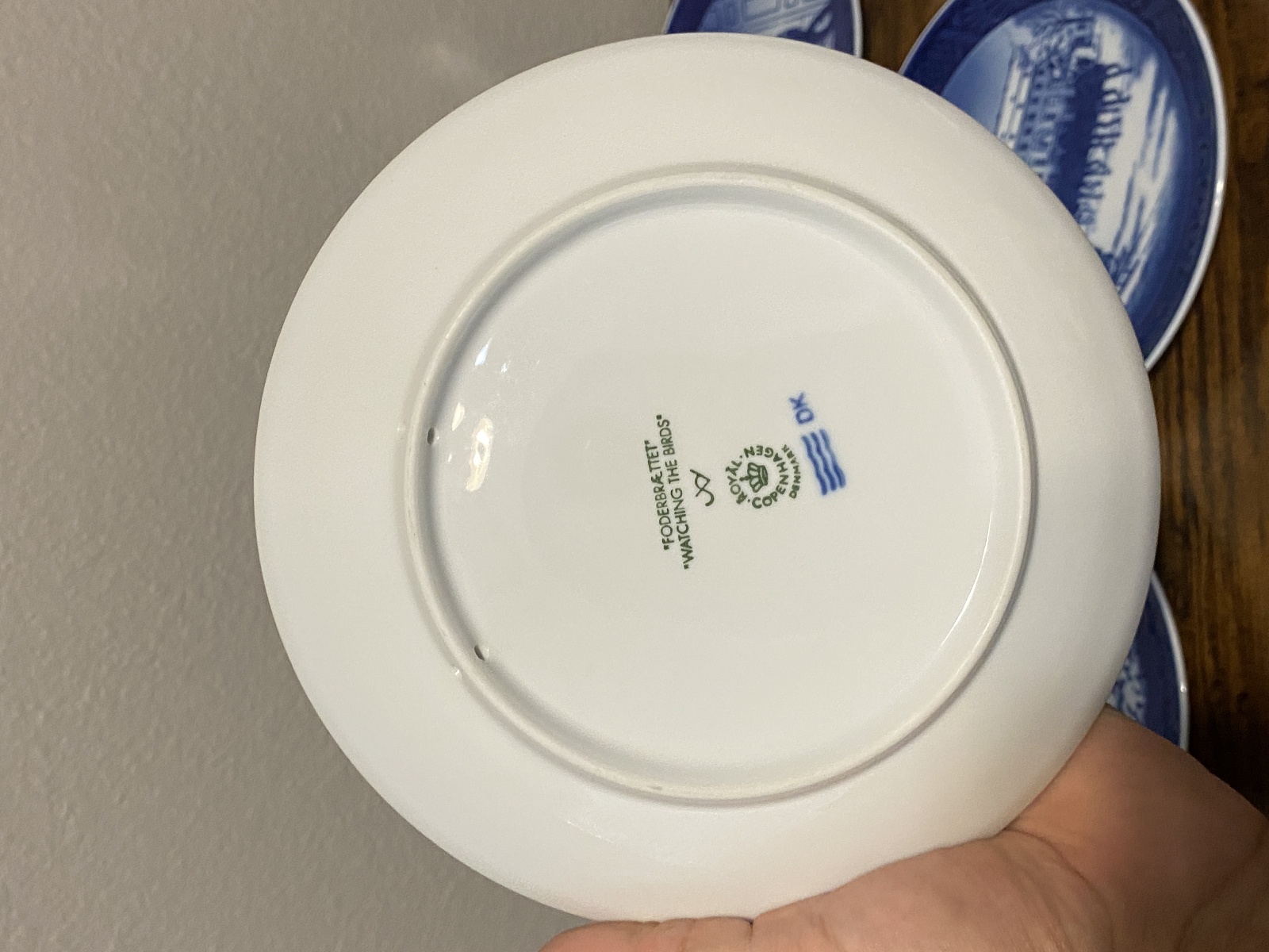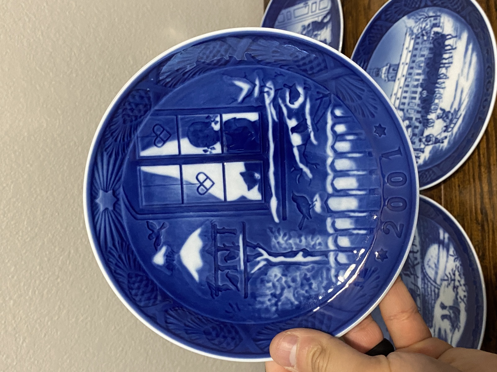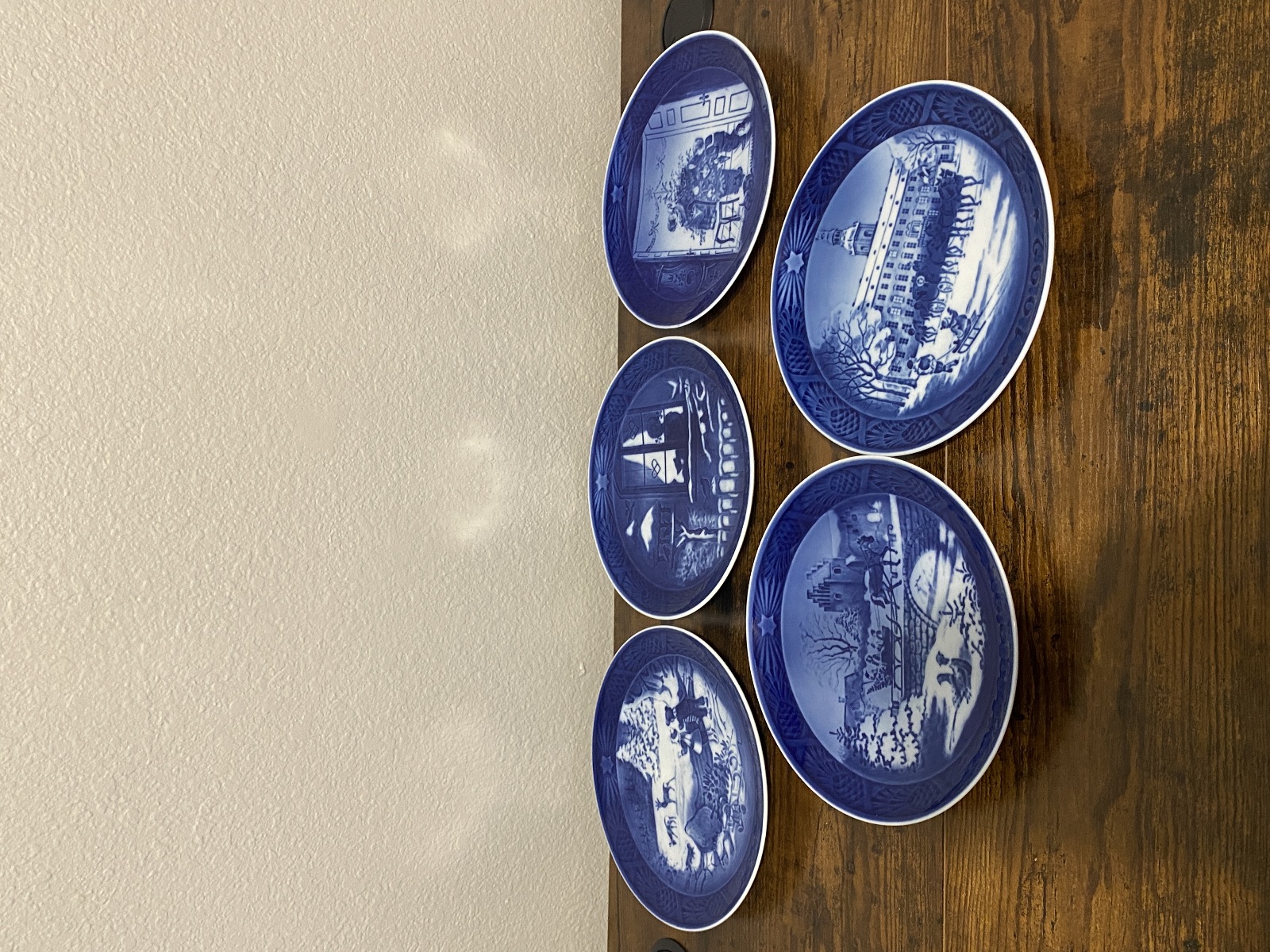 5 VTG Royal Copenhagen Blue & White Christmas Collector Plates 7.25"W DENMARK