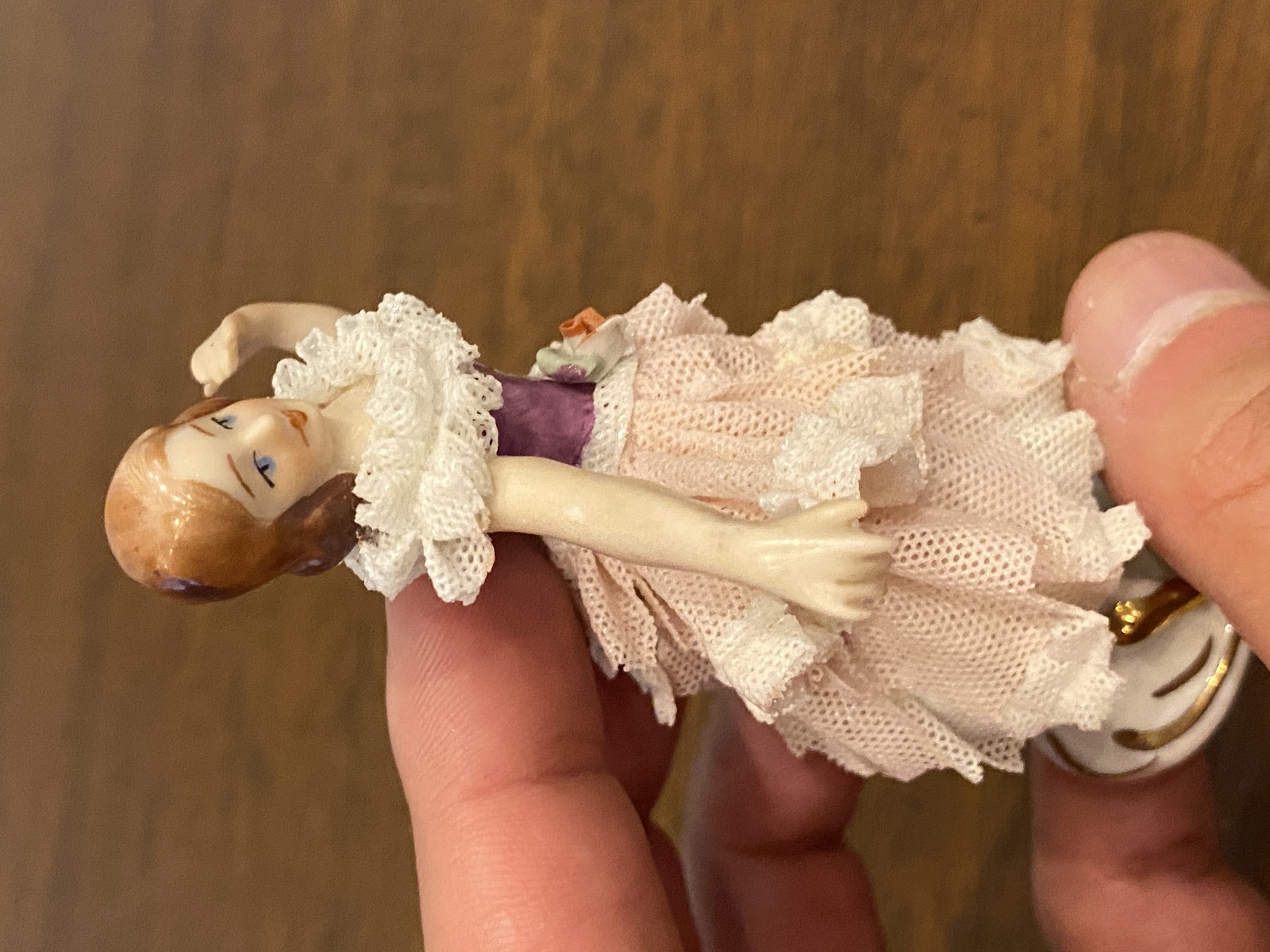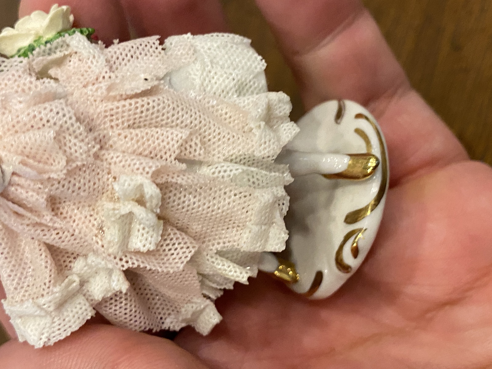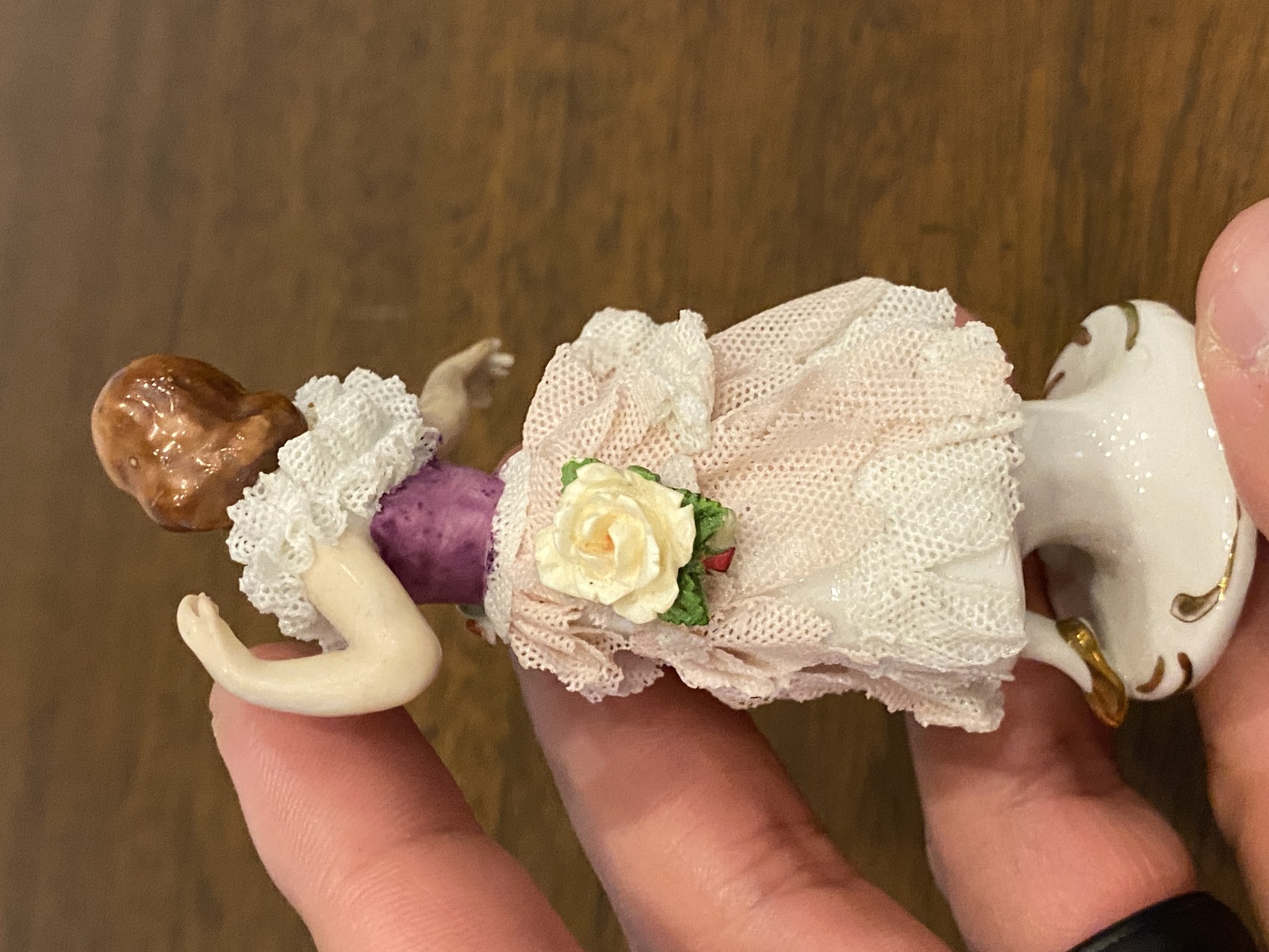 FAIR/GOOD Used condition. (PLEASE NOTE THERE IS SOME DAMAGE TO THE DRESS(VERY COMMON IN THESE PIECES) AND SOME LIGHT SCRATCHING FROM AGE, BUT OVERALL IN GOOD SHAPE FOR ITS AGE). (Please refer back to the photos for condition and feel free to message me if you have any questions. Thank you)! Approximate measurements 2.5"L x 1.5"W x 3.75"H. 100% of the proceeds go to the registered non profit Cards of Love Inc. and with your purchase you are helping raise money to fund scholarships for at risk youth. Thank you!