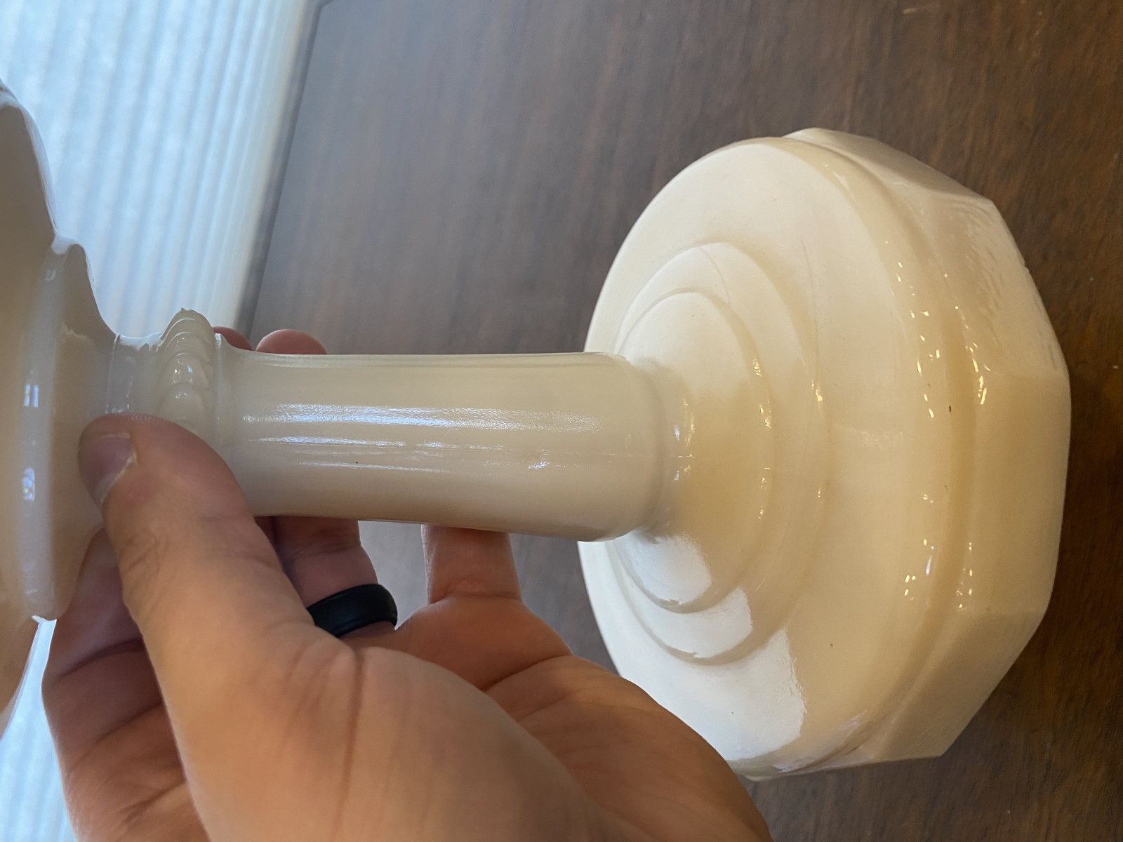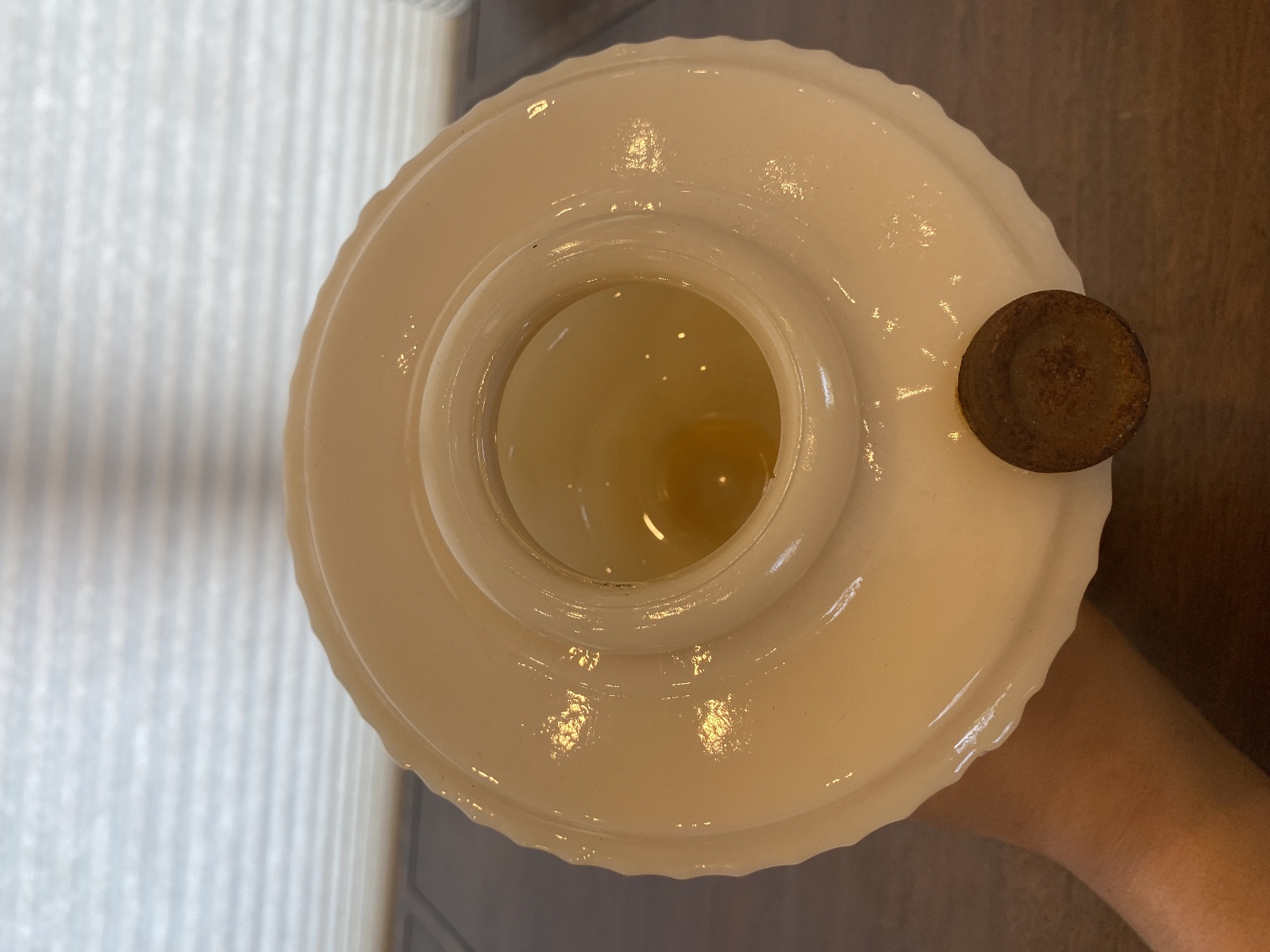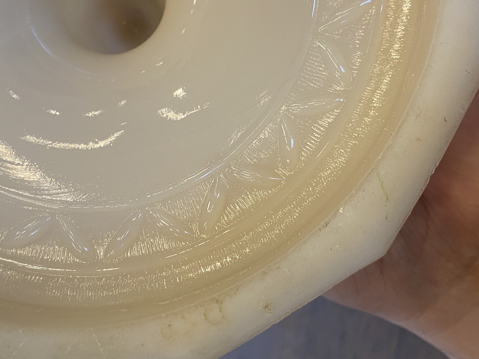 Good used condition (PLEAASE NOTE THAT THERE ARE SOME SMALL CHIP MARKS ON THE BASE, NOTED IN THE PHOTOS AND SOME Light scratching from its years of love(age), but overall in really great shape for its age). (Please refer back to the photos for condition and feel free to message me if you have any questions. Thank you)!
