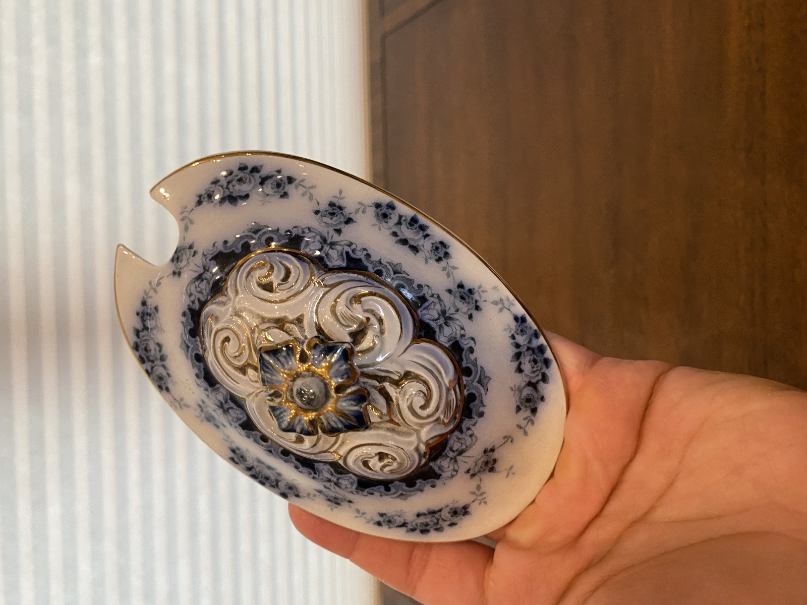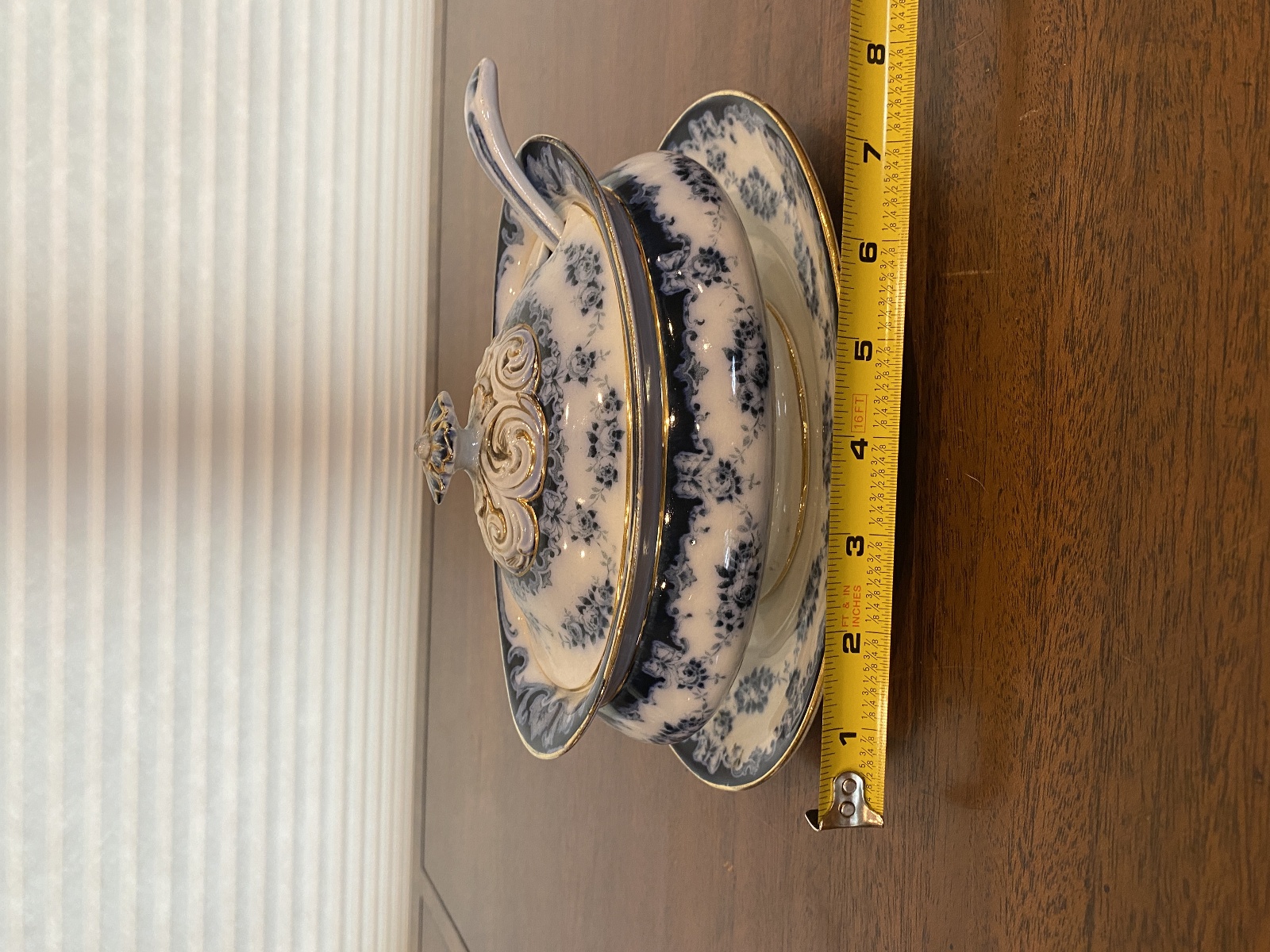 Approximate measurements 9"L x 6.25"W x 1"H(Plate), 6.5"L(Spoon), 7.5"L x 4.75"W x 4.5"H(Tureen) 100% of the proceeds go to the registered non profit Cards of Love Inc. and with your purchase you are helping raise money to fund scholarships for at risk youth. Thank you!