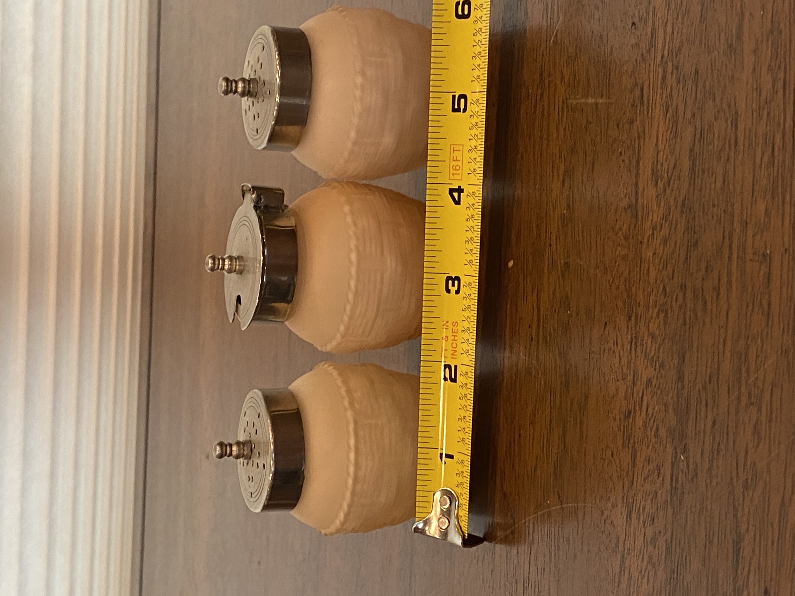 Approximate measurements 6"W x 7.5"H(Condiment Holder), 1.75"W x 3"H(1 Condiment Jar), 1.75"W x 2.75"H(2 Condiment Jars). 100% of the proceeds go to the registered non profit Cards of Love Inc. and with your purchase you are helping raise money to fund scholarships for at risk youth. Thank you!