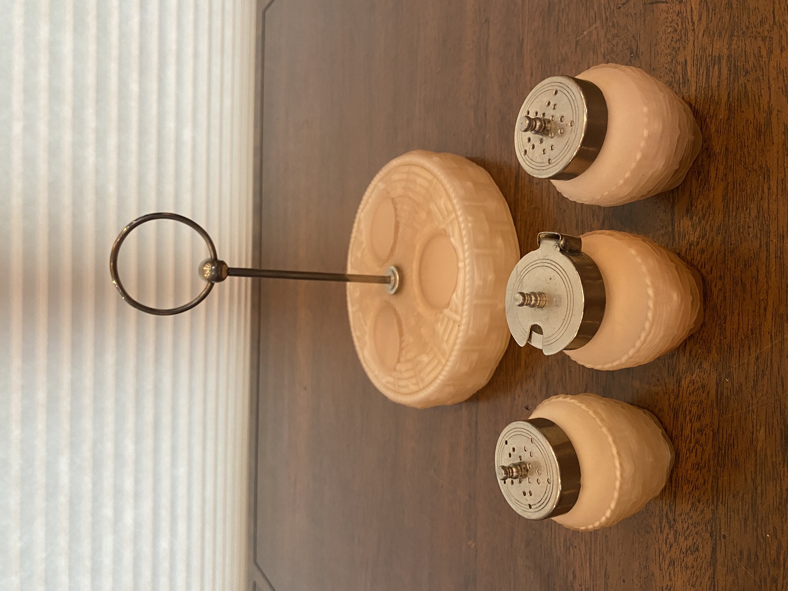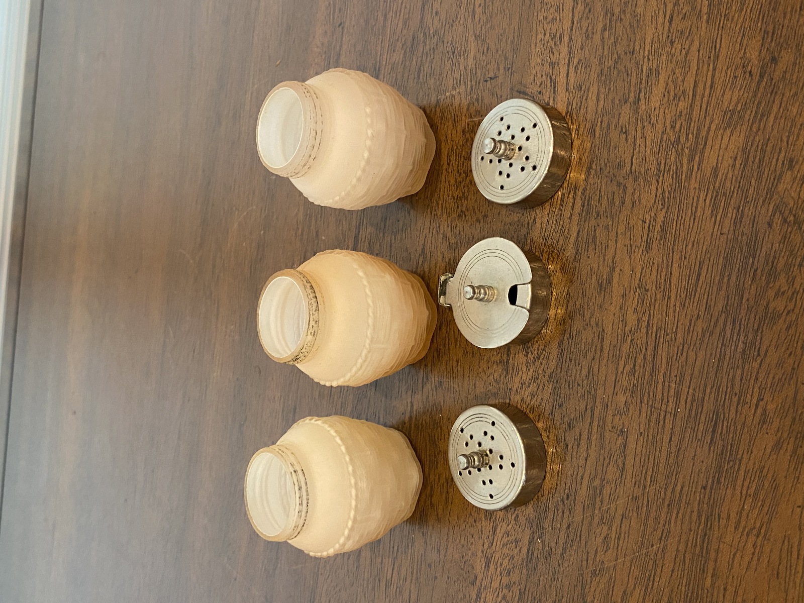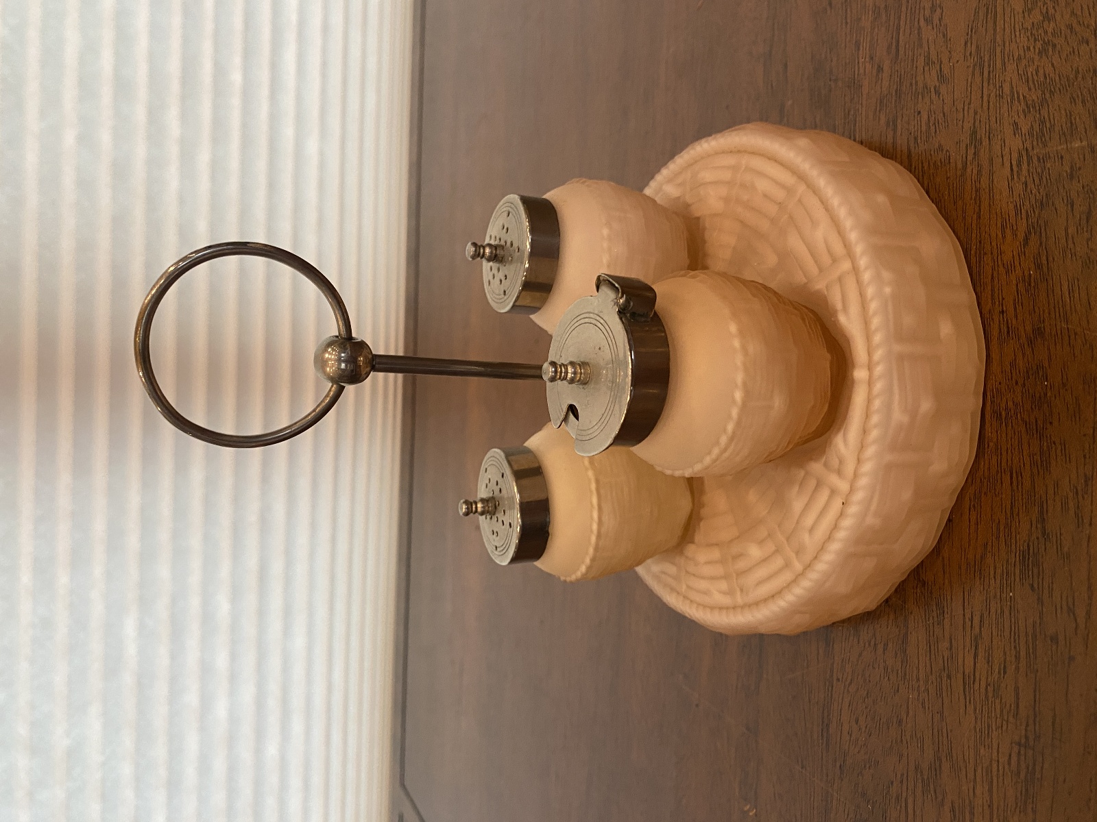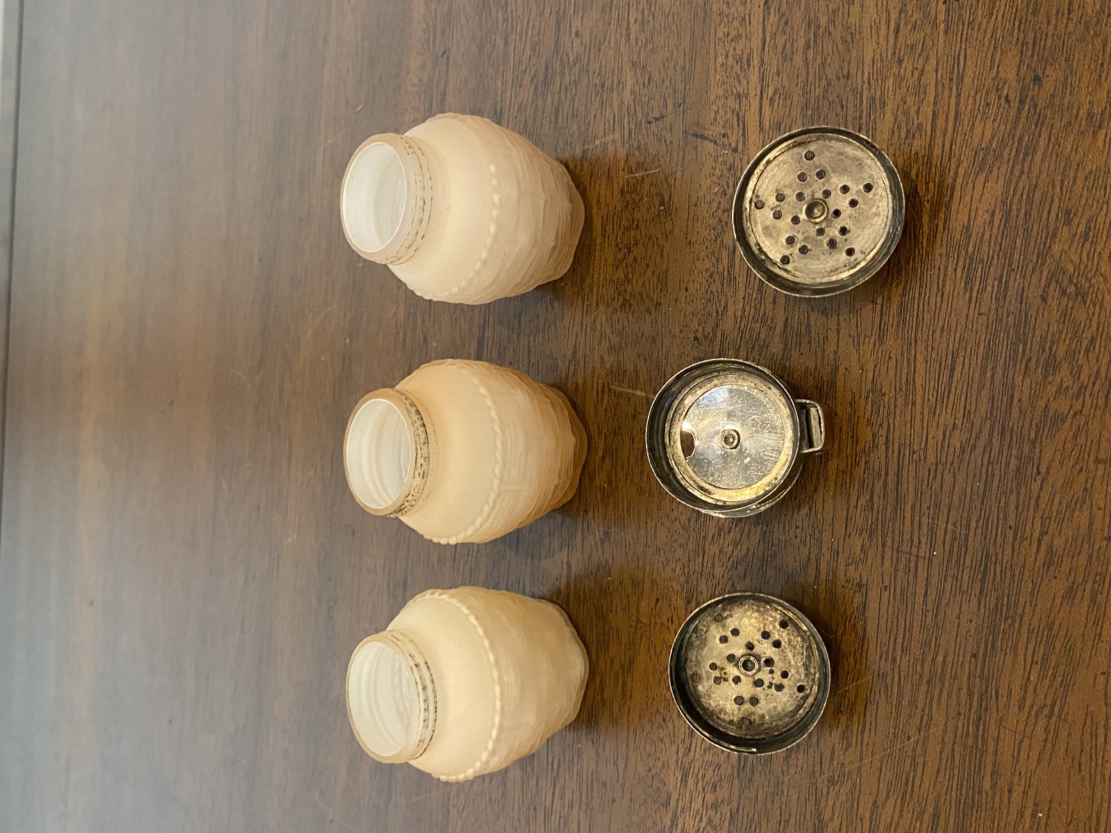 ALL pieces are in great/good used condition (Light scratching on all the items from their many years of love(age), the holder has a few small bite/chip marked on the bottom, noted in the photos, but overall in great shape for its age, there is some wear to the metal from age, but still in really good shape. (Please refer back to the photos for condition and feel free to message me if you have any questions. Thank you)!