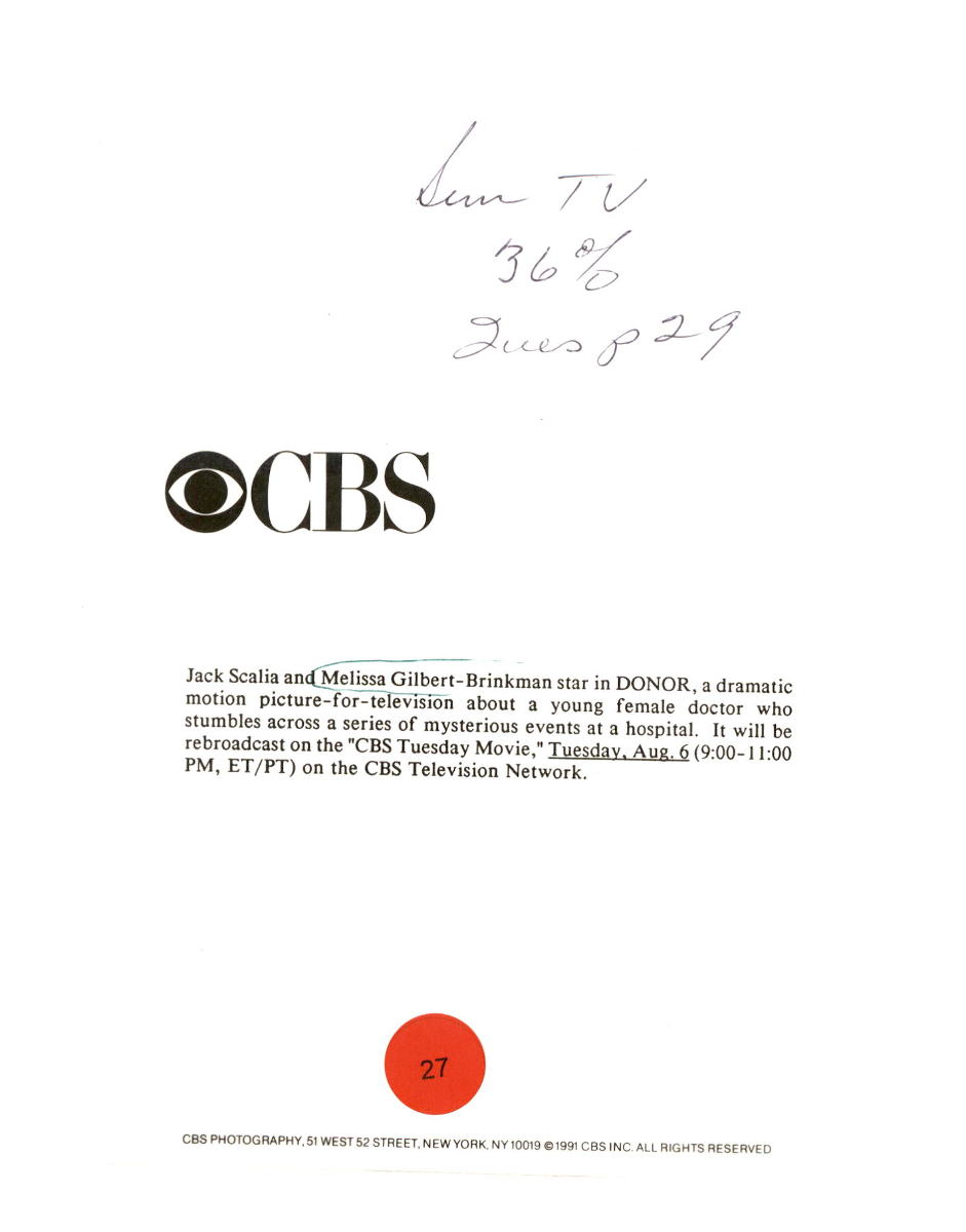 Melissa Gilbert 7x9 B&W PHOTO CBS Donor 1991