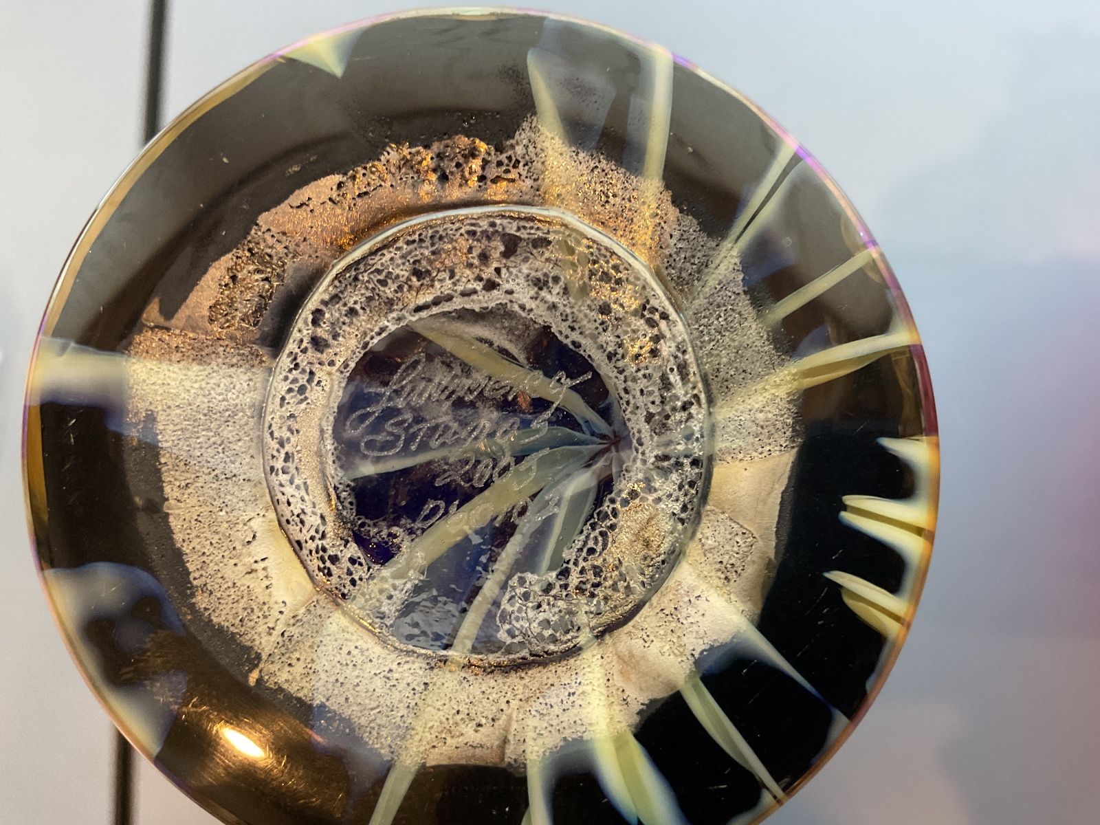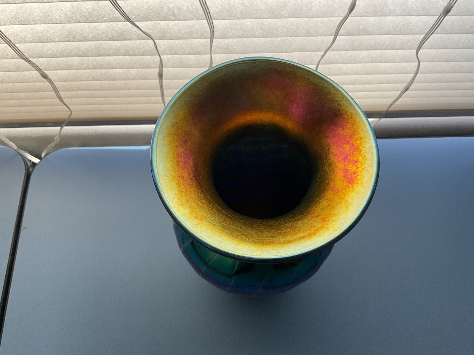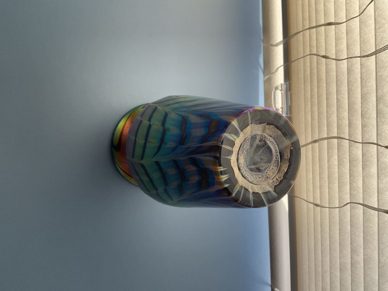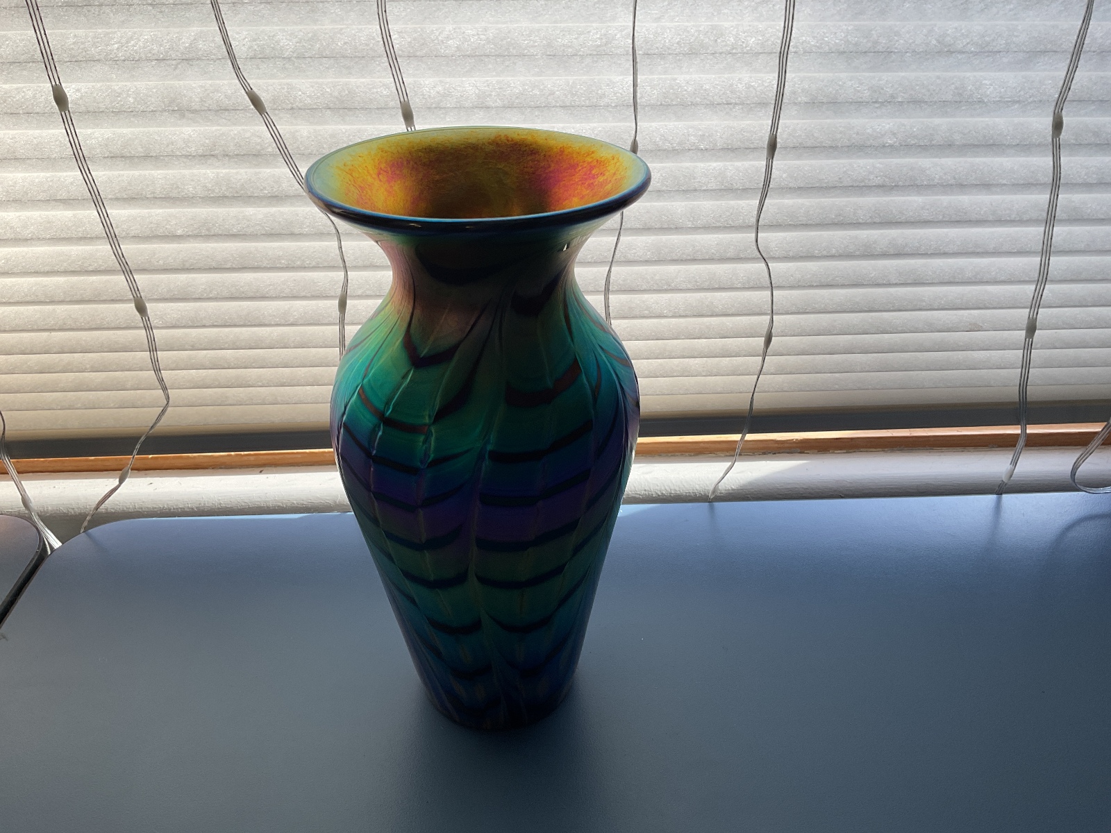 BEAUTIFUL Iridescent Pulled Feather Design Art Glass Vase