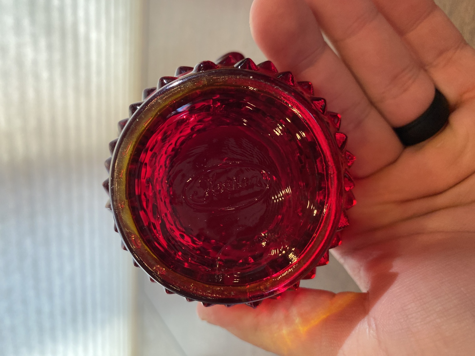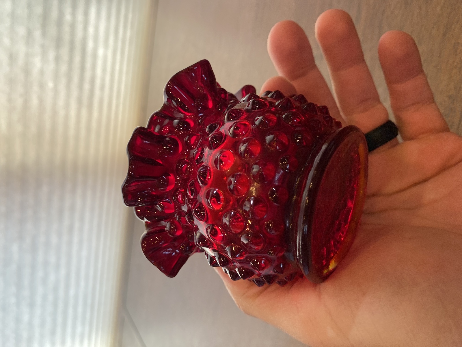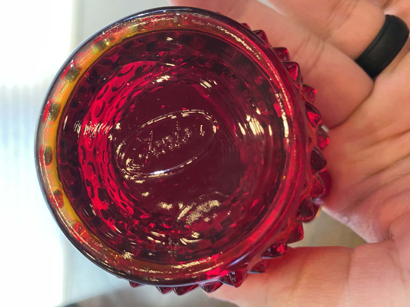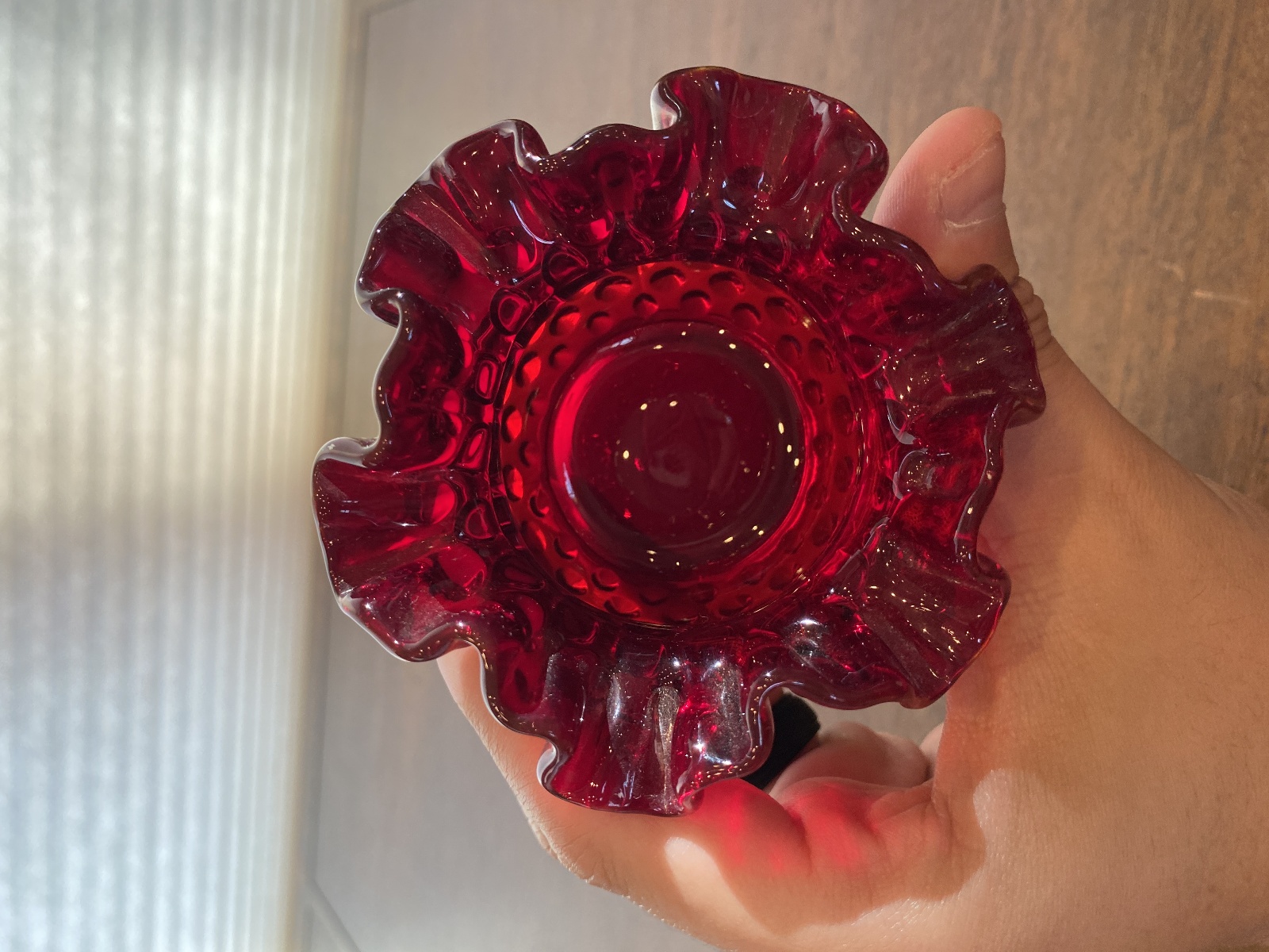 VTG FENTON Small Amberina Hobnail Art Glass Ruffled Rim Vase 3"H
