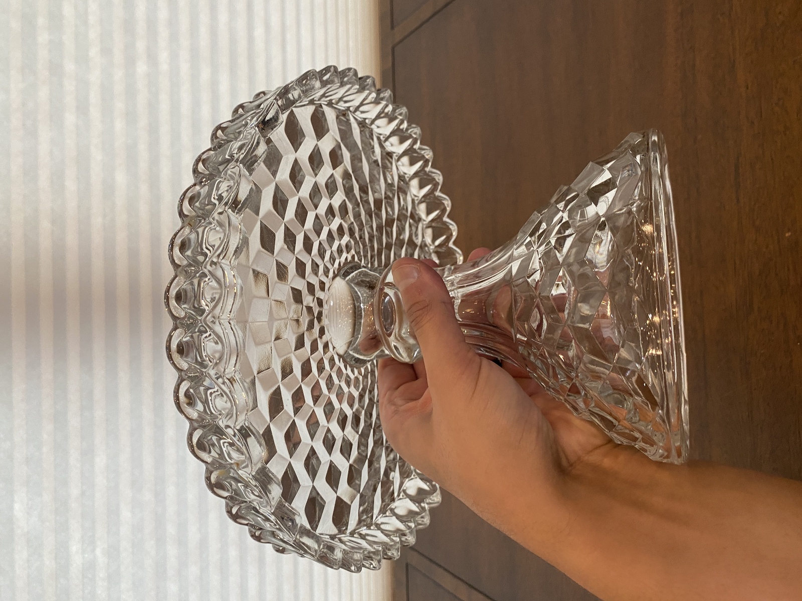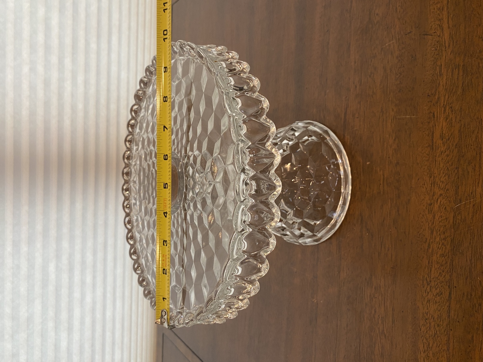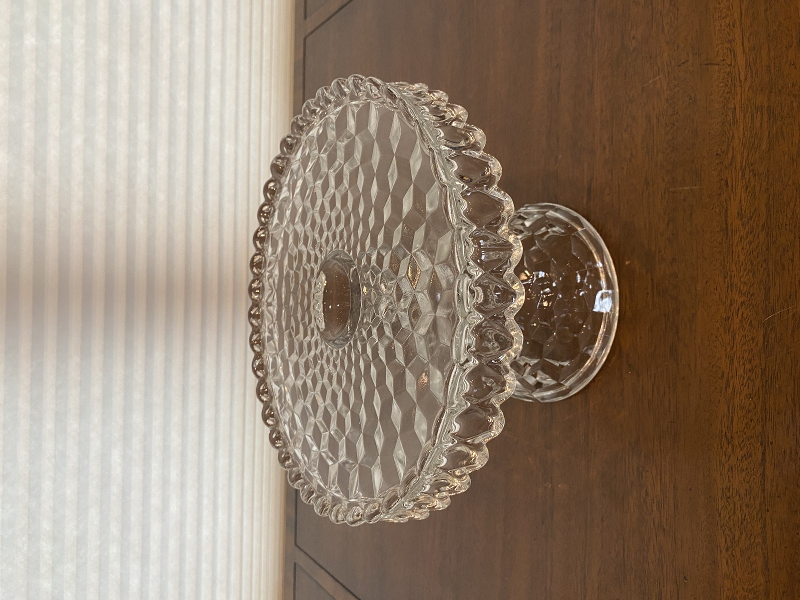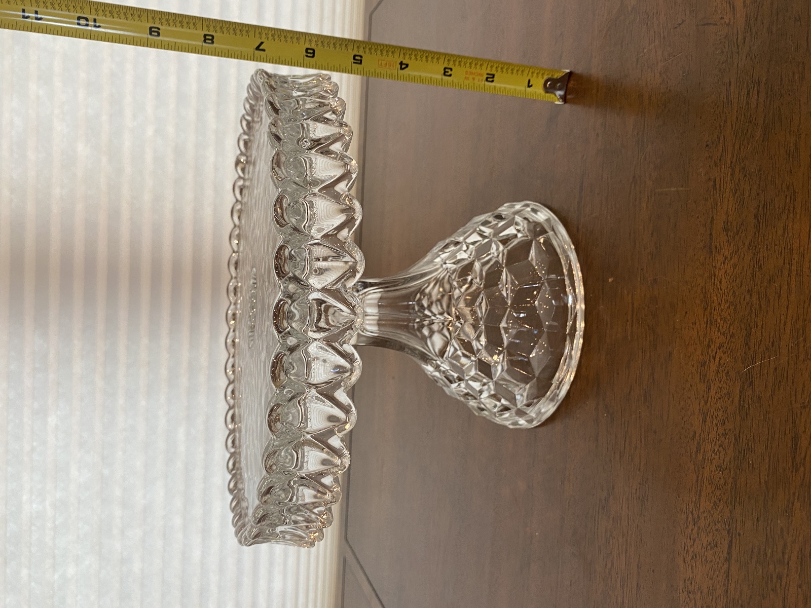 VTG AMERICAN FOSTORIA Cubist Circle Glass Cake Plate W/Rum Well 10"W