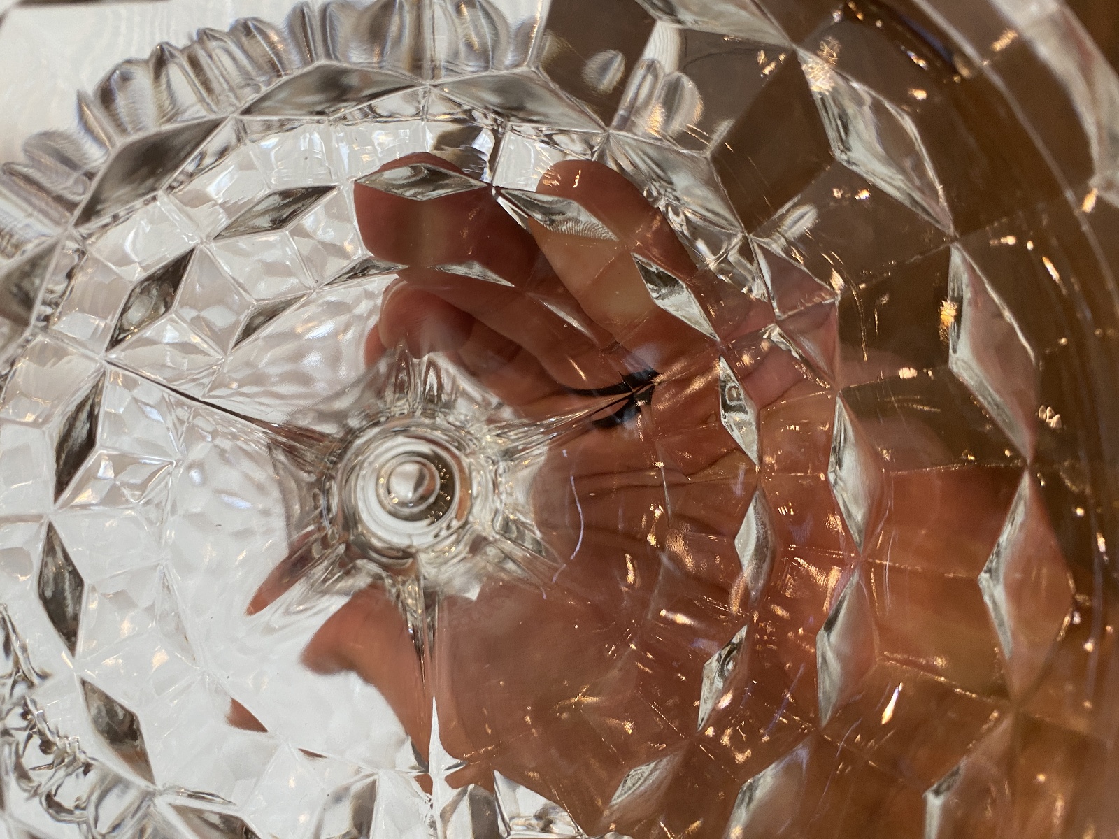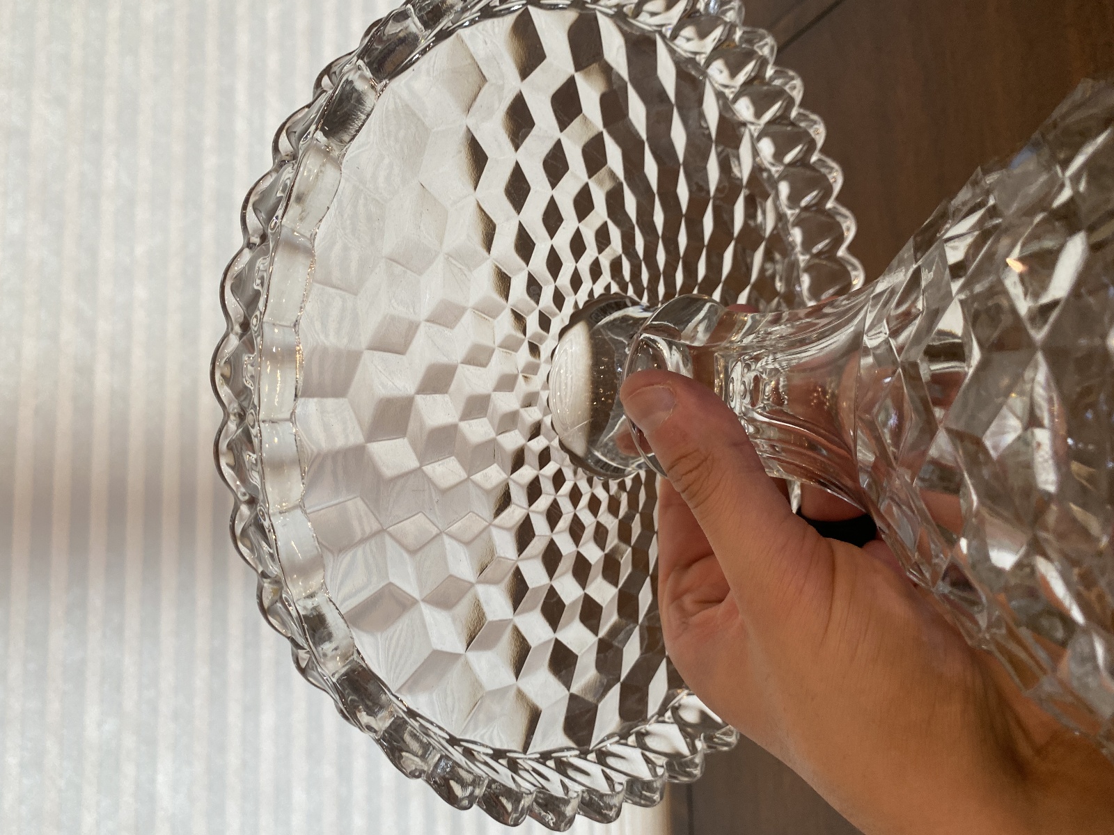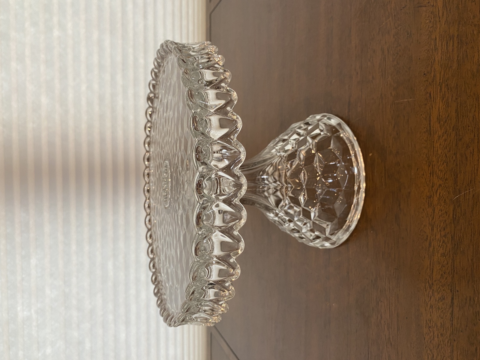 VTG AMERICAN FOSTORIA Cubist Circle Glass Cake Plate W/Rum Well 10"W