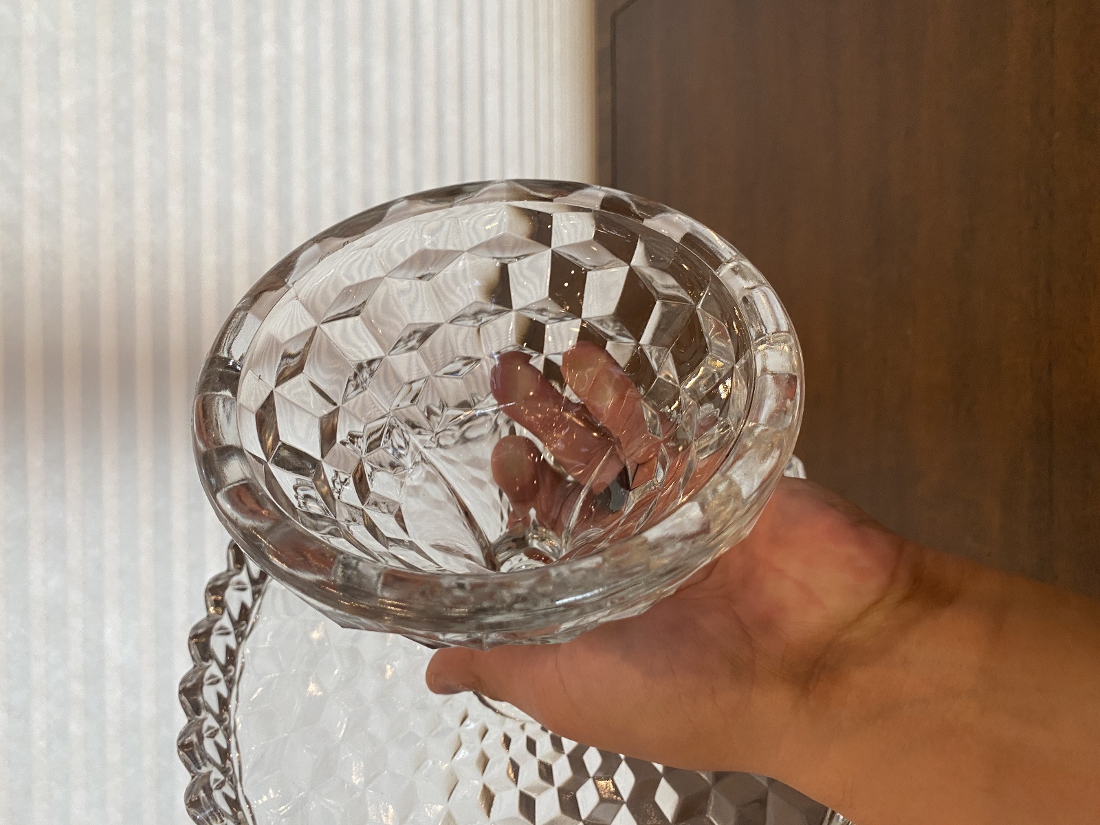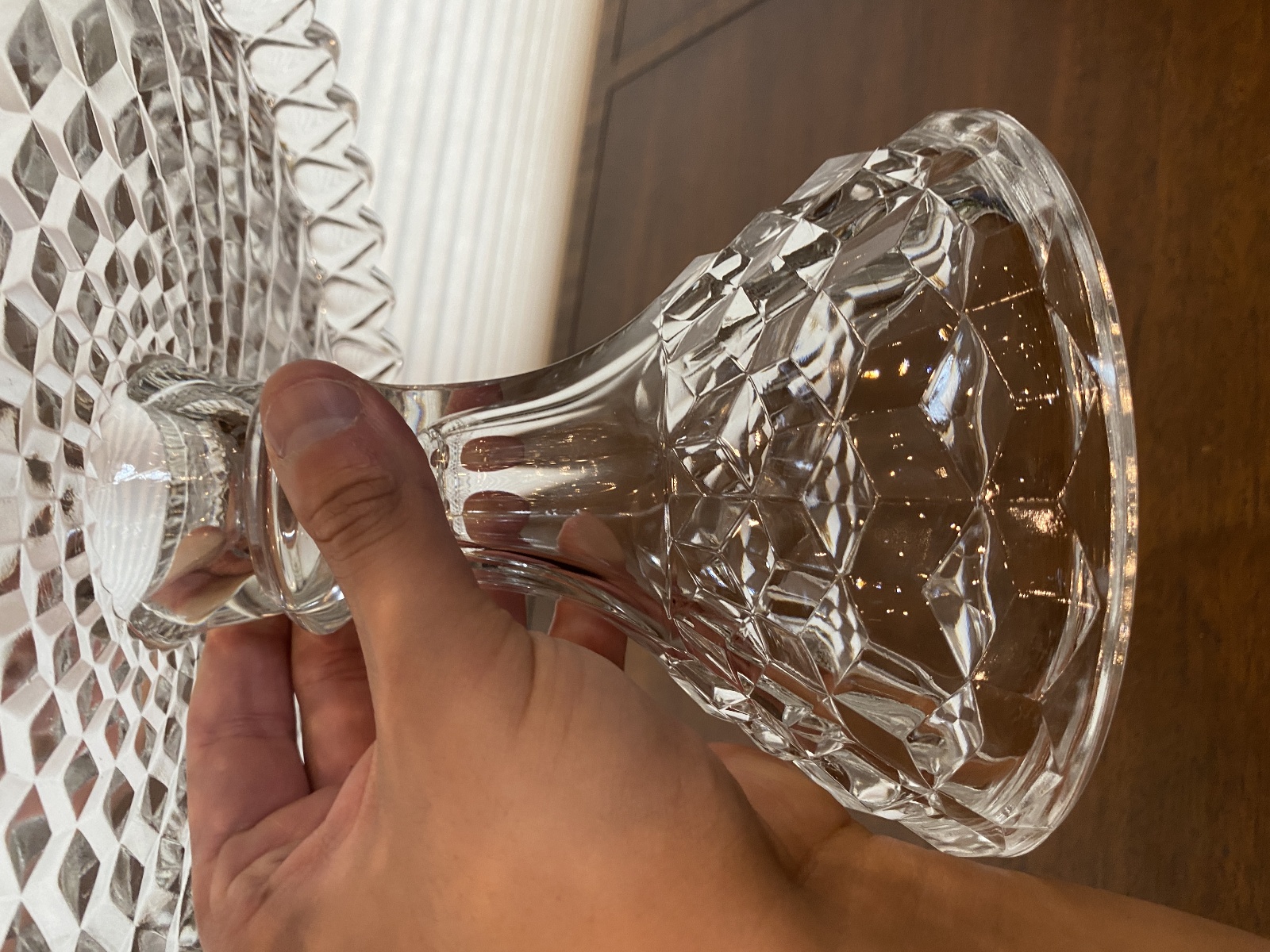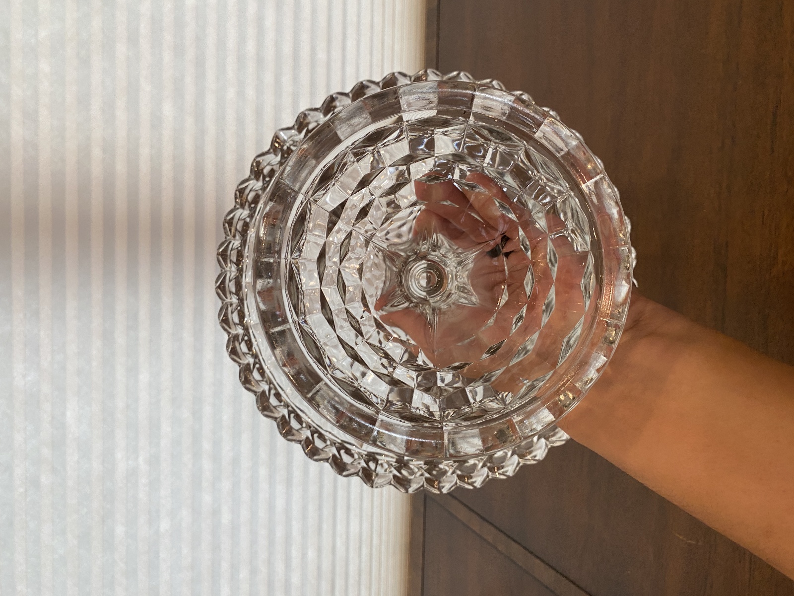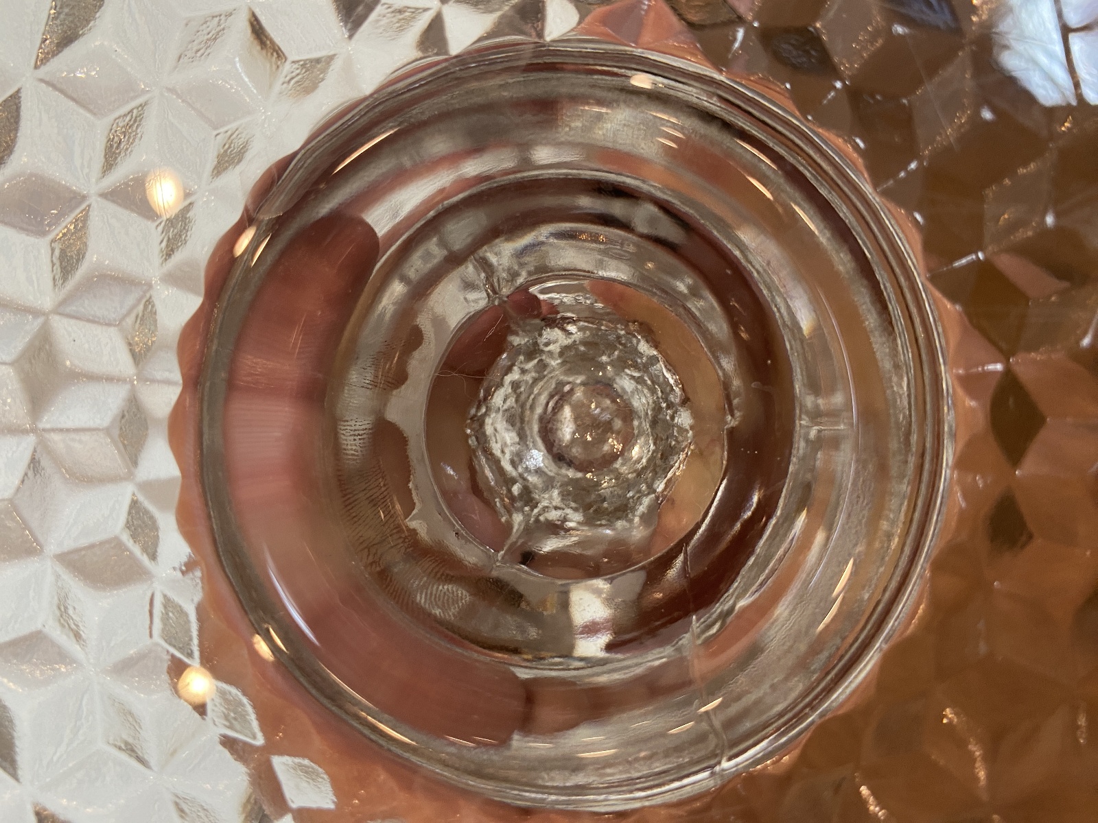 VTG AMERICAN FOSTORIA Cubist Circle Glass Cake Plate W/Rum Well 10"W
