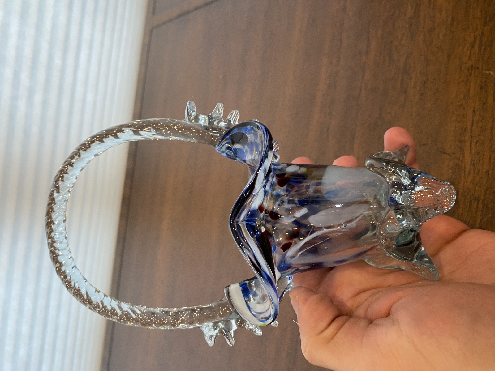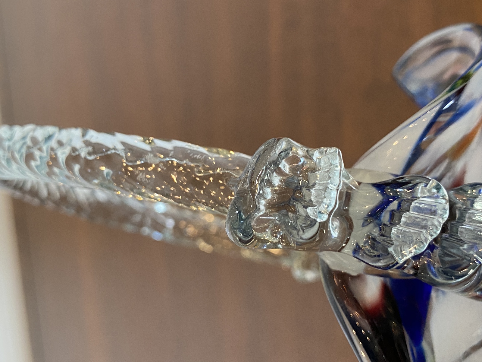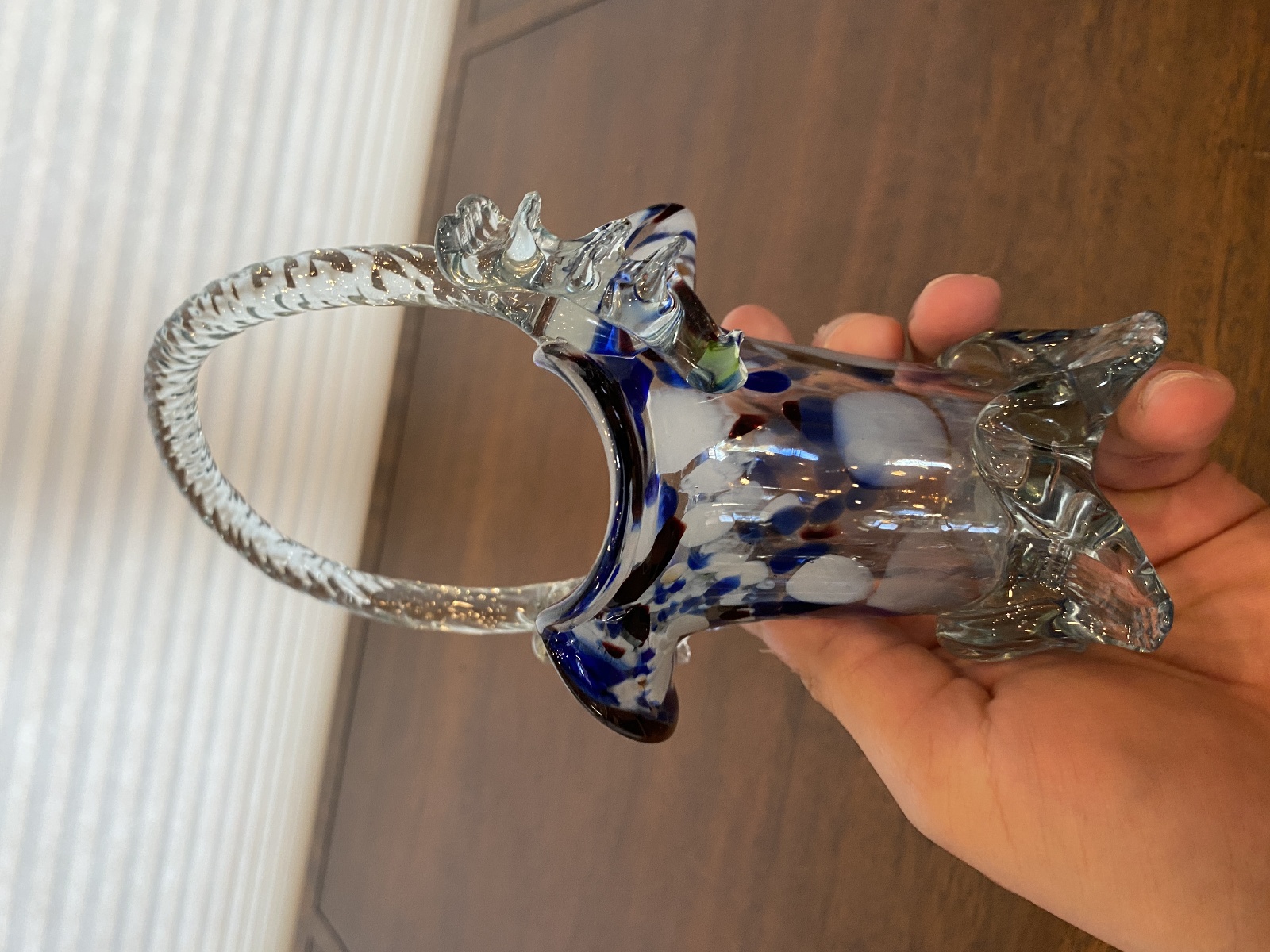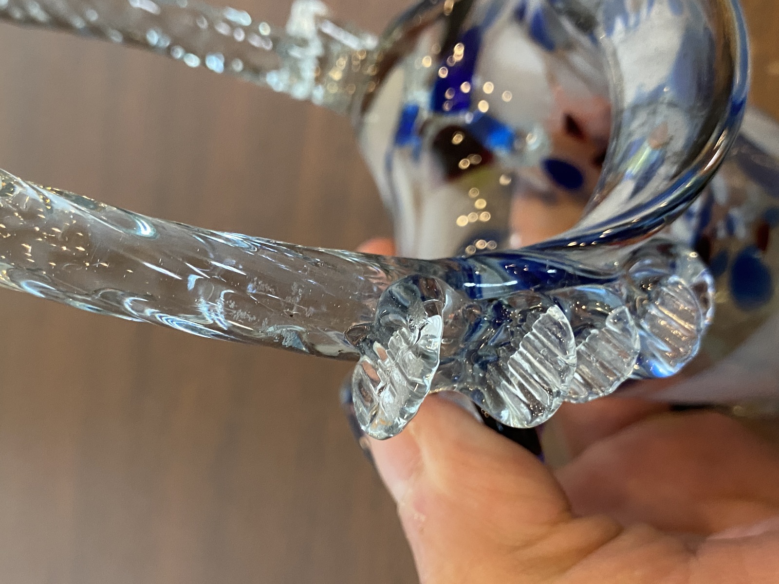 Great used condition (There are a few little rough marks on the sides of the basket where the applied glass is at, but it appears to be from its creation process, and there is some light scratching from its many years of love(age), but overall in great shape for its age). (Please refer back to the photos for condition and feel free to message us if you have any questions, thank you)!