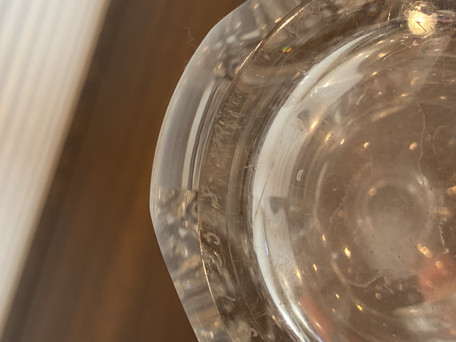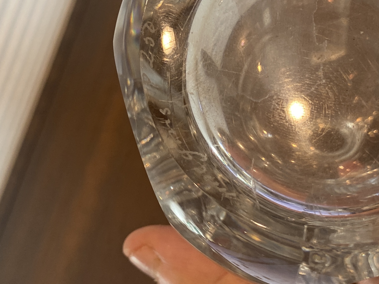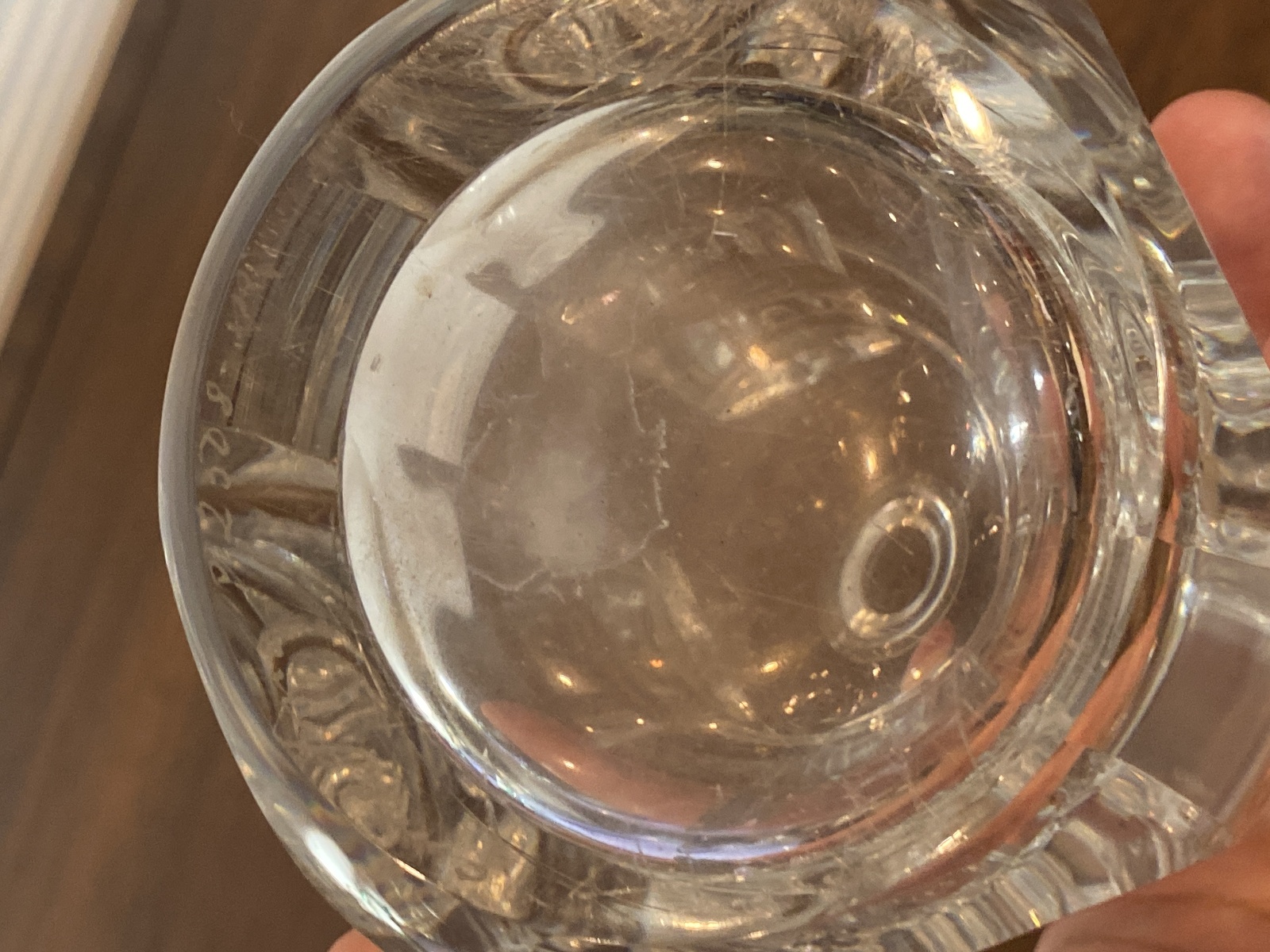 Good/fair used condition (This piece has some scuff, scratch, small chips and some cloudiness on the inside of the bottle, noted in the photos, also has some scratching from its many years of love(age) but still in fair shape for its age). (Please refer back to the photos for condition and feel free to message me if you have any questions. Thank you)!