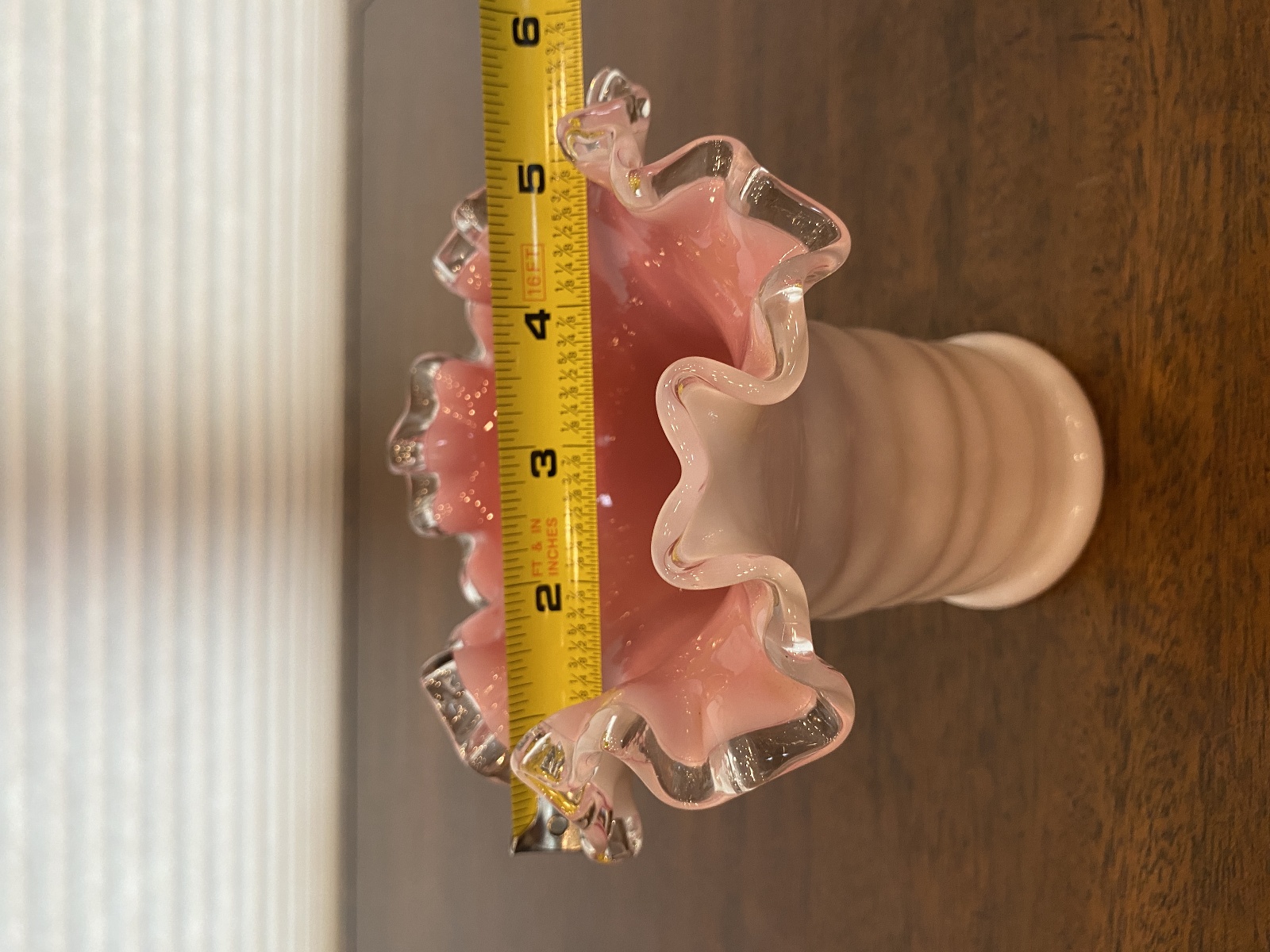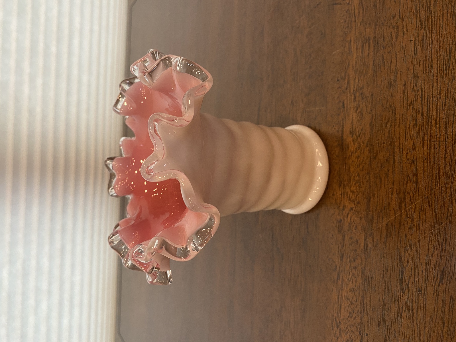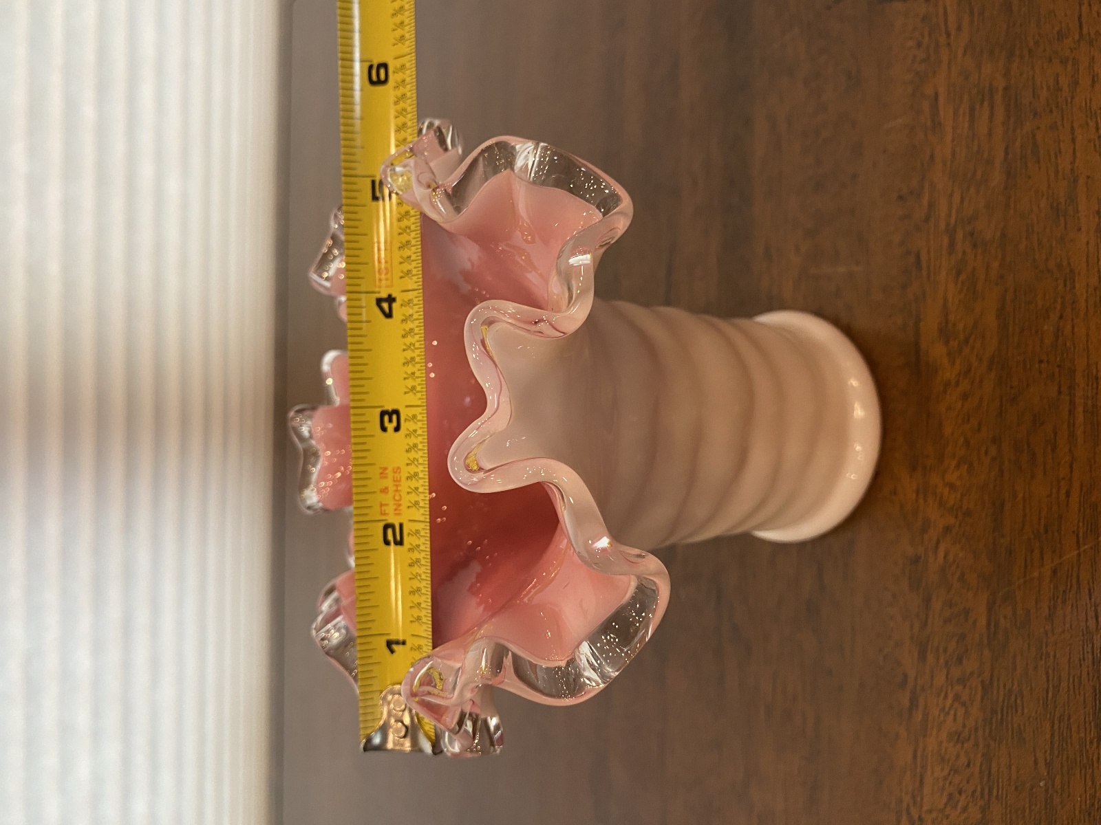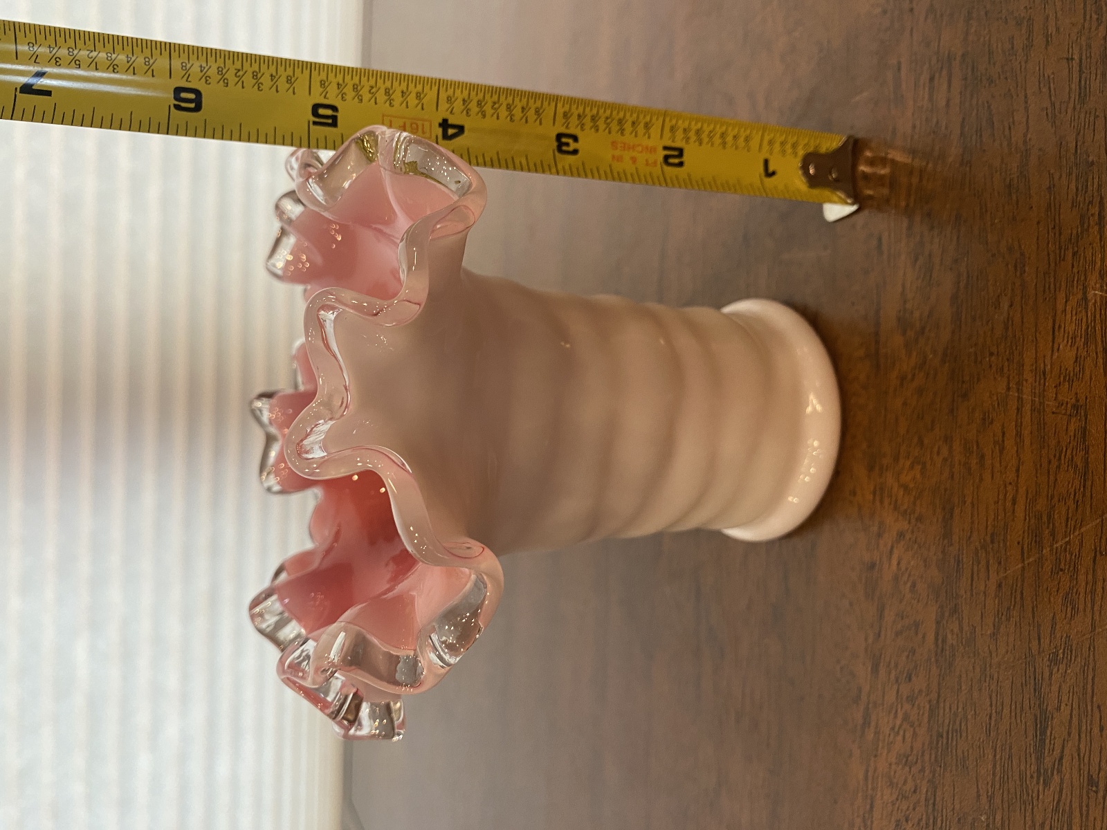 VTG FENTON PEACH BLOW Ruffled Rim Hat Art Glass Vase 5.25"H