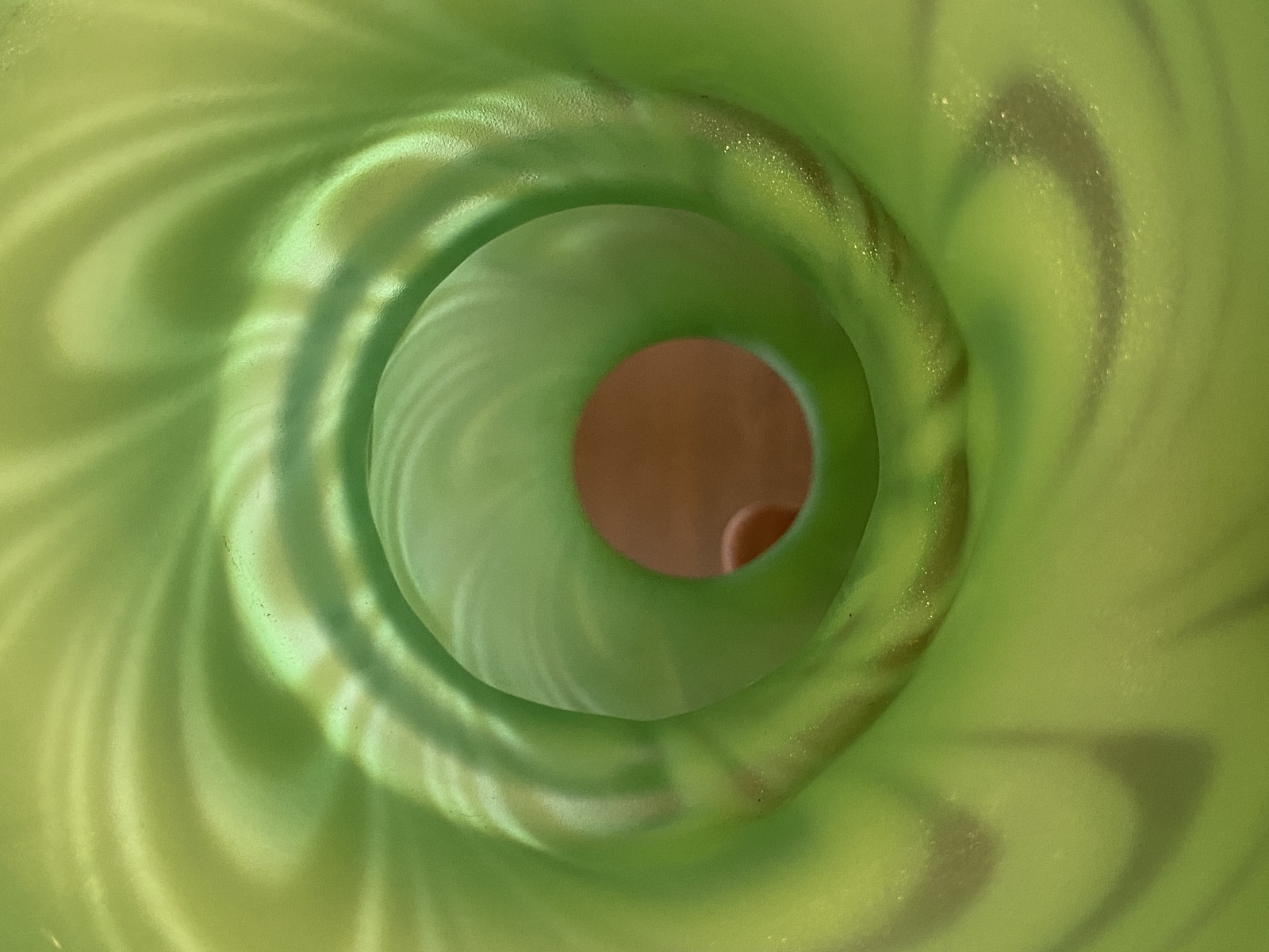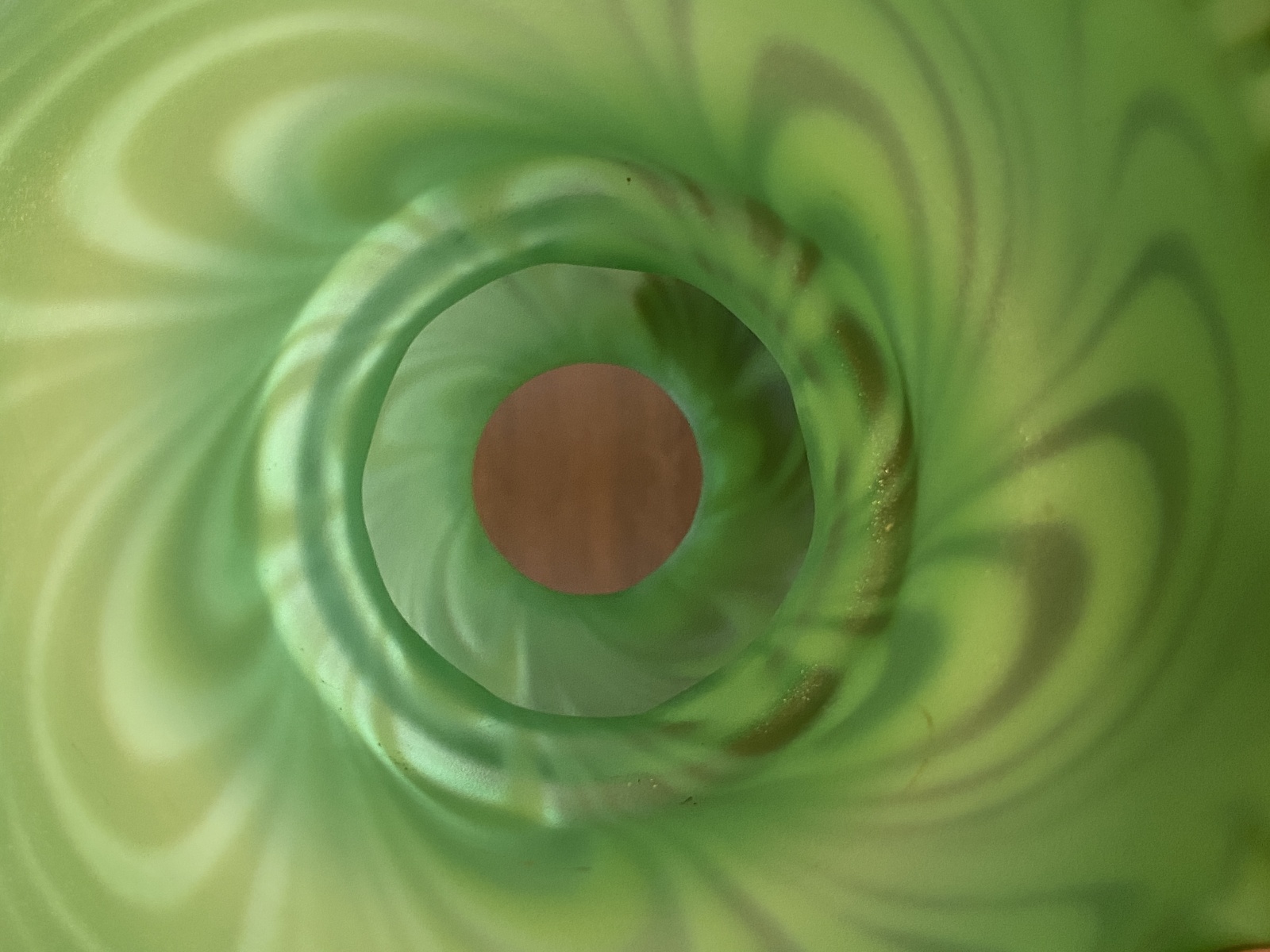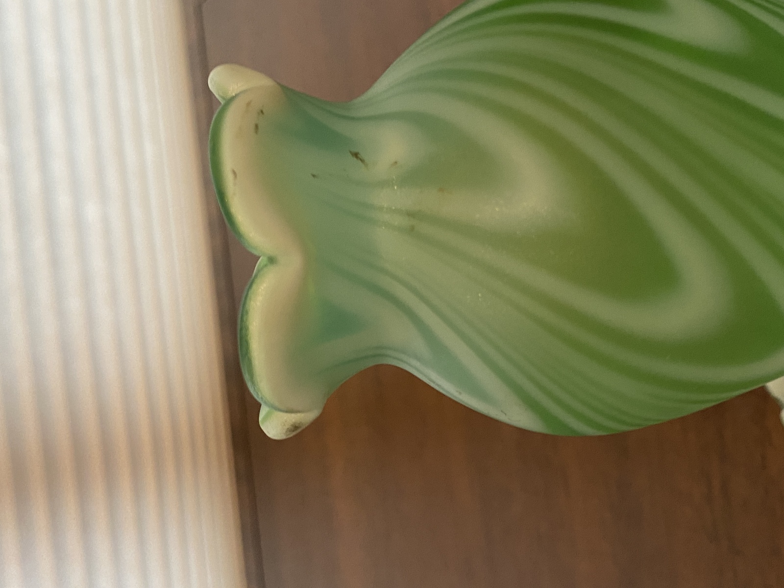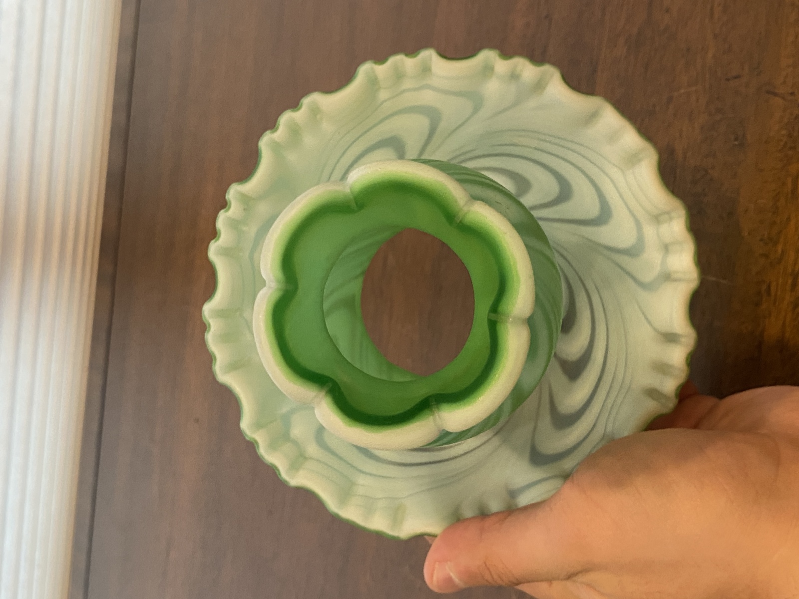 RARE VTG FENTON Green Opalescent Satin SWIRLED FEATHER Fairy Lamps PAIR 5.75"H