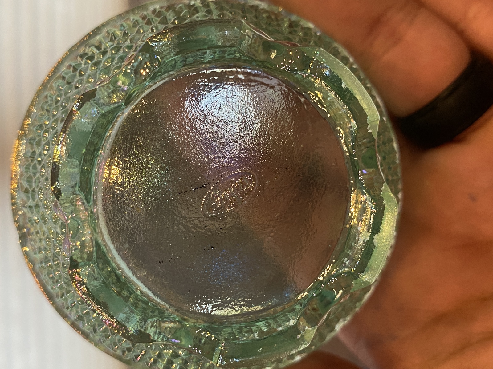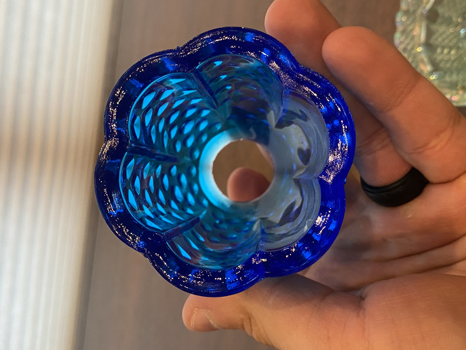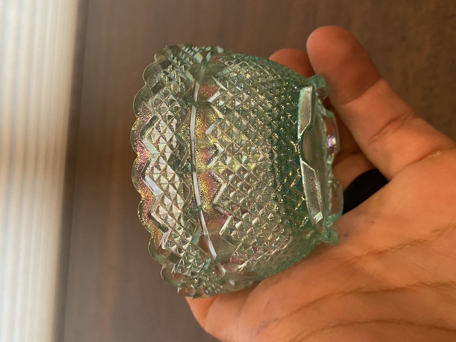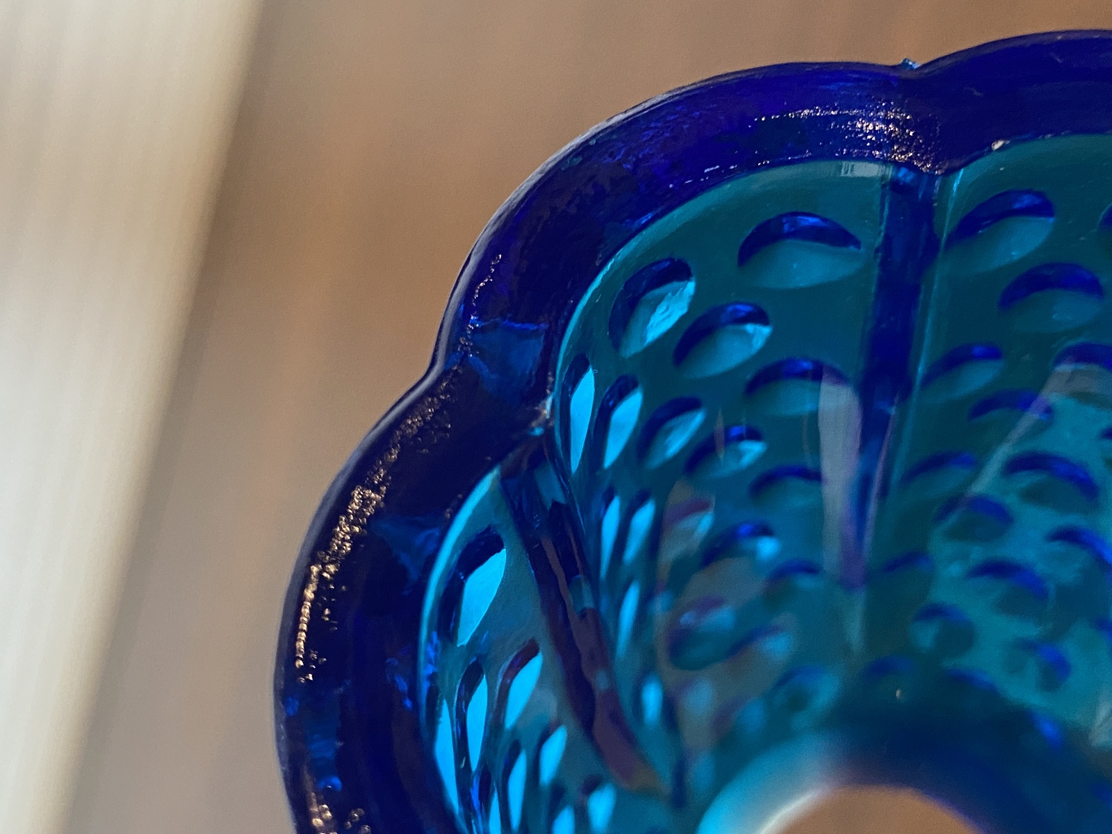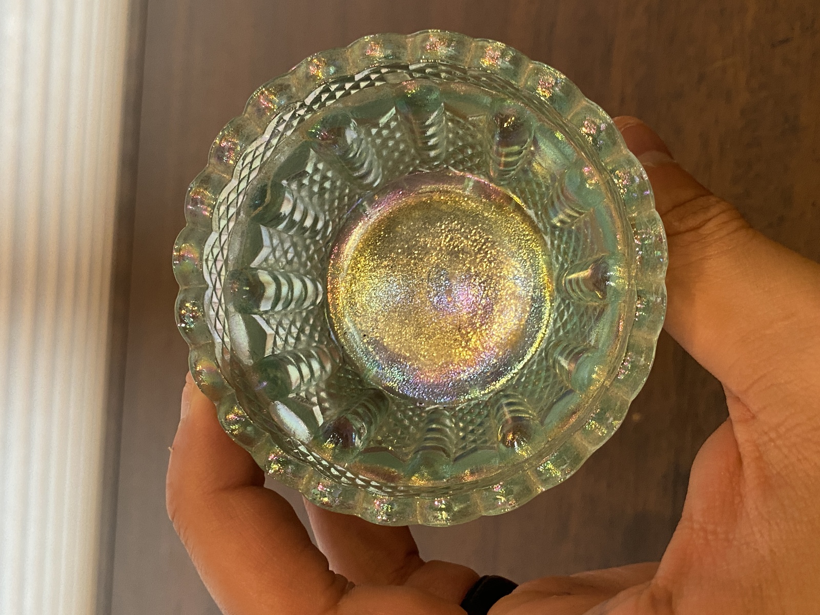 VTG FENTON Blue Top/Iridescent Base Glass Hobnail Fairy Lamp Candle Holder 4.25"