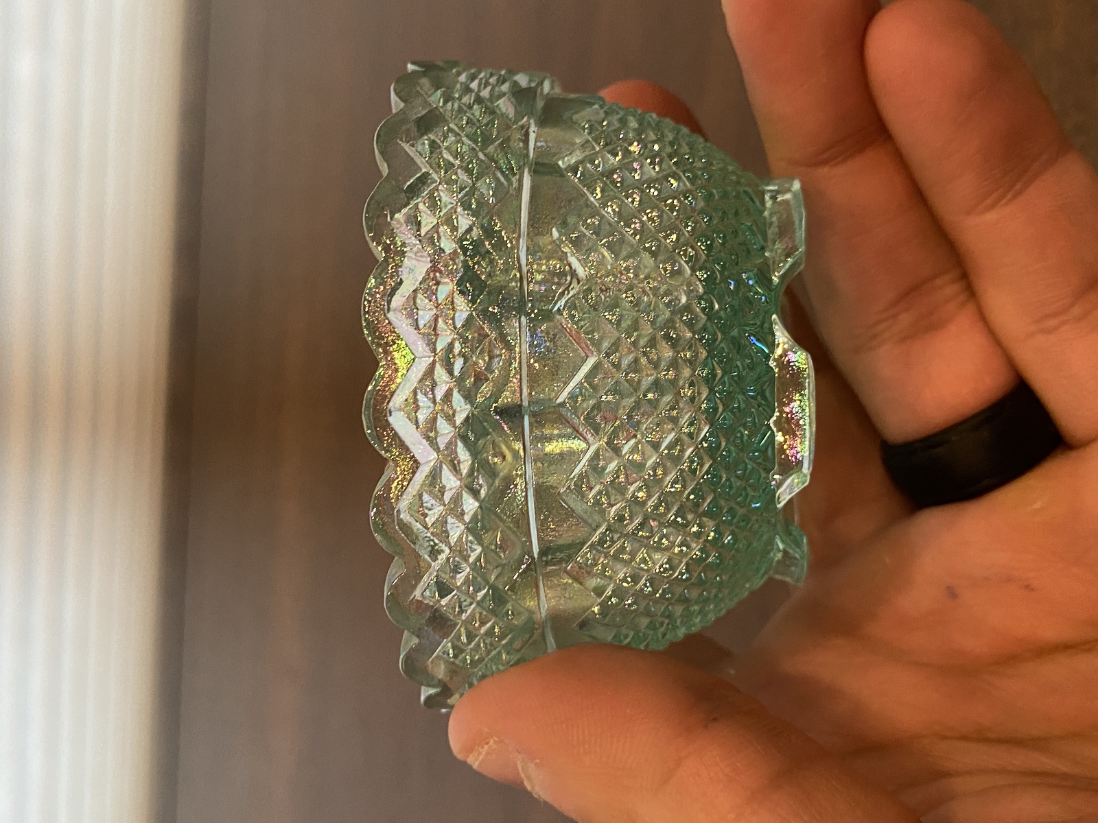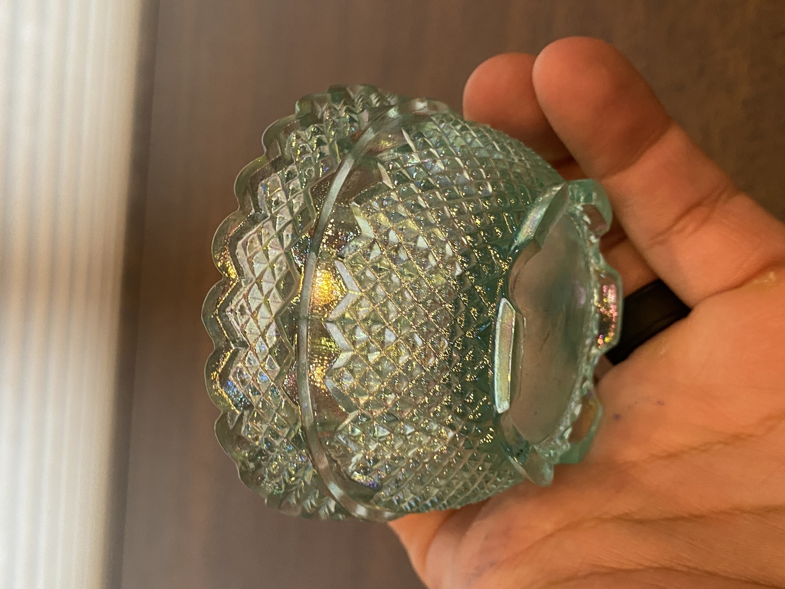 GOOD USED CONDITION (PLEASE NOTE THAT THIS PIECE HAS A FEW VERY SMALL HARD TO SEE CHIP/BITE MARKS ON THE TOP RIM OF THE TOP PIECE, AND A SMALL HARD TO SEE ONE ON THE BOTTOM INNER RIM OF THE BOTTOM OF THE TOP PIECE, NOTED IN THE PHOTOS, and light scratching from its many years of love(age) but still in good shape for its age). (Please refer back to the photos for condition and feel free to message me if you have any questions. Thank you)