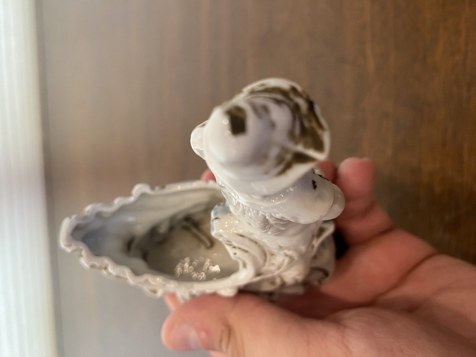 Good/Fair used condition (There is some wear to it noted in the photos, appears to have a chip on the side, noted in the photos, but it could also just be the design on the piece, also some light scratching from its many years of love(age.. (Please refer back to the photos for condition and feel free to message me if you have any questions. Thank you)!