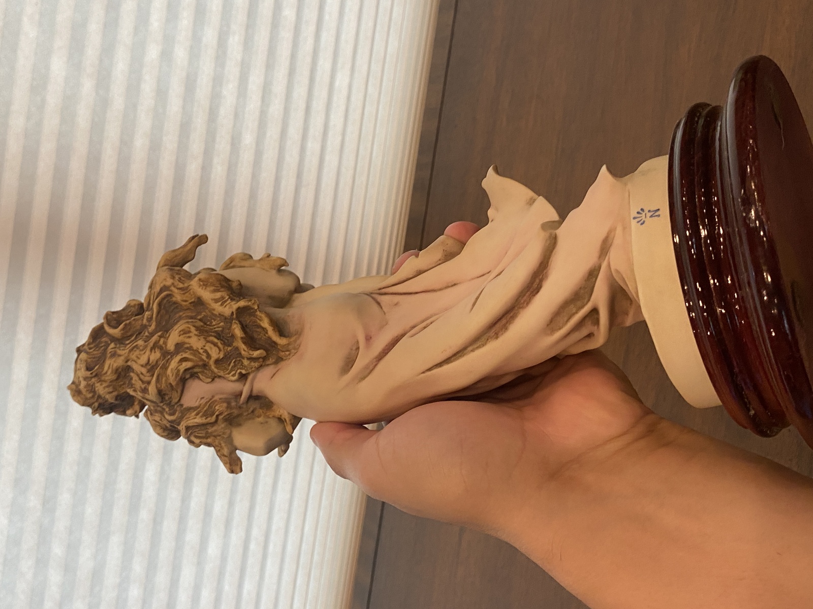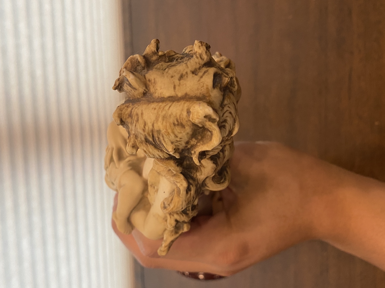 DAMAGED/FAIR USED CONDITION (PLEASE NOTE THAT THIS PIECE HAS A CHIP ON THE WOMANS HAIR, NOTED IN THE PHOTOS, and some light scratching from age, but other than that this piece is in good shape for its age). (Please refer back to the photos for condition and feel free to message me if you have any questions. Thank you)!
