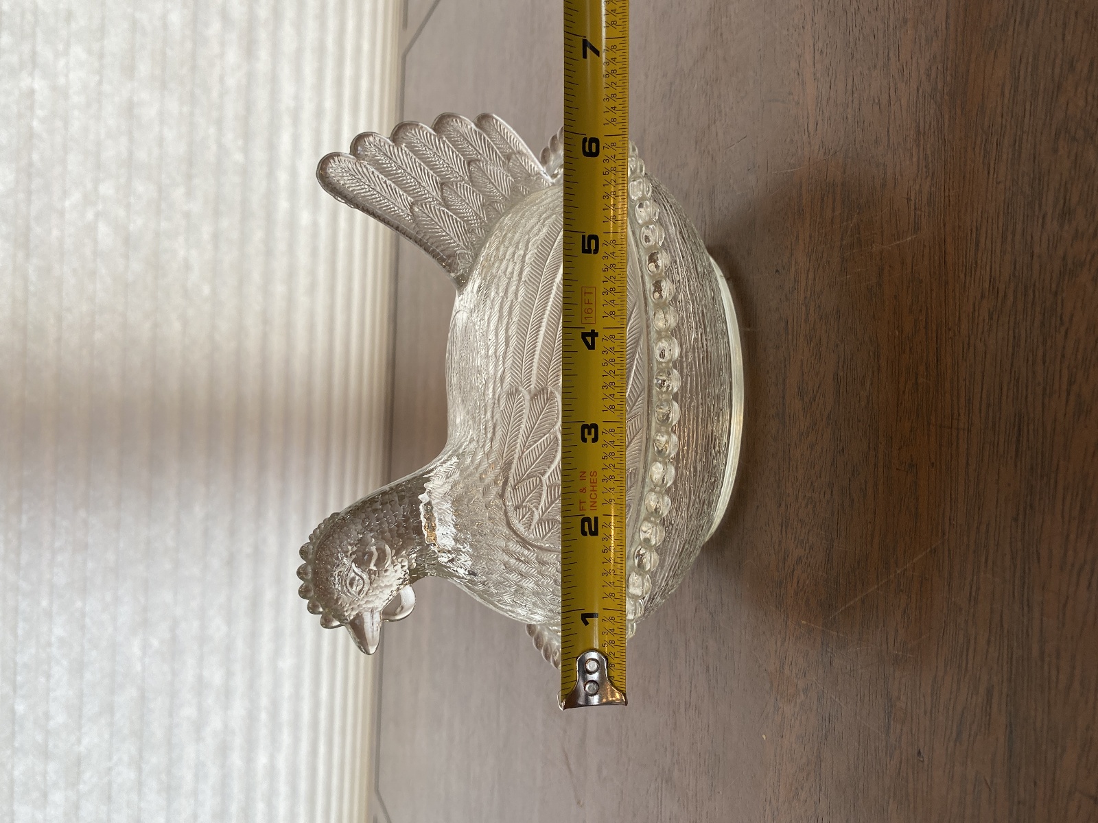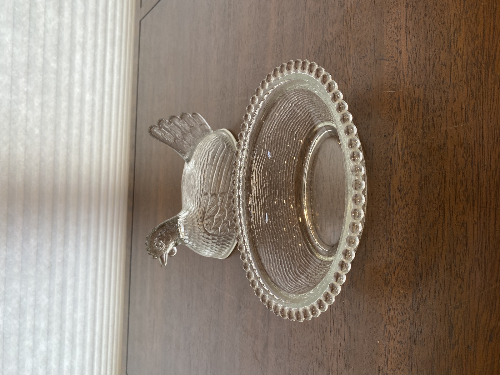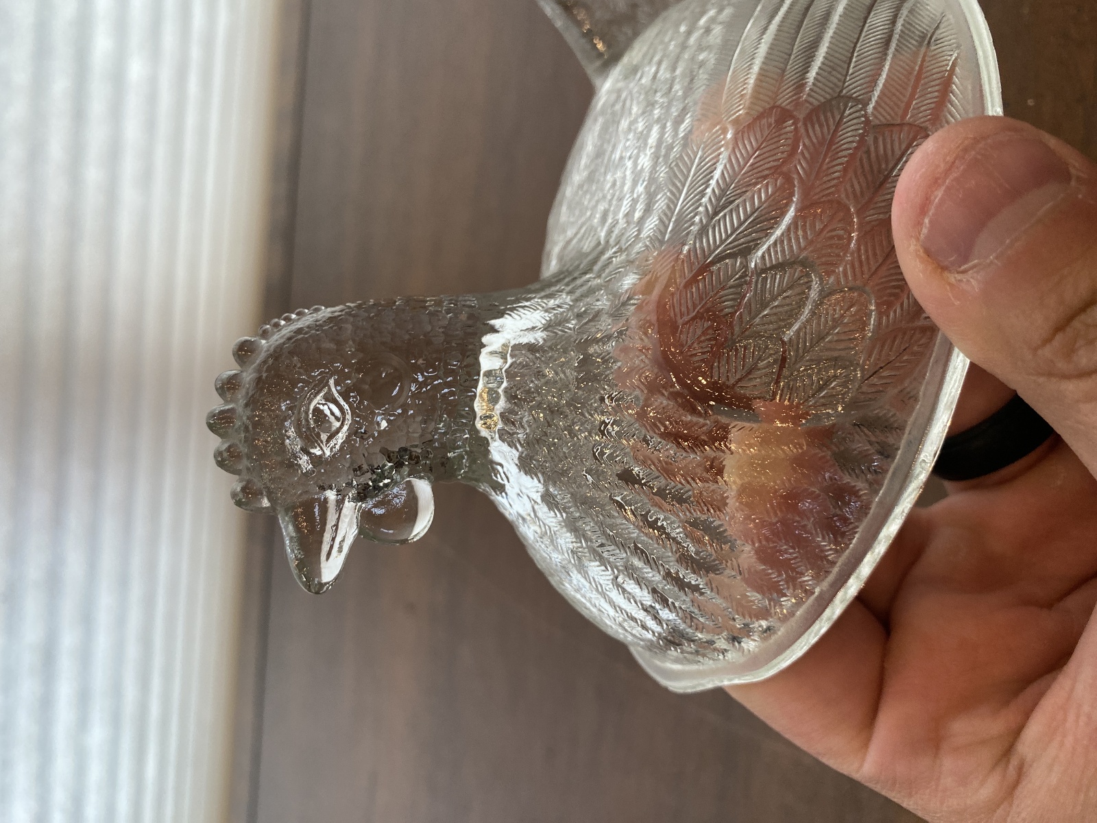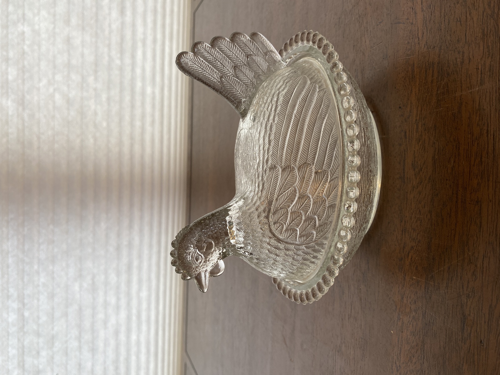 VTG Indiana Glass Clear Glass Nesting Hen Design Candy Dish 7"L