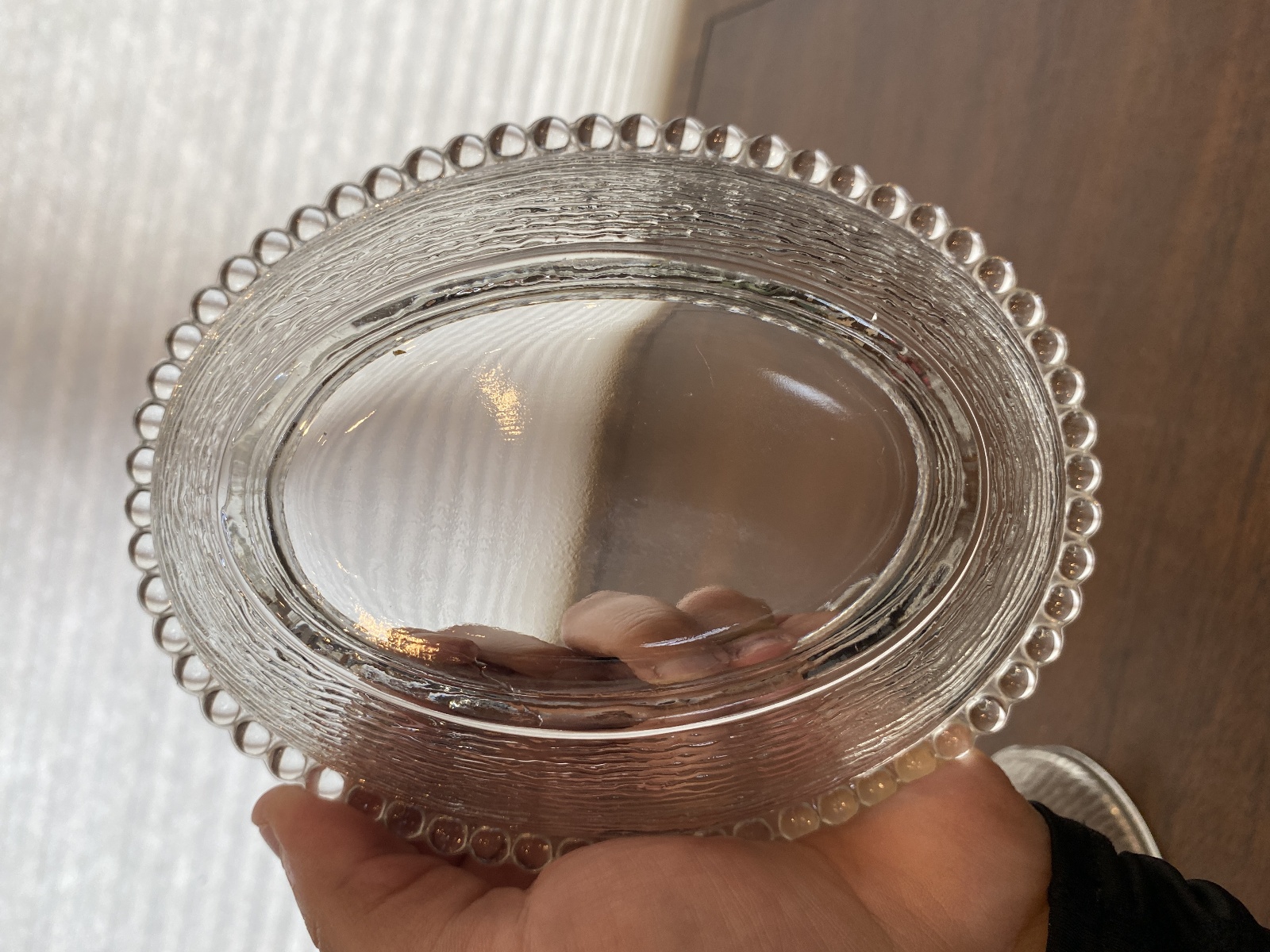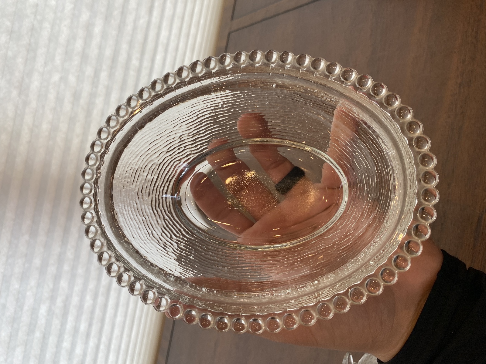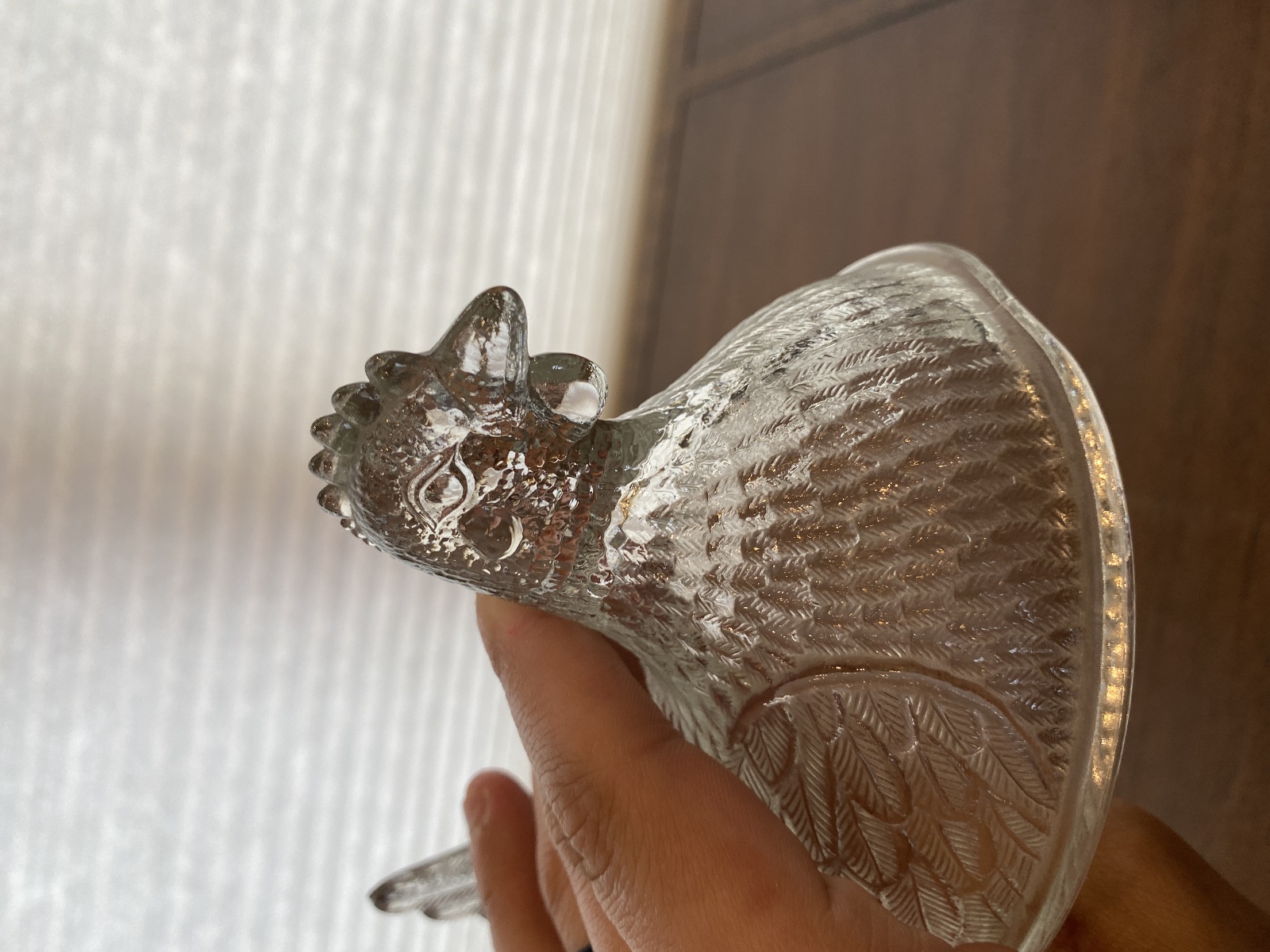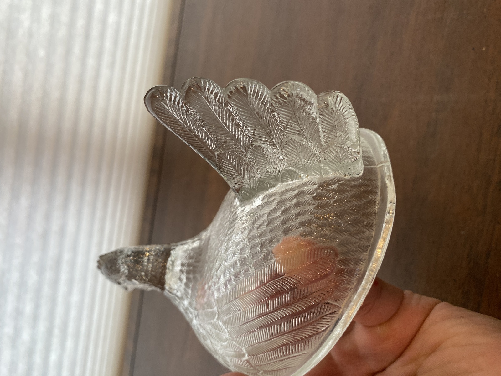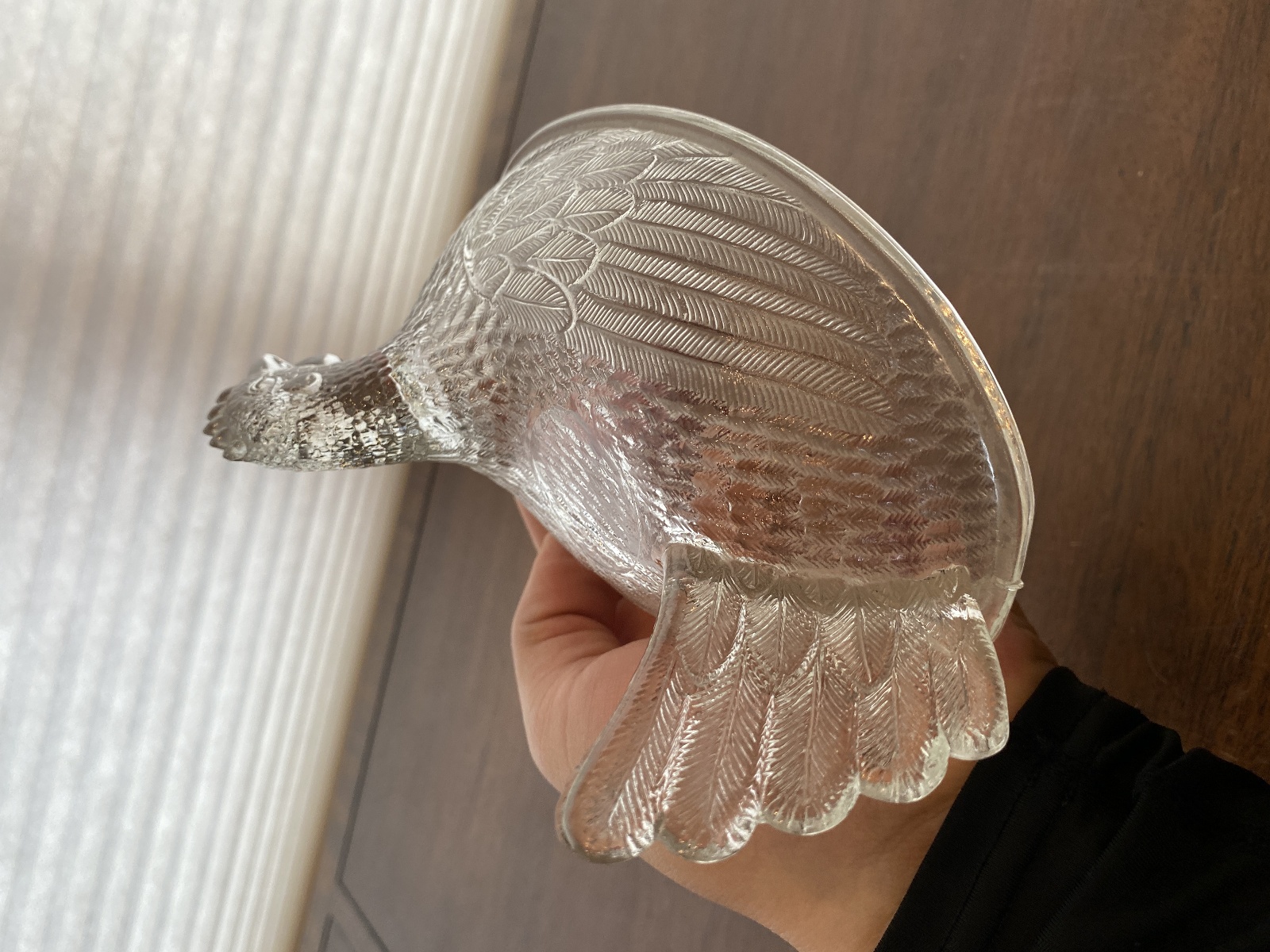 VTG Indiana Glass Clear Glass Nesting Hen Design Candy Dish 7"L