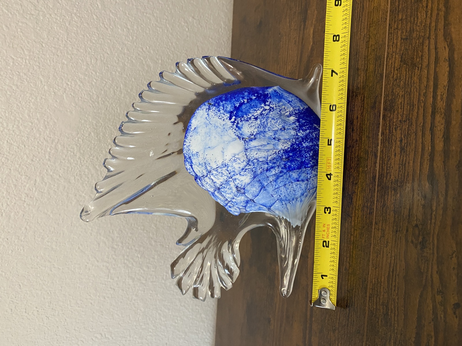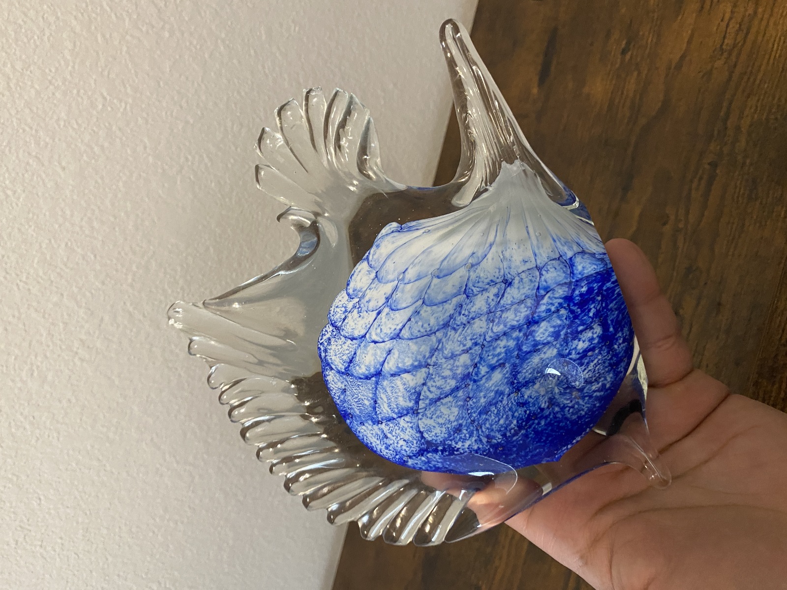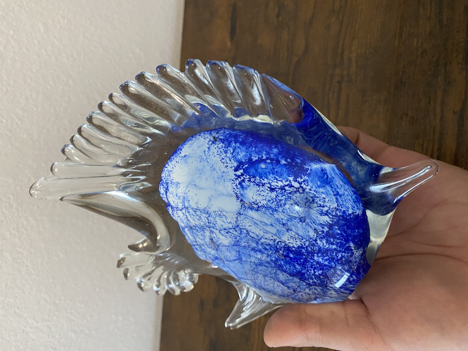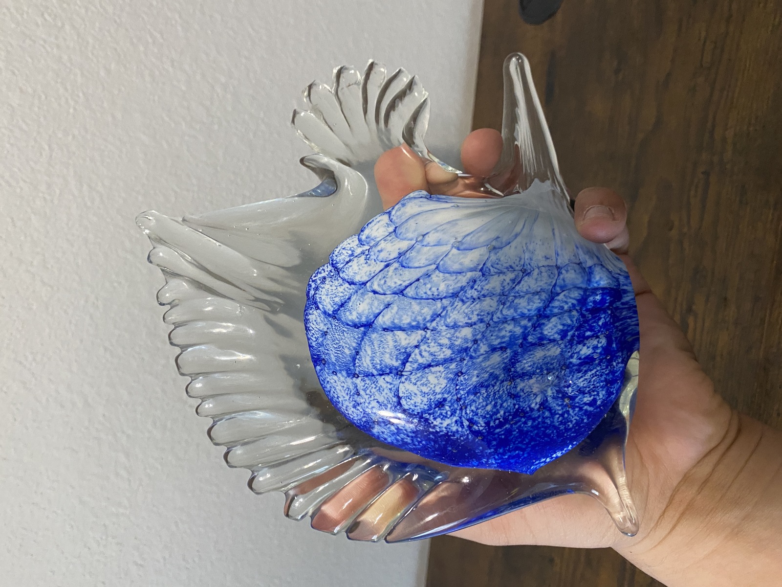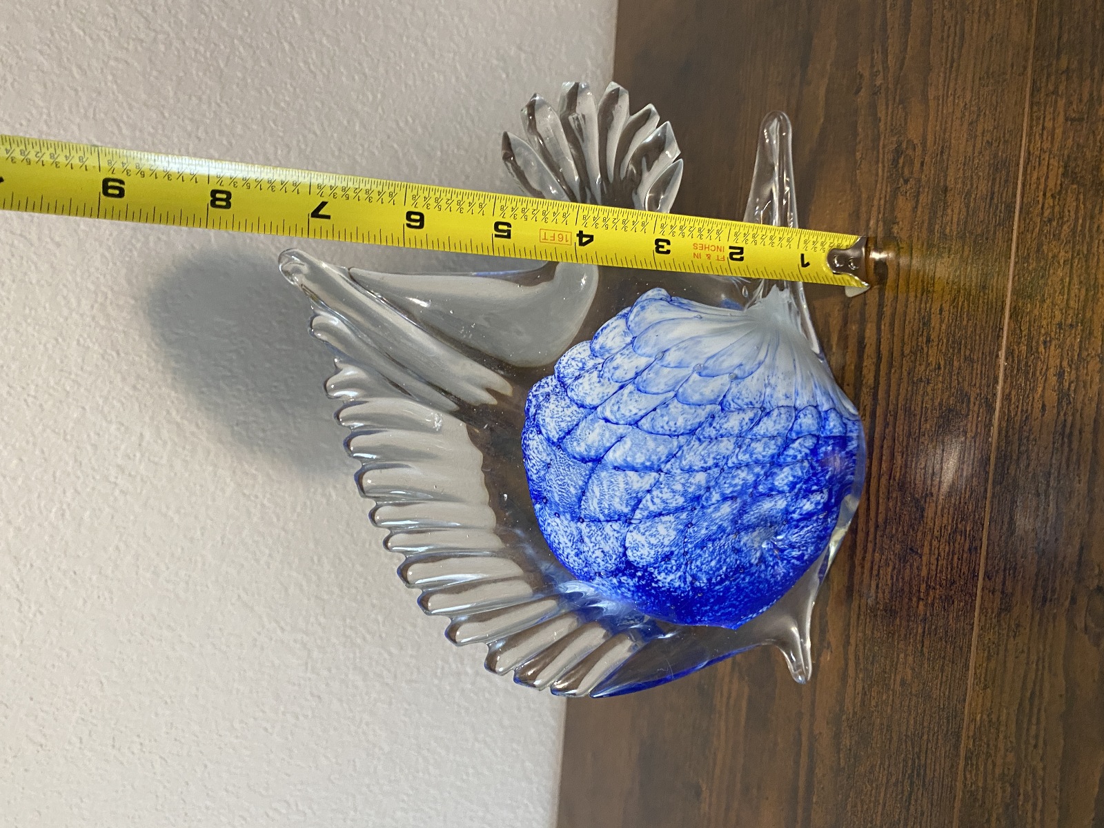 LARGE VTG Blue & White Art Glass Angel Fish Figurine/Sculpture 7.5"L