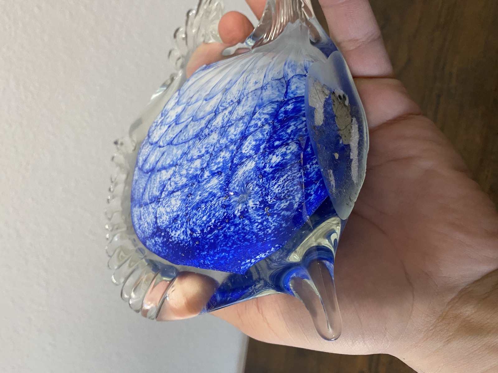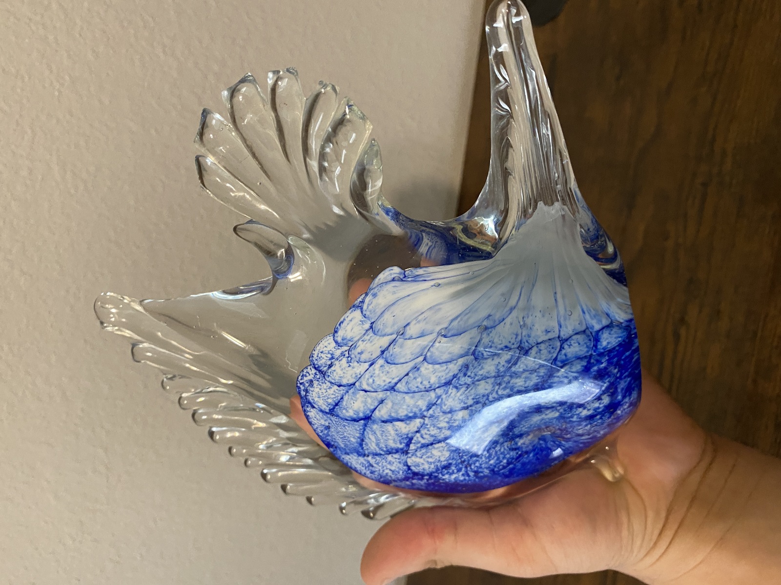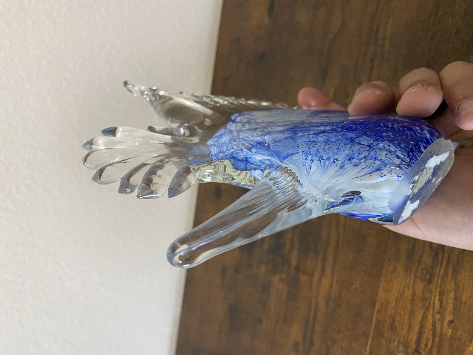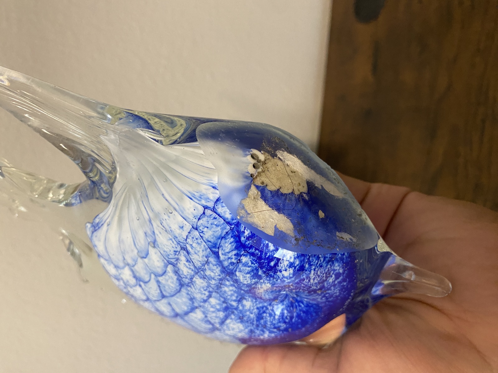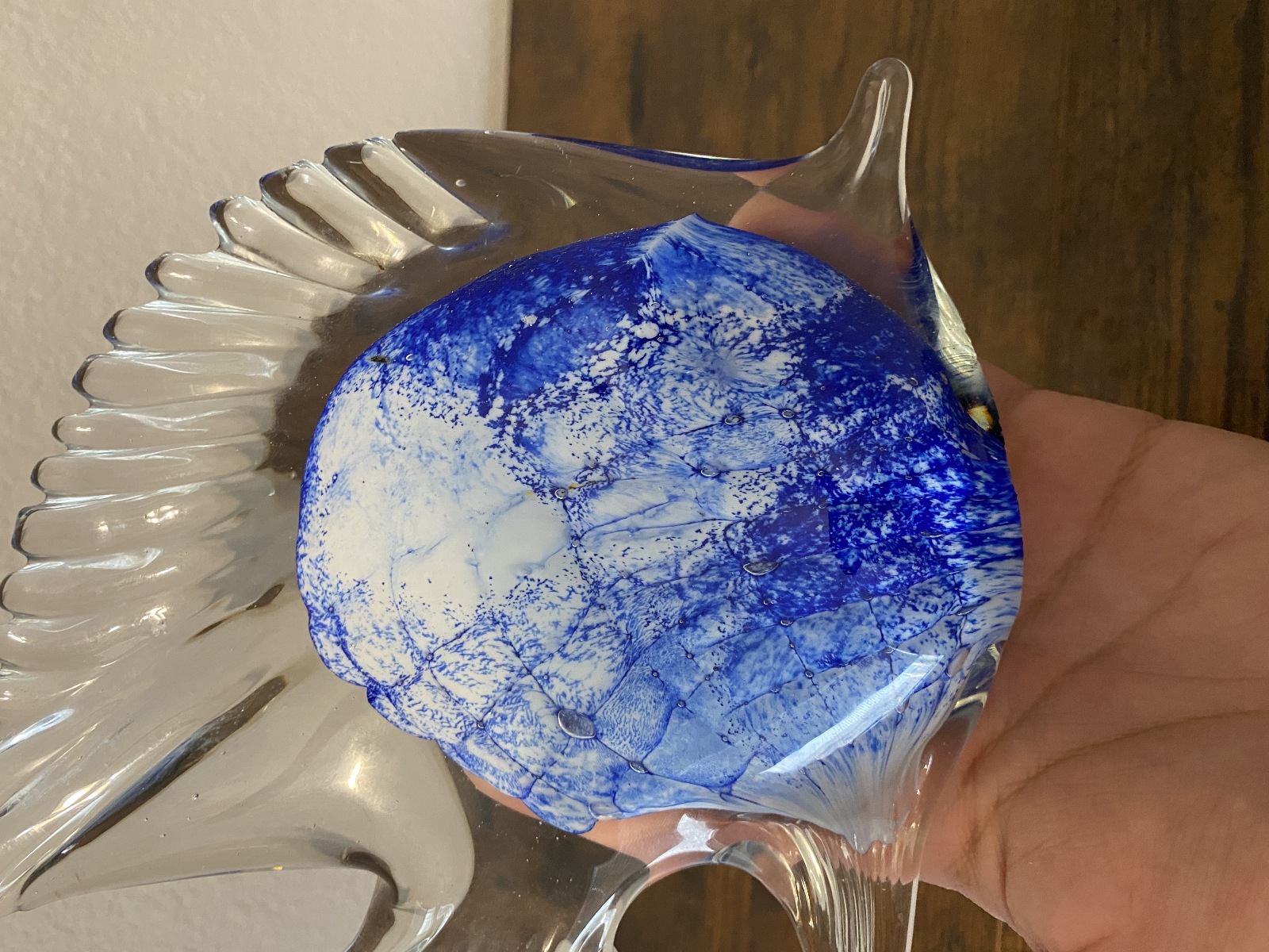 LARGE VTG Blue & White Art Glass Angel Fish Figurine/Sculpture 7.5"L