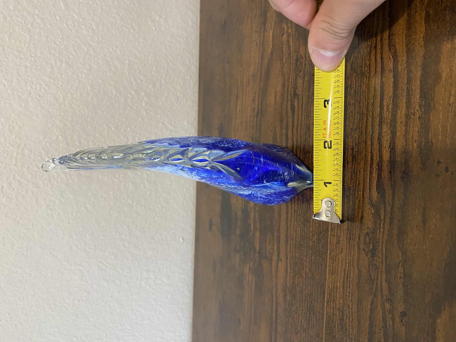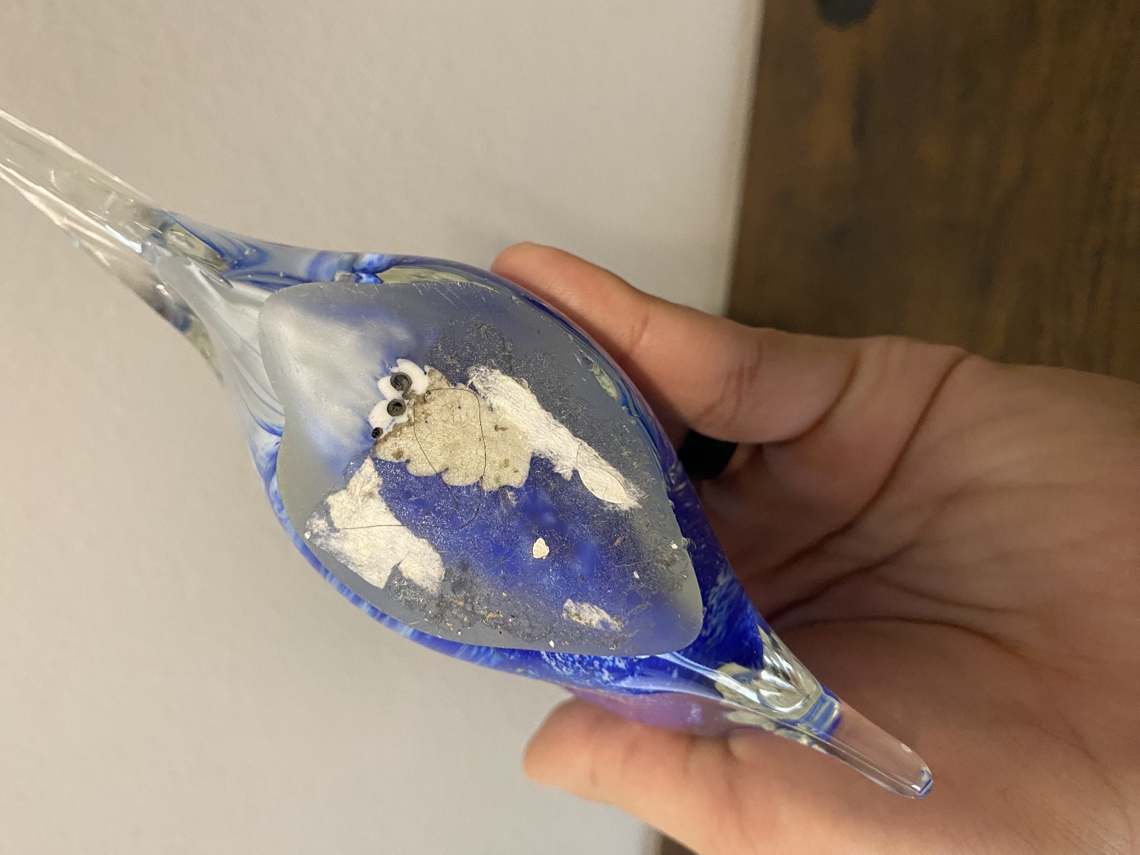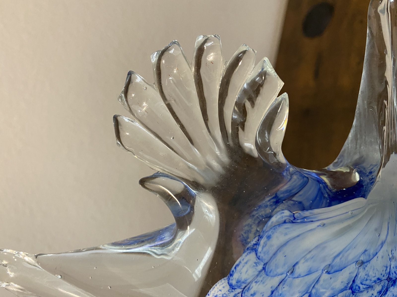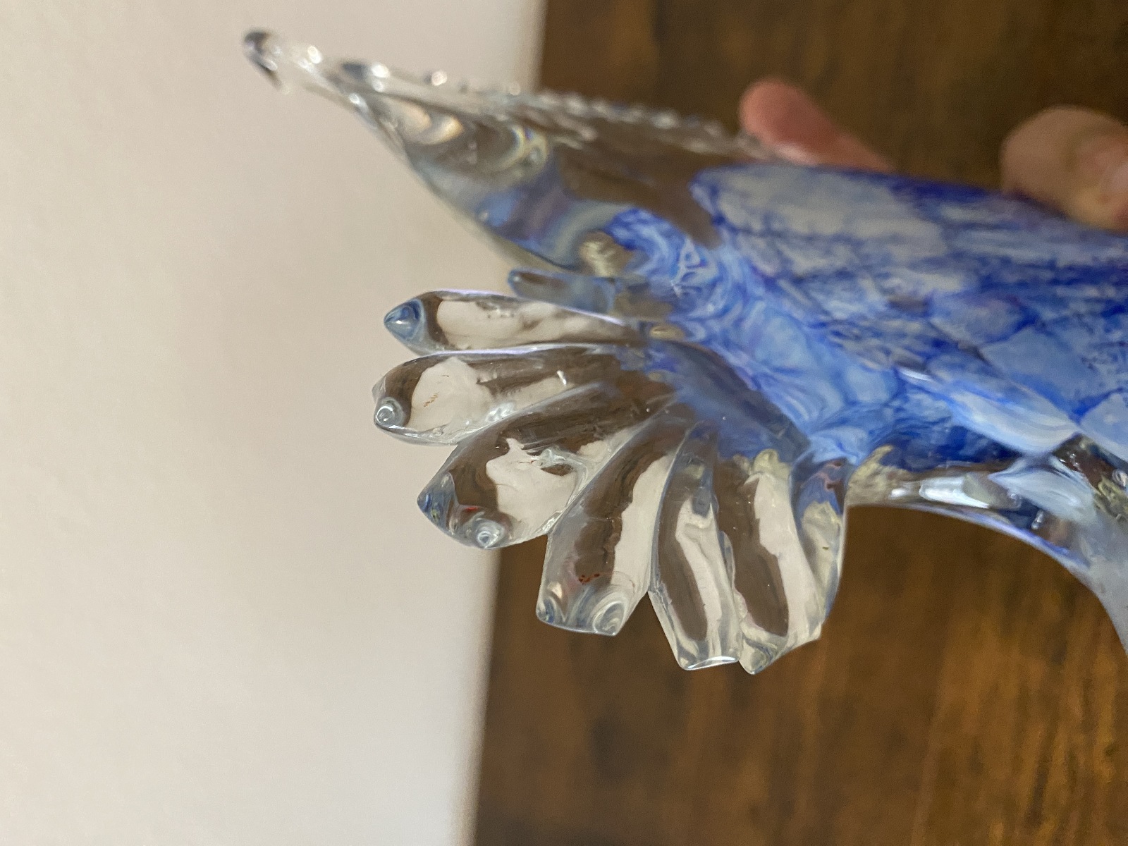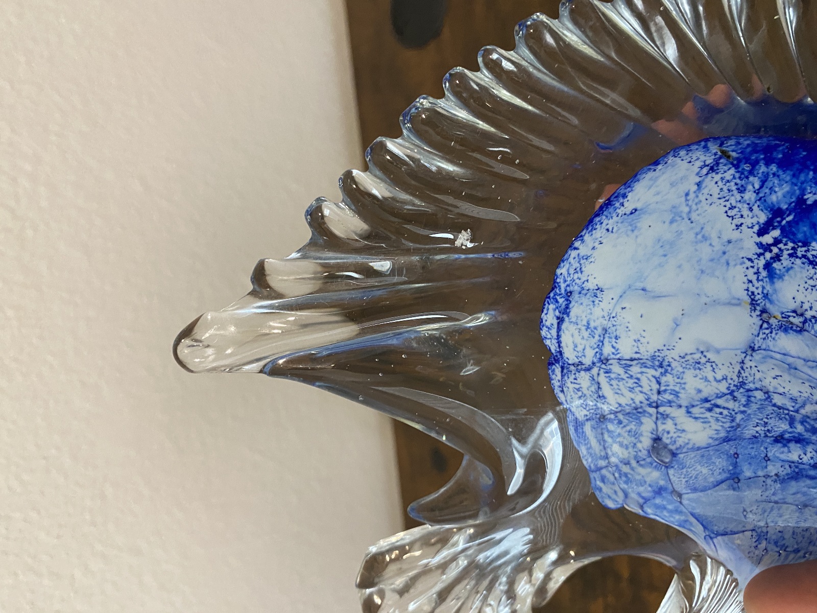 LARGE VTG Blue & White Art Glass Angel Fish Figurine/Sculpture 7.5"L