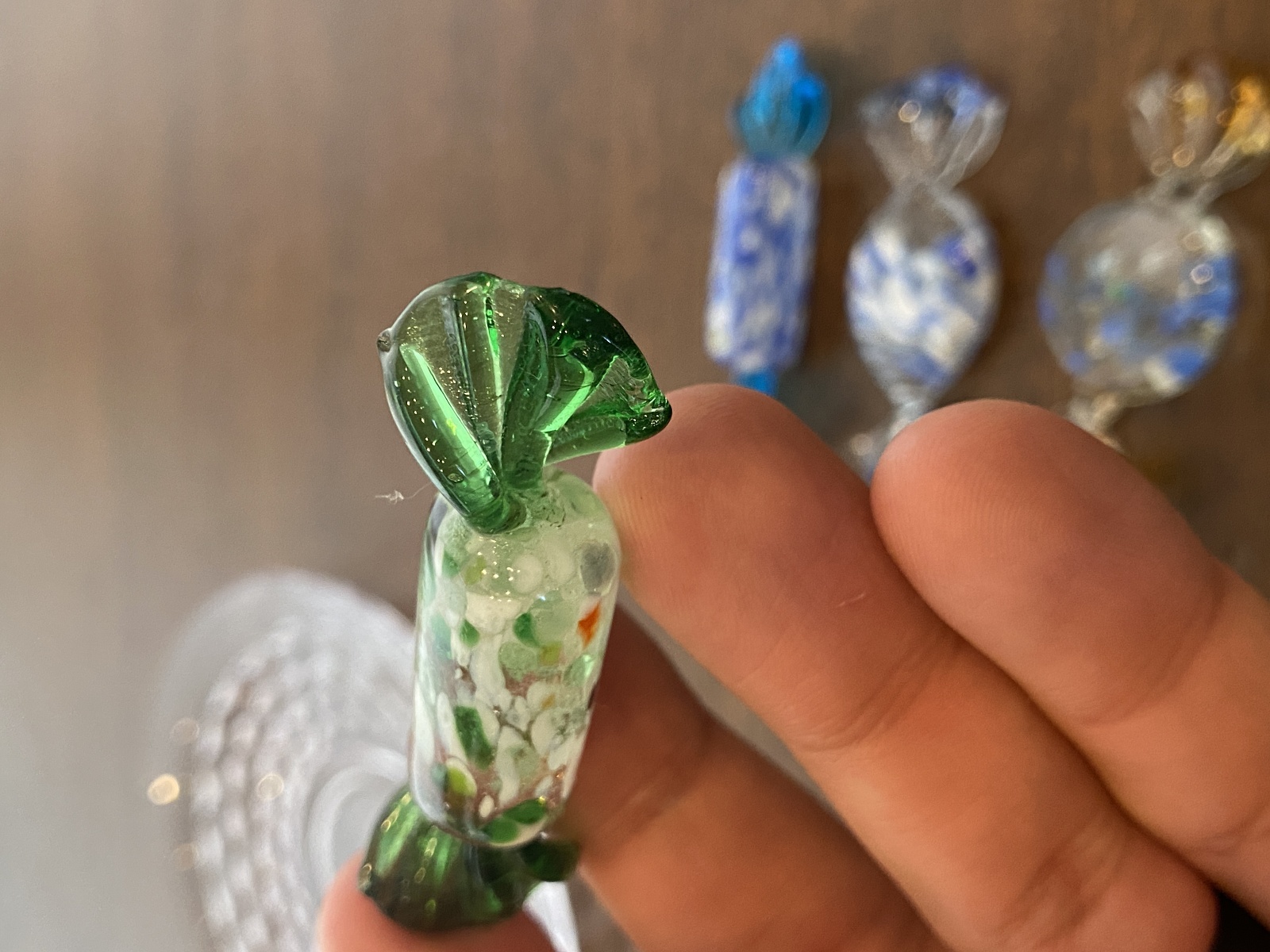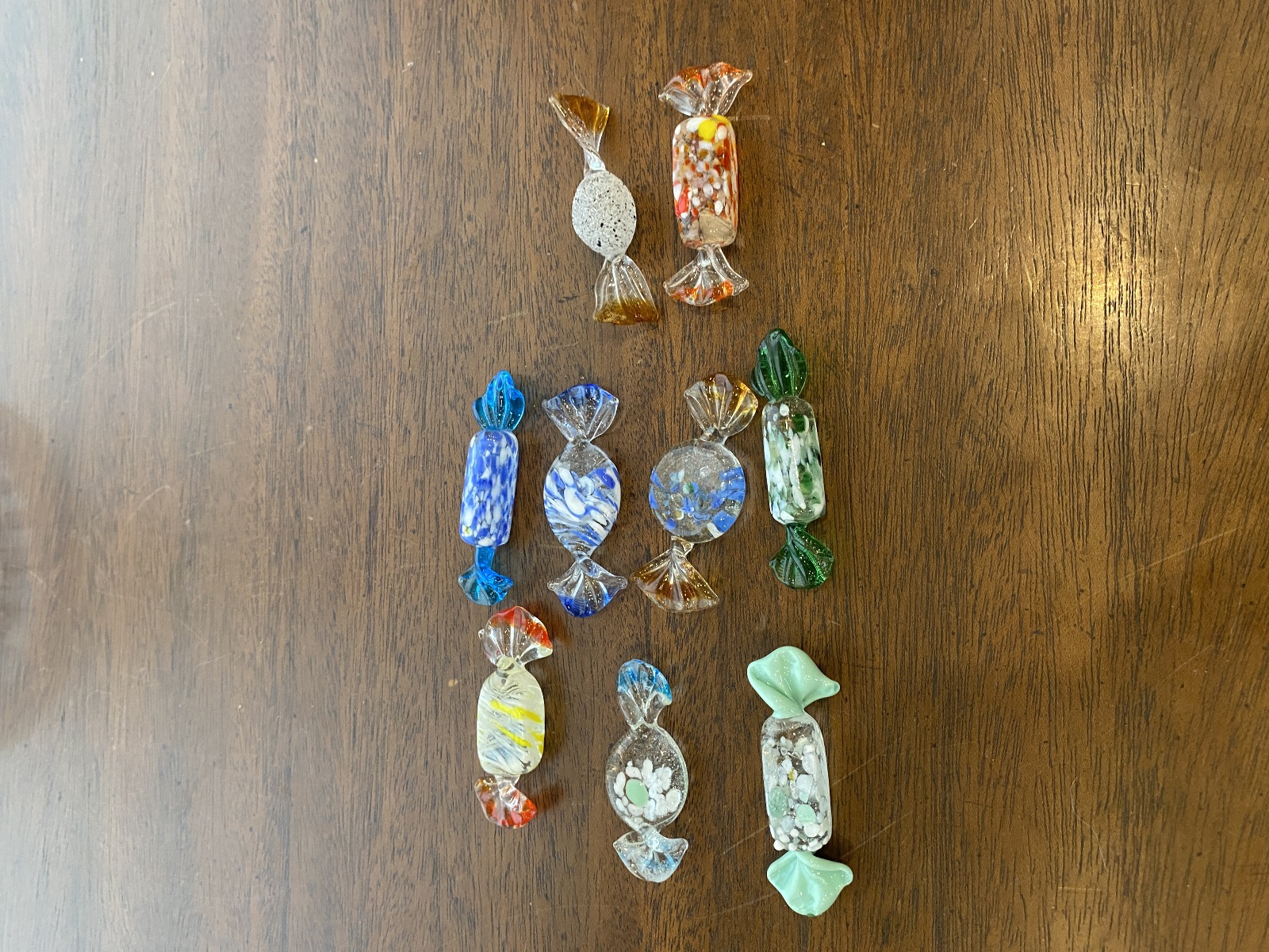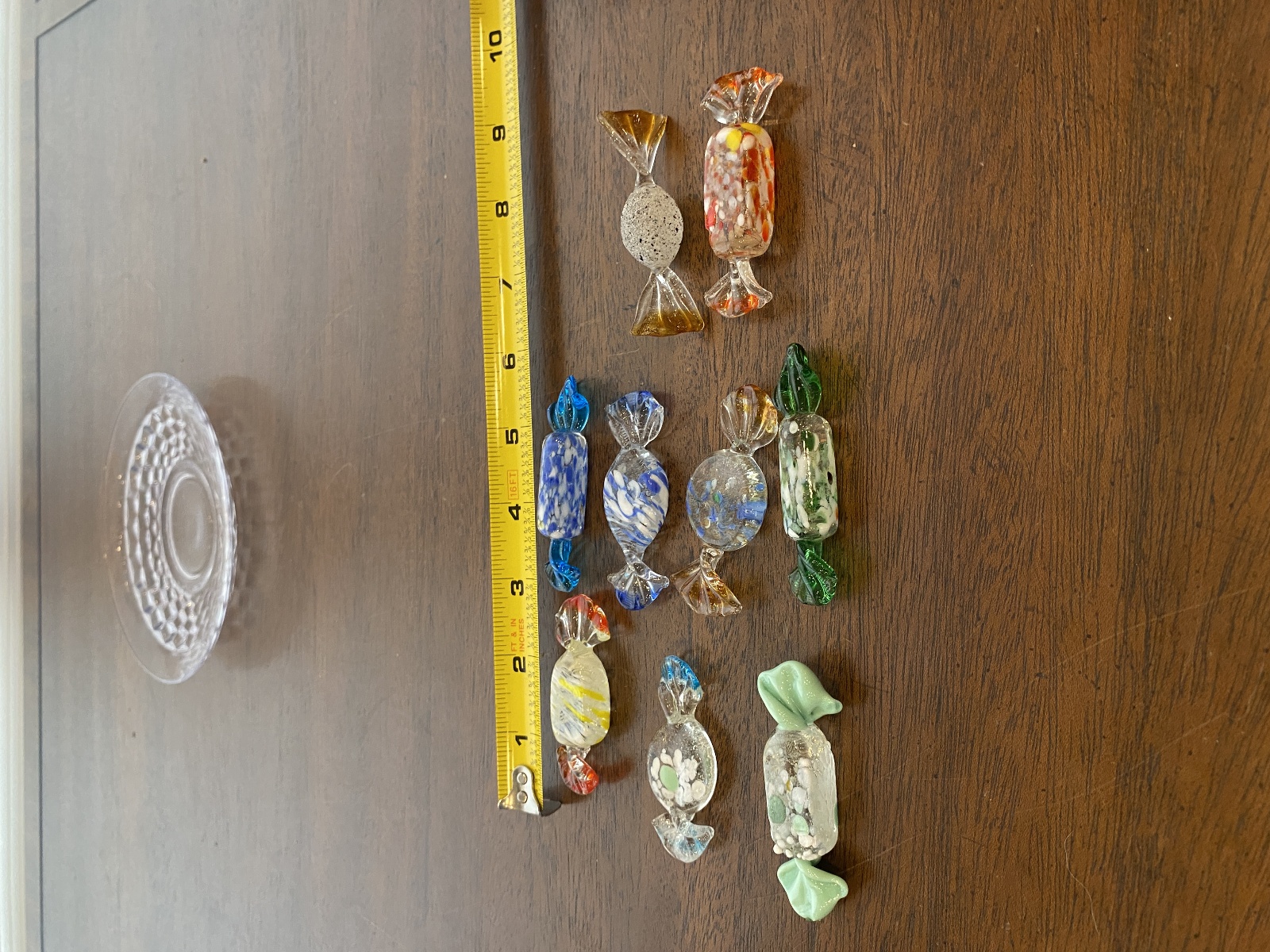 Small American Fostoria Plate & 9 Hand Blown Art Glass Candies SET(10)