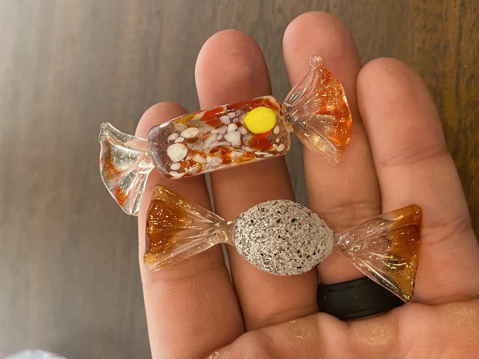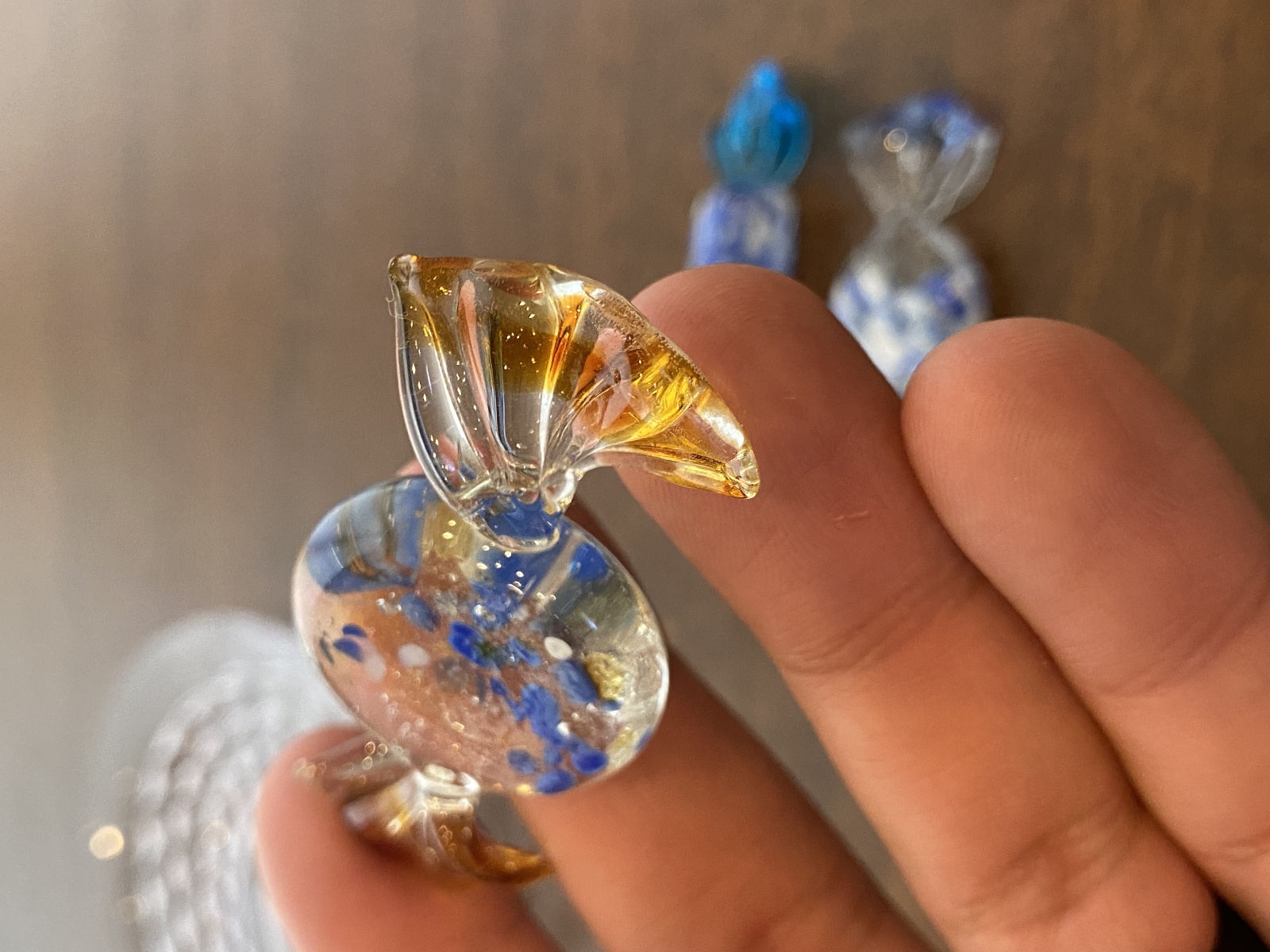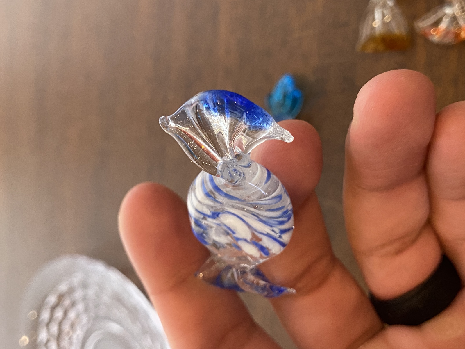 Small American Fostoria Plate & 9 Hand Blown Art Glass Candies SET(10)