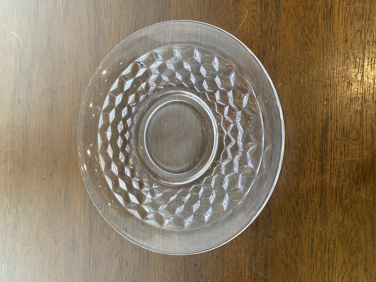 Plate is in good used condition just has scratching from age and use, 7 of the 9 candies have a small chip/rough spout on the side of them, noted in the photos, overall set is still in good shape).Please refer back to the photos for condition and feel free to message me if you have any questions. Thank you)! Approximate measurements Plate 6", Candies 2.5"L 100% of the proceeds go to the registered non profit Cards of Love Inc. and with your purchase you are helping raise money to fund scholarships for at risk youth. Thank you!