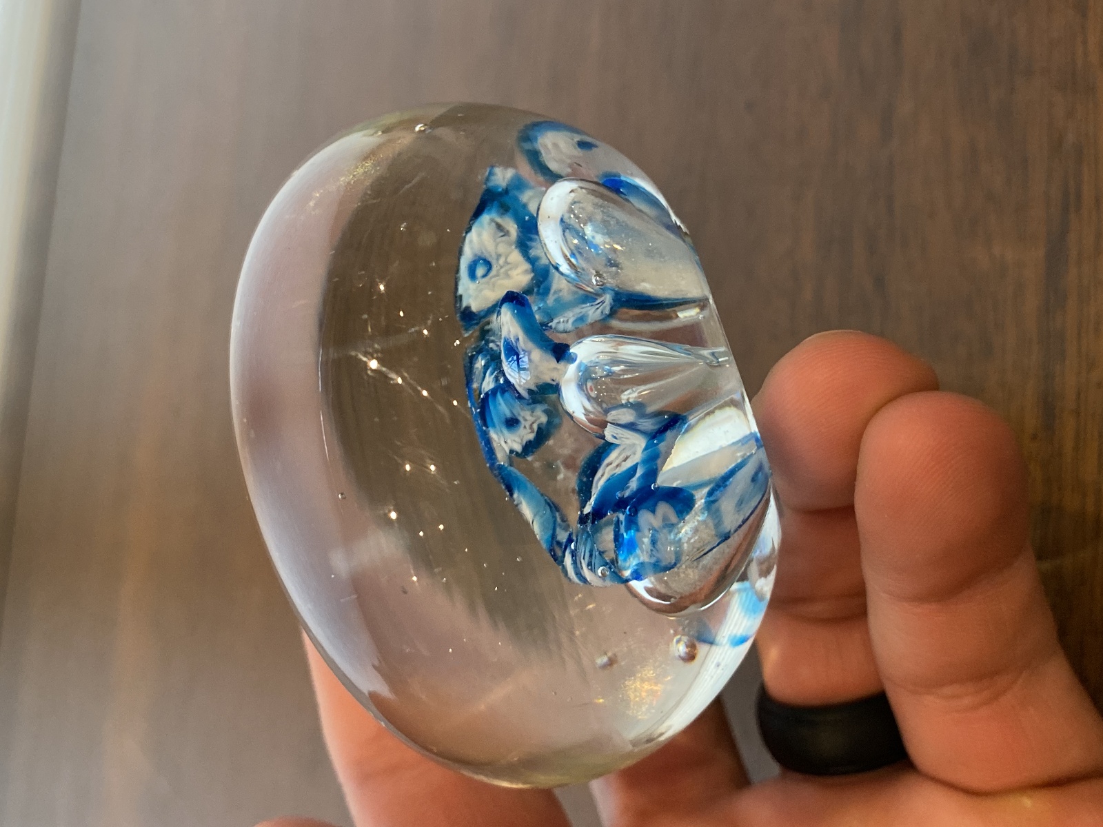 Great/good used condition (Light scratching from its many years of love and some wear on the base, don't know if small chip on base or a mark from being handblown, but overall in great shape). (Please refer back to the photos for condition and feel free to message me if you have any questions. Thank you)!