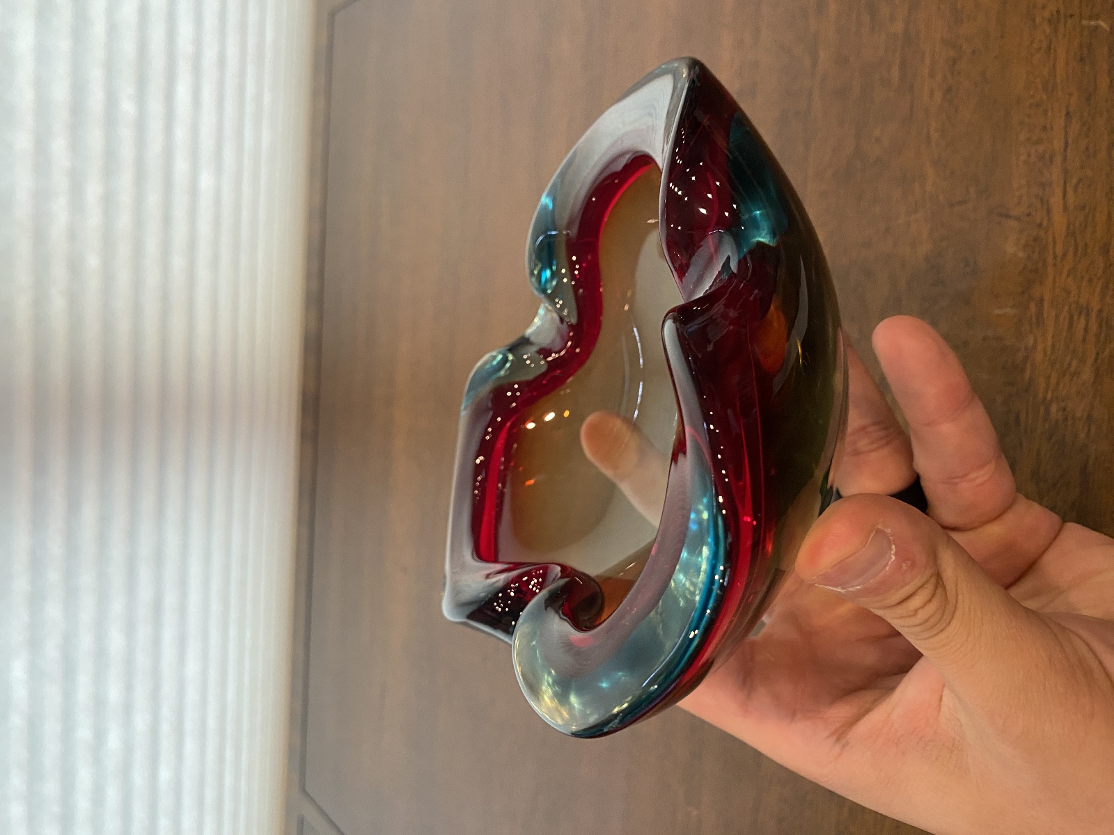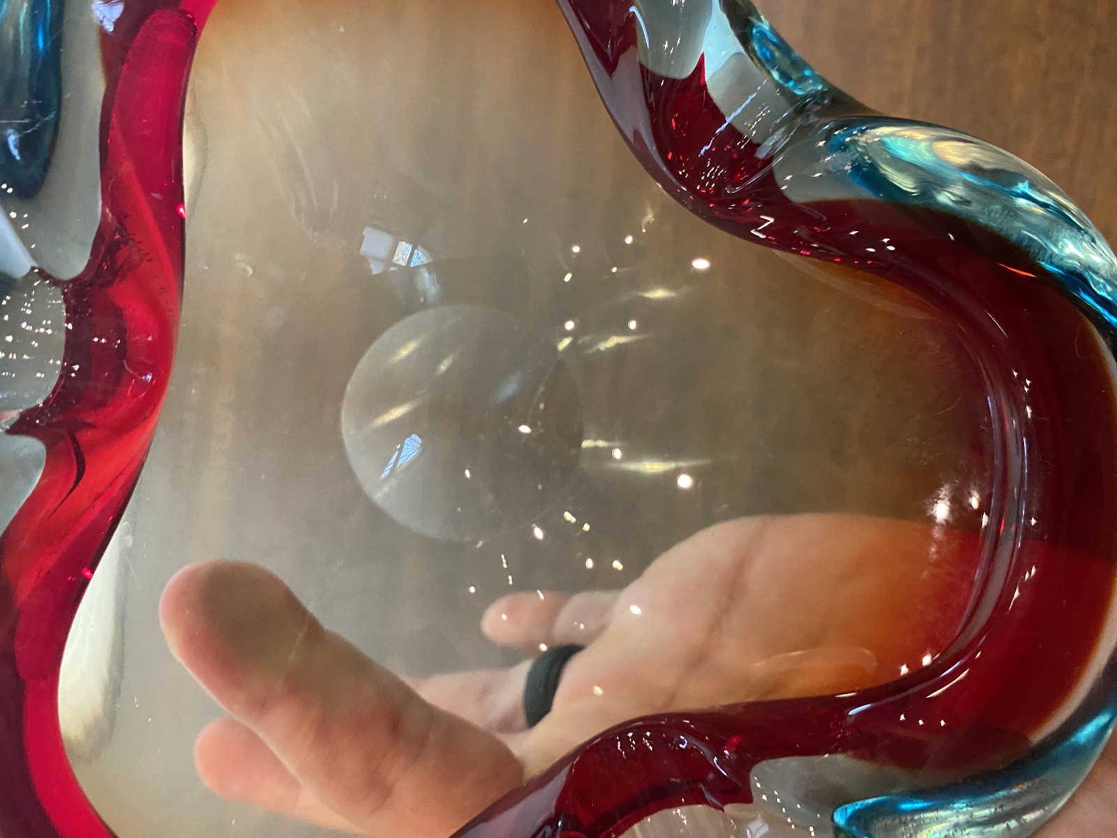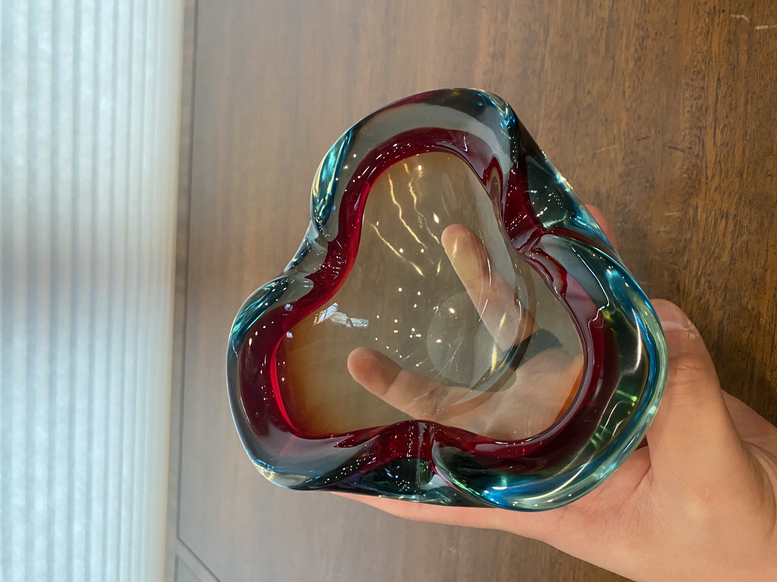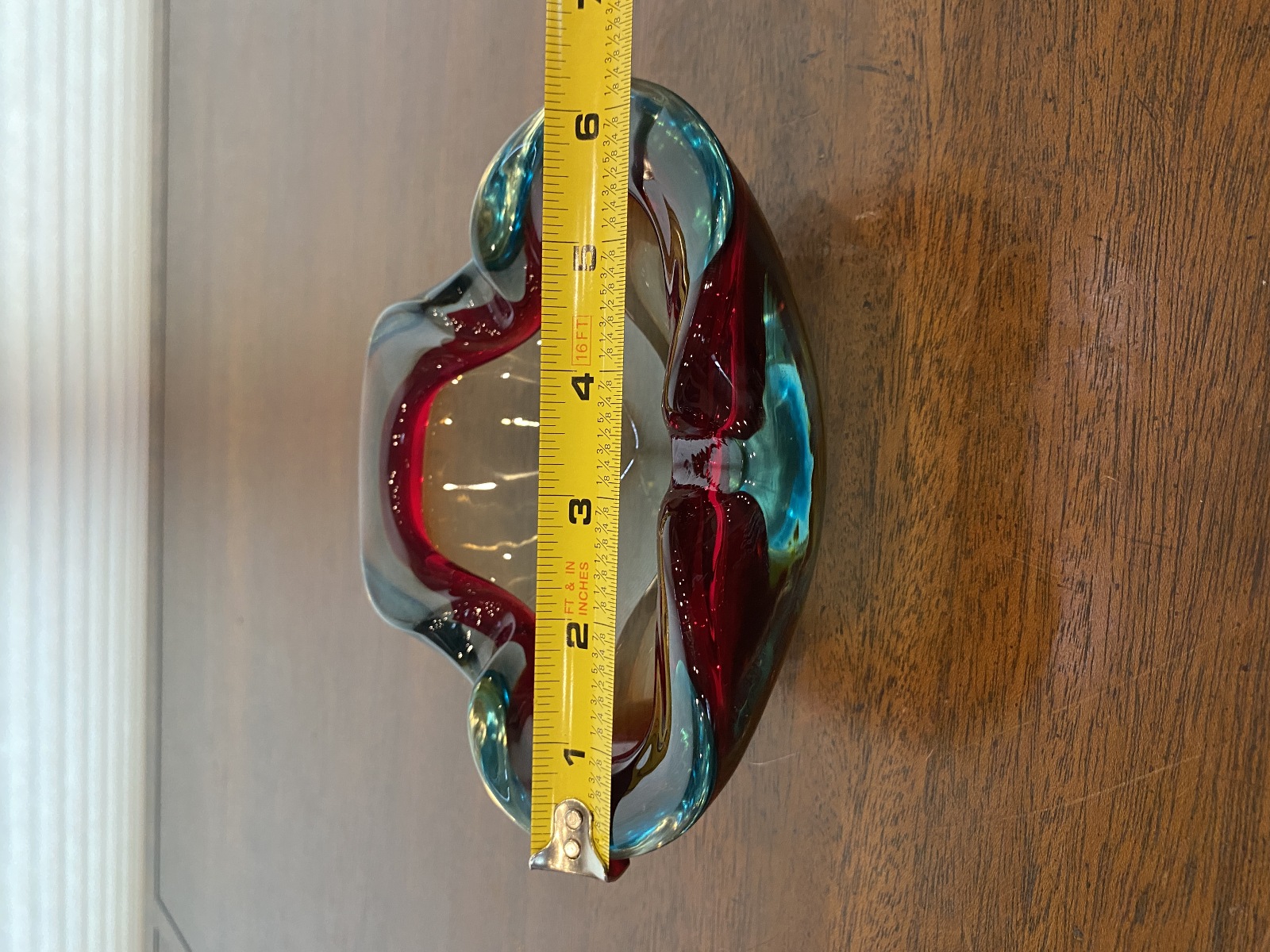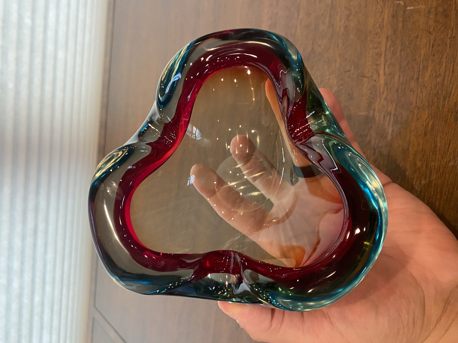 VTG MURANO Turquoise & Red Sommerso Art Glass Ashtray Bowl 6.5"L ITALY