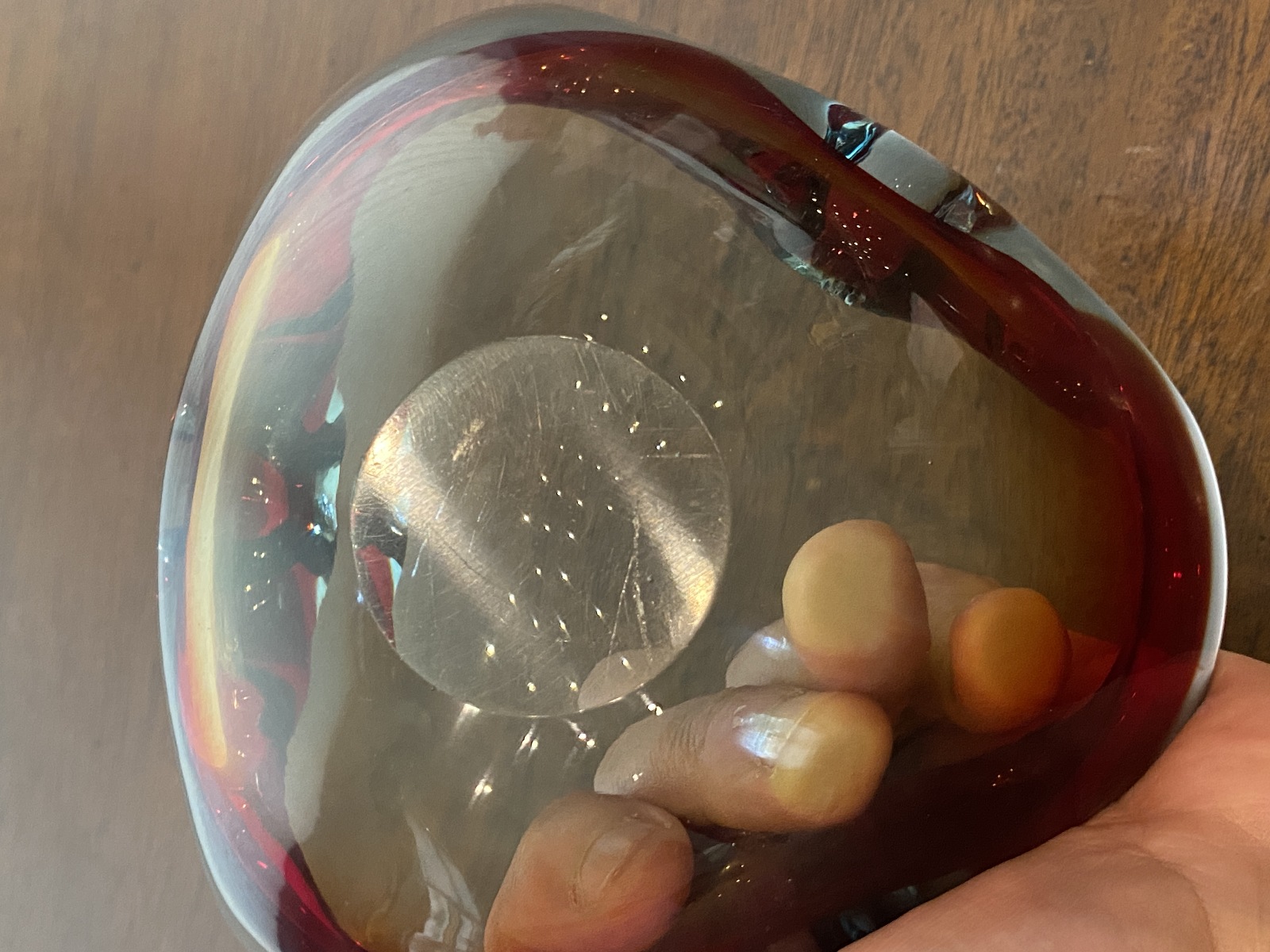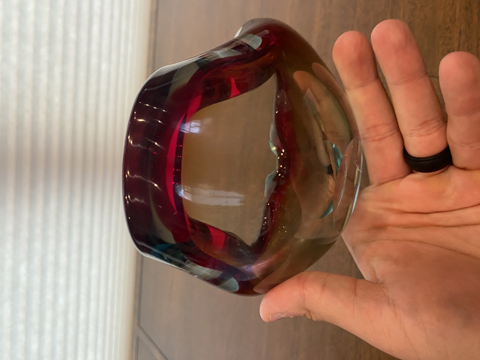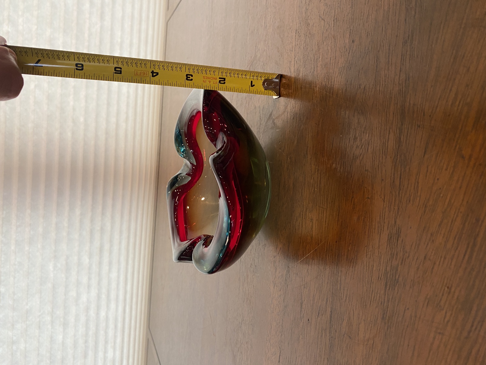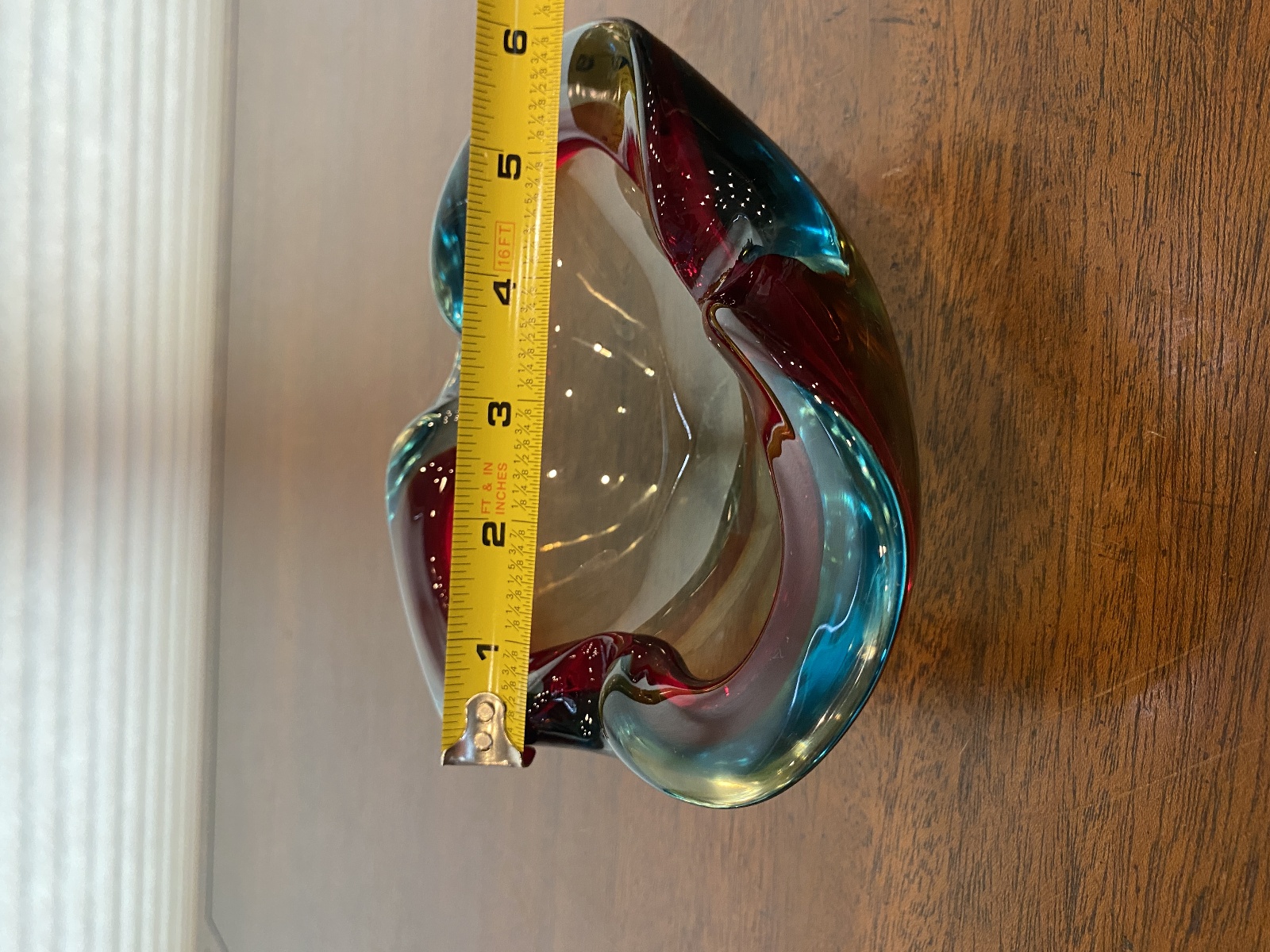 VTG MURANO Turquoise & Red Sommerso Art Glass Ashtray Bowl 6.5"L ITALY