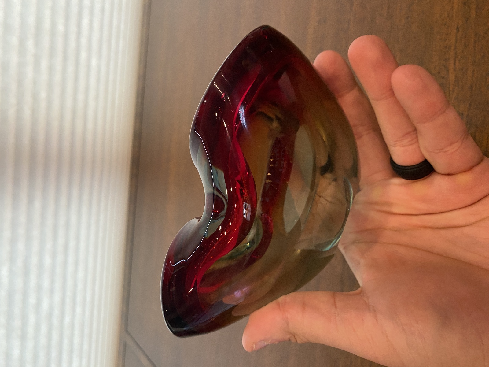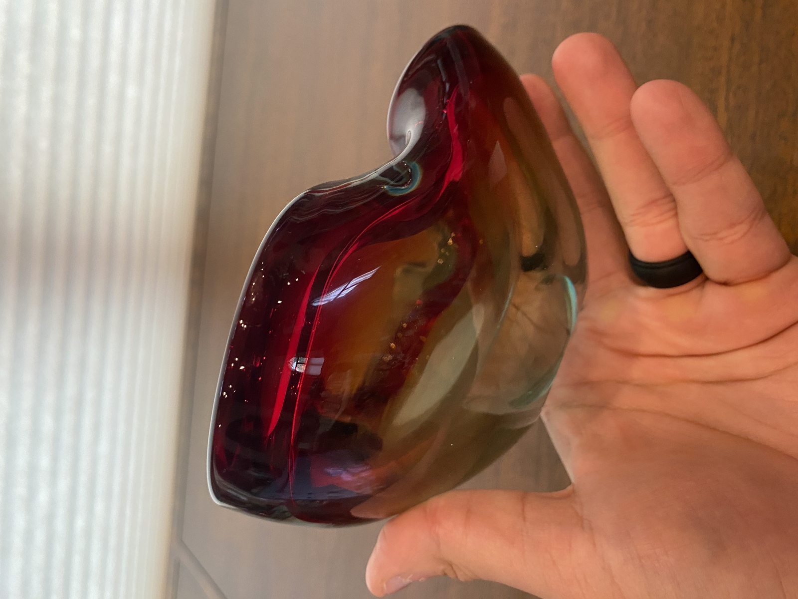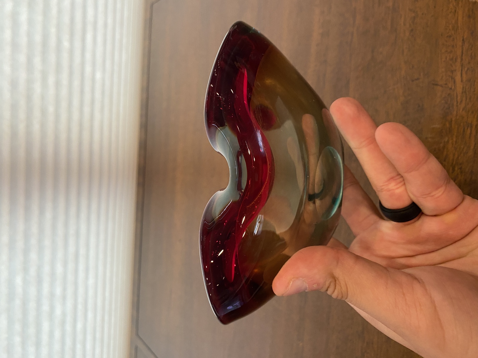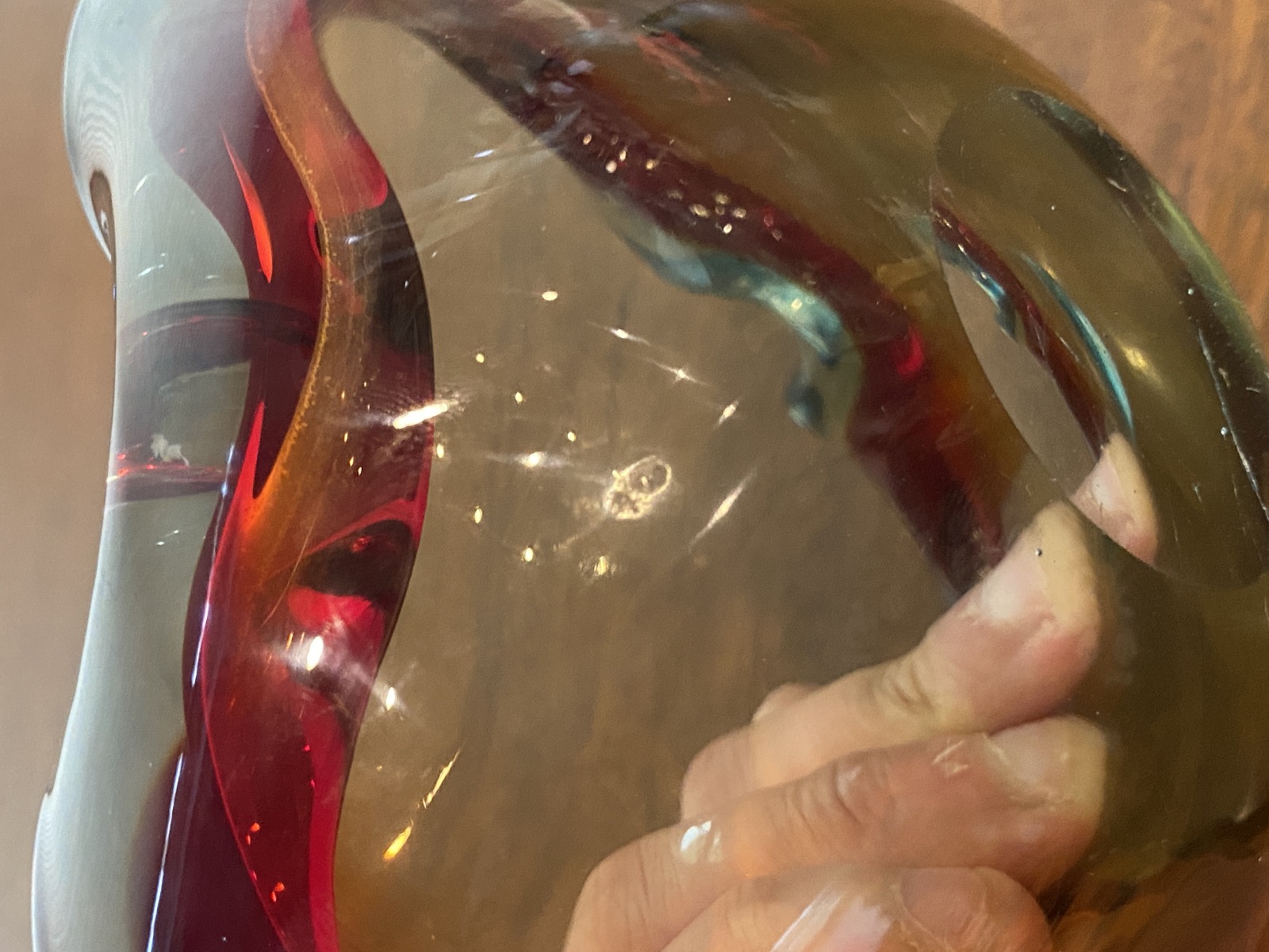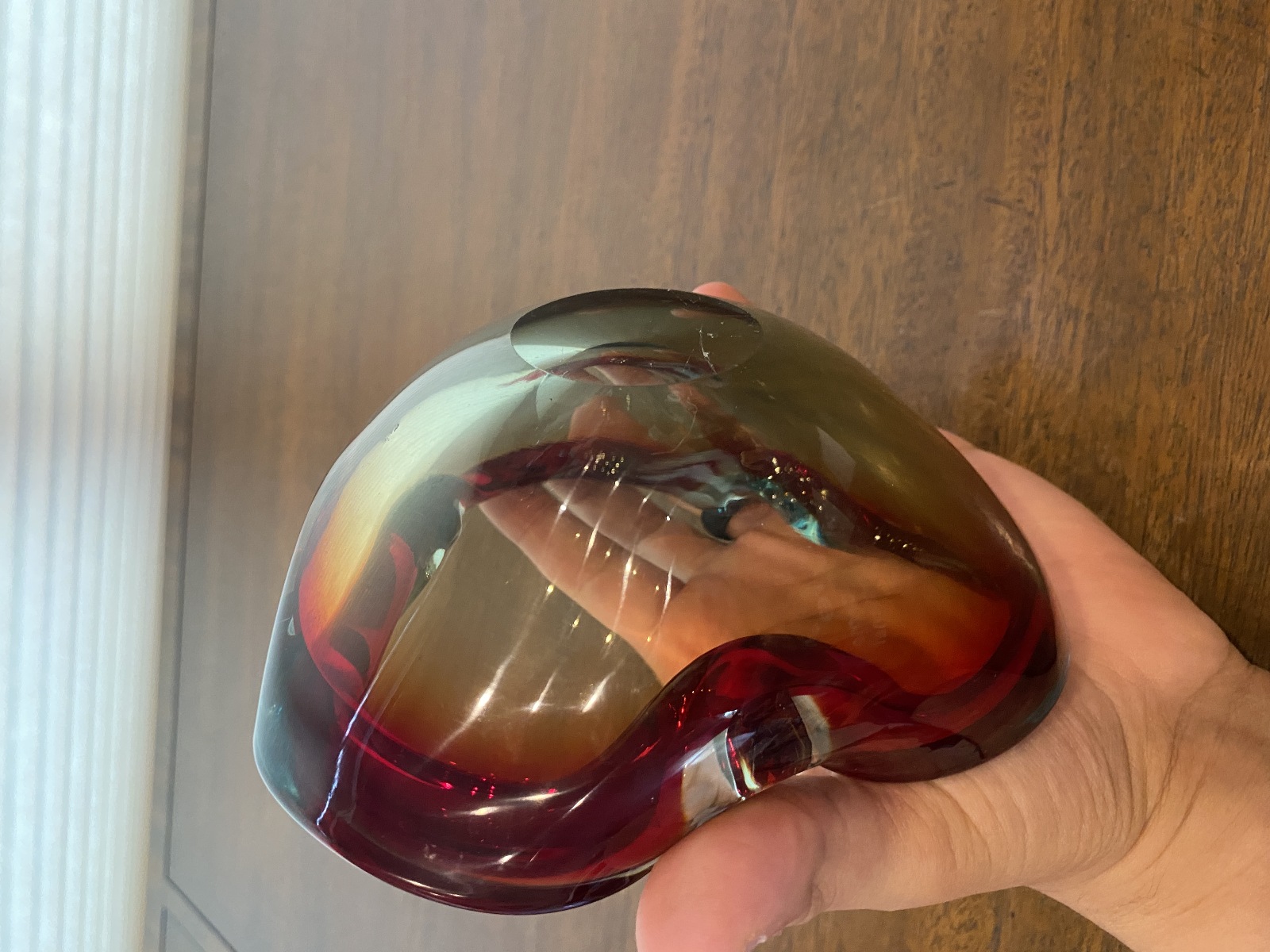 VTG MURANO Turquoise & Red Sommerso Art Glass Ashtray Bowl 6.5"L ITALY