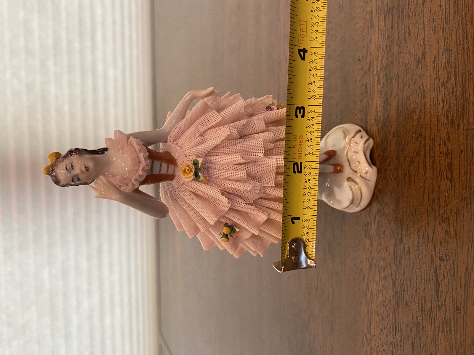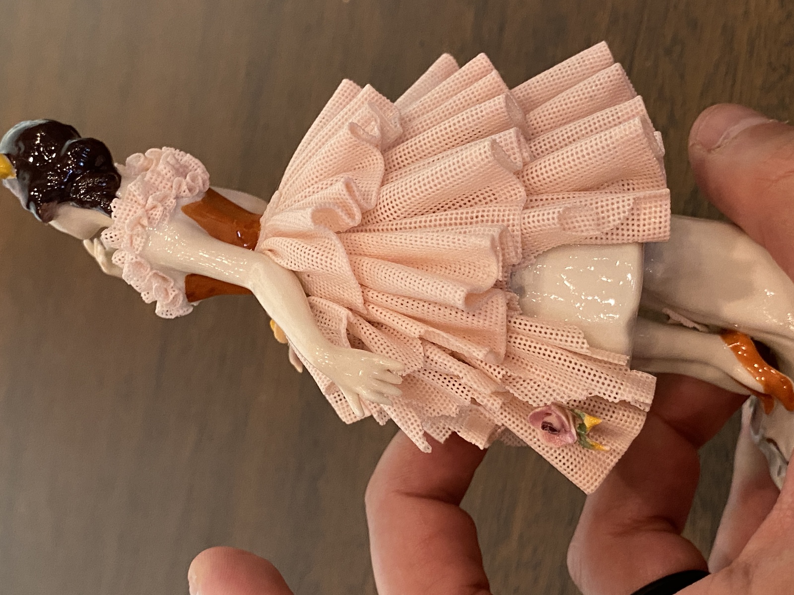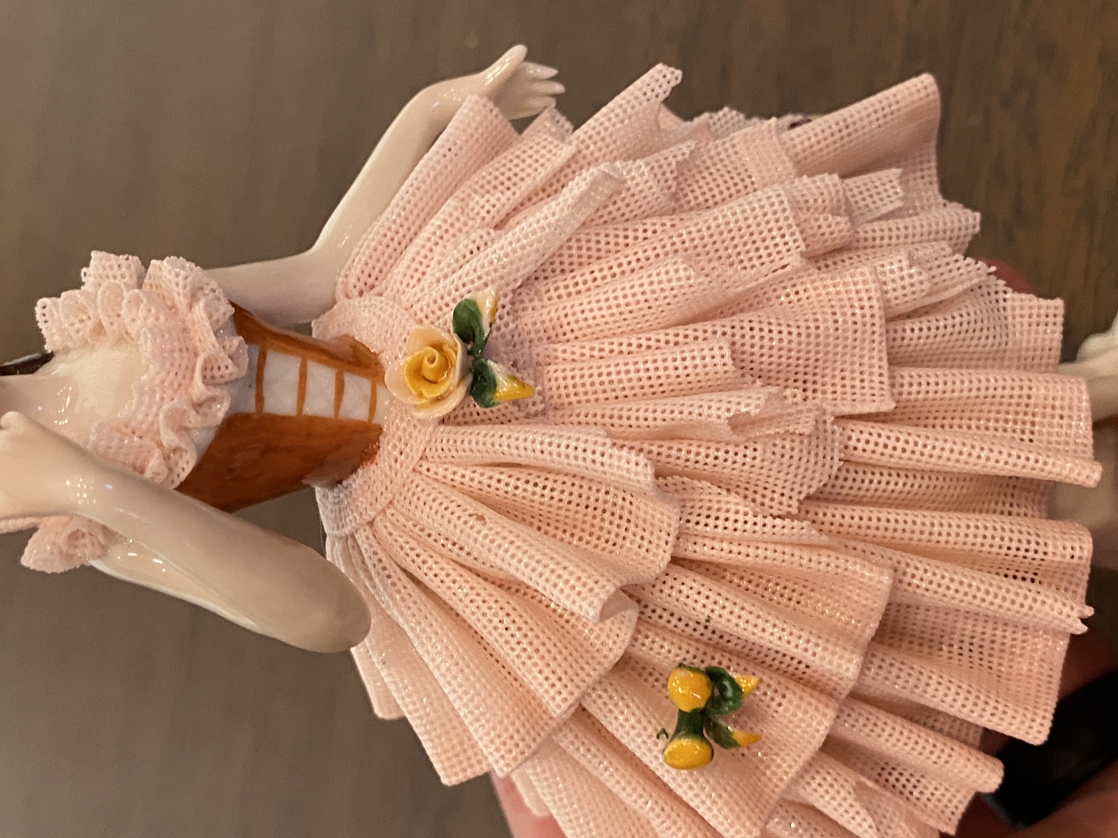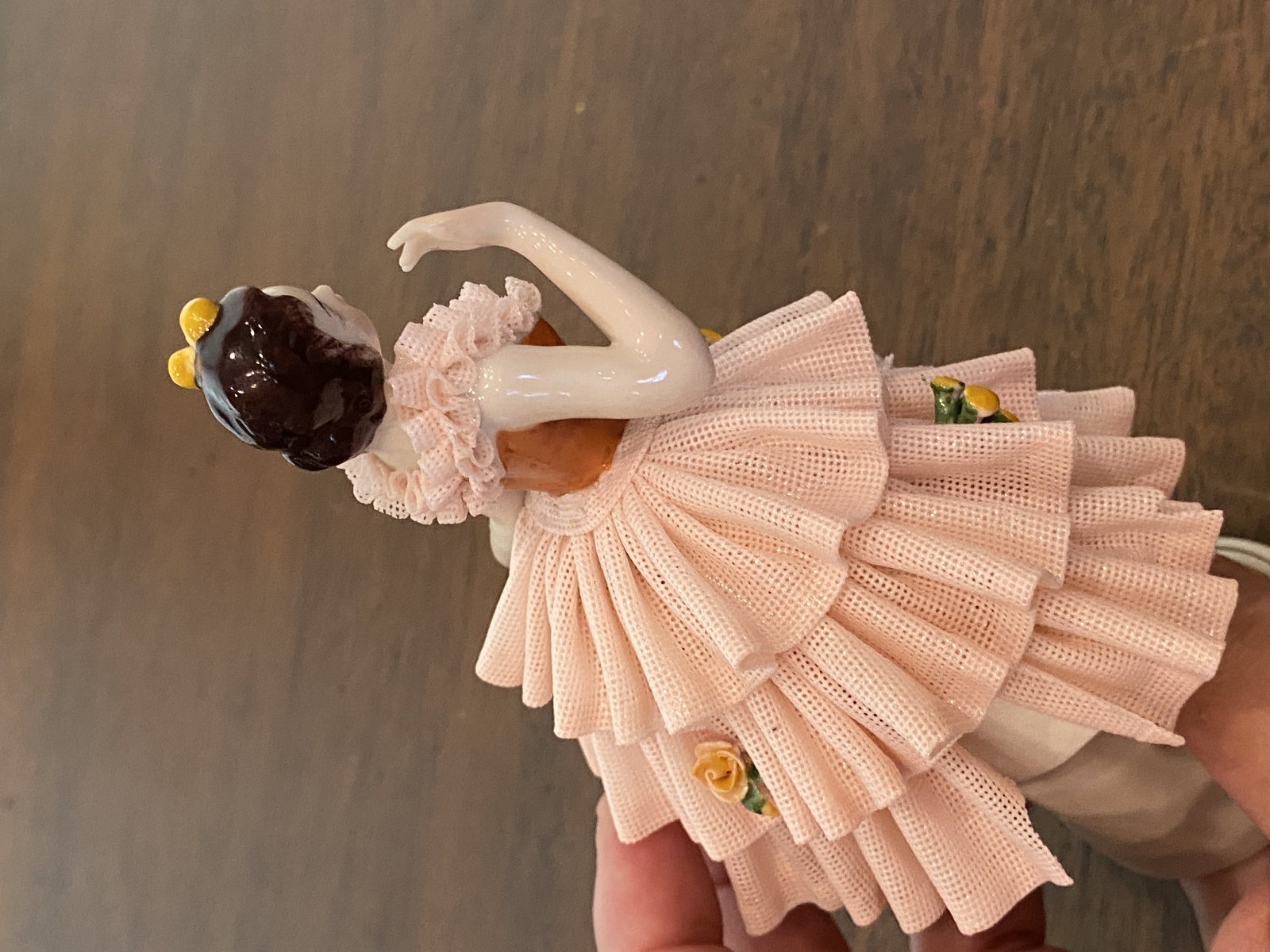 FAIR/DAMAGED used condition (PLEASE NOTE THERE IS SOME DAMAGE TO THE DRESS, NOTED IN THE PHOTOS, Also light scratching from its many years of love(age) and some minor wear to the dress as well as more severe damage to the dress(very common for these pieces) but overall still in good display shape for its age). (Please refer back to the photos for condition and feel free to message me if you have any questions. Thank you)!