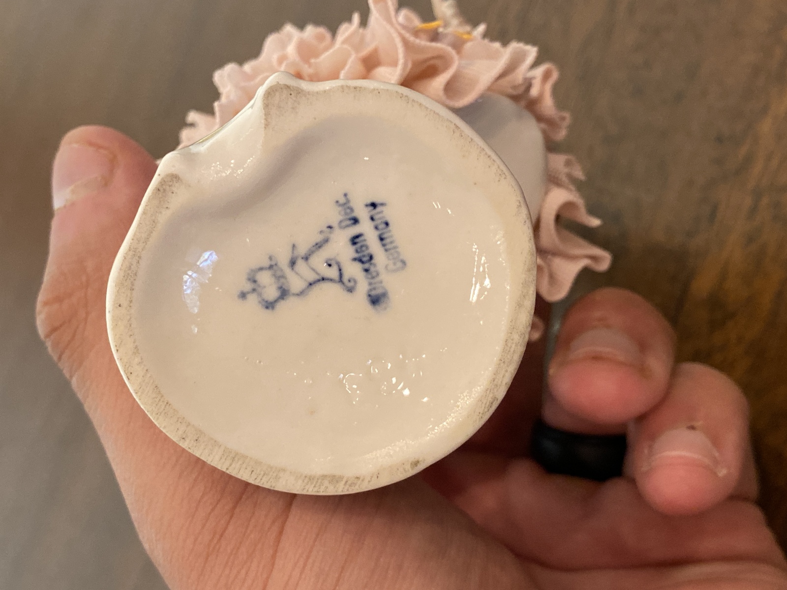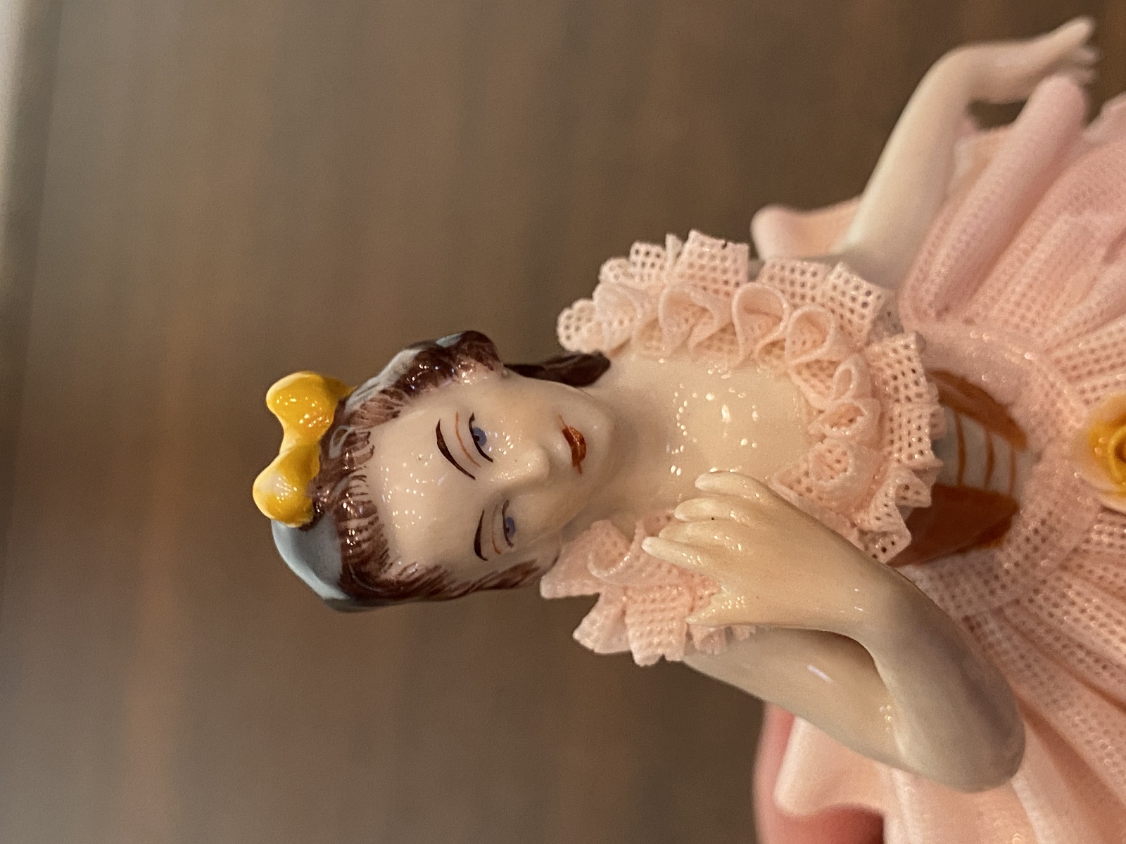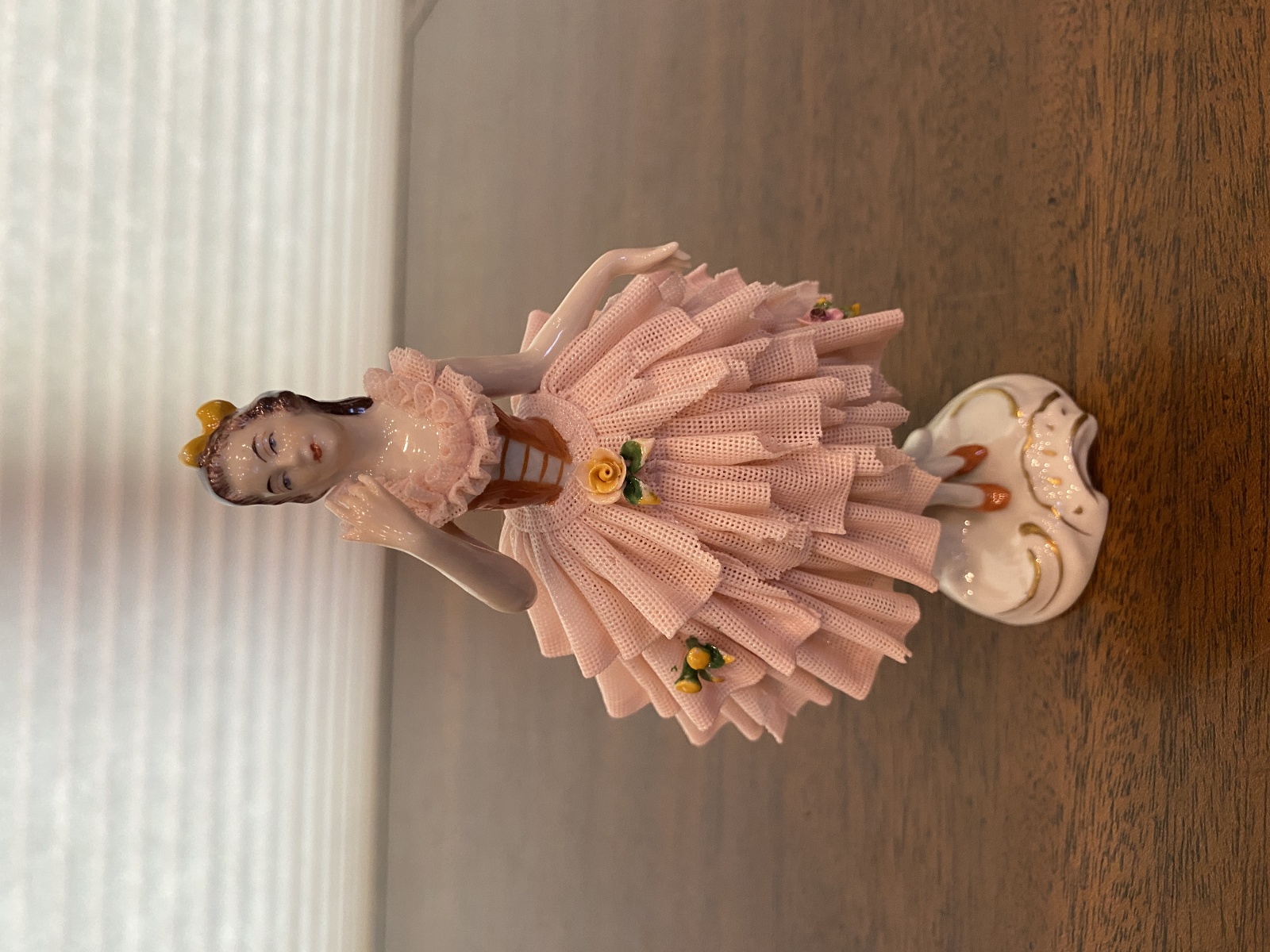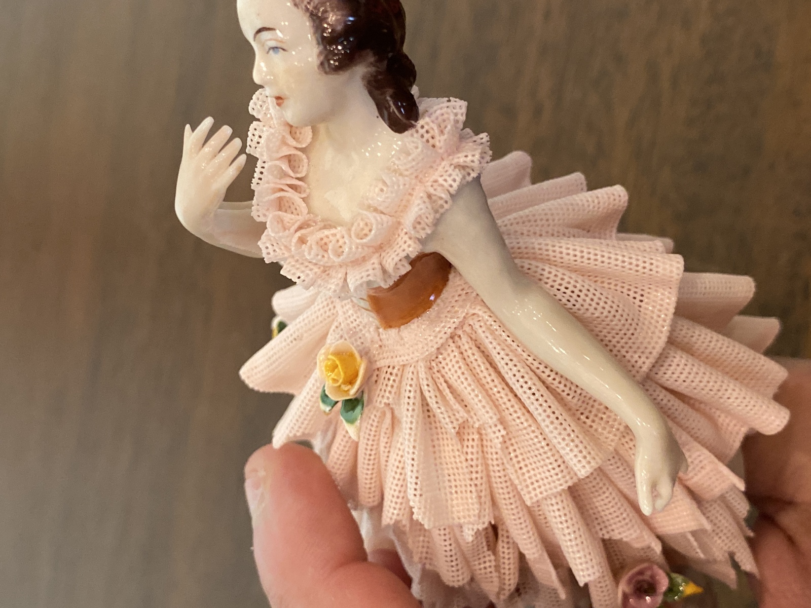 FAIR/DAMAGED used condition (PLEASE NOTE THERE IS SOME DAMAGE TO THE DRESS, NOTED IN THE PHOTOS, Also light scratching from its many years of love(age) and some minor wear to the dress as well as more severe damage to the dress(very common for these pieces) but overall still in good display shape for its age). (Please refer back to the photos for condition and feel free to message me if you have any questions. Thank you)!