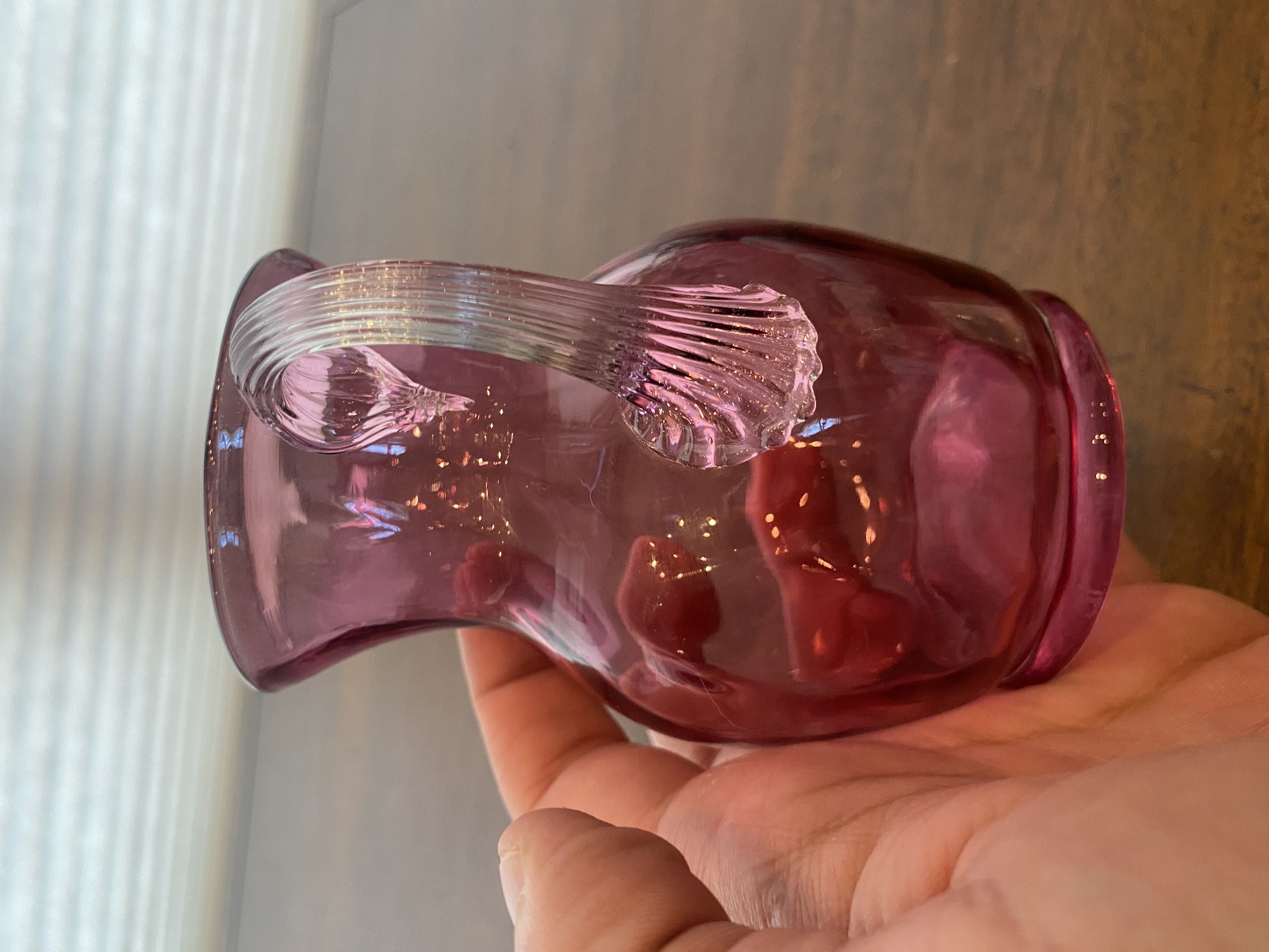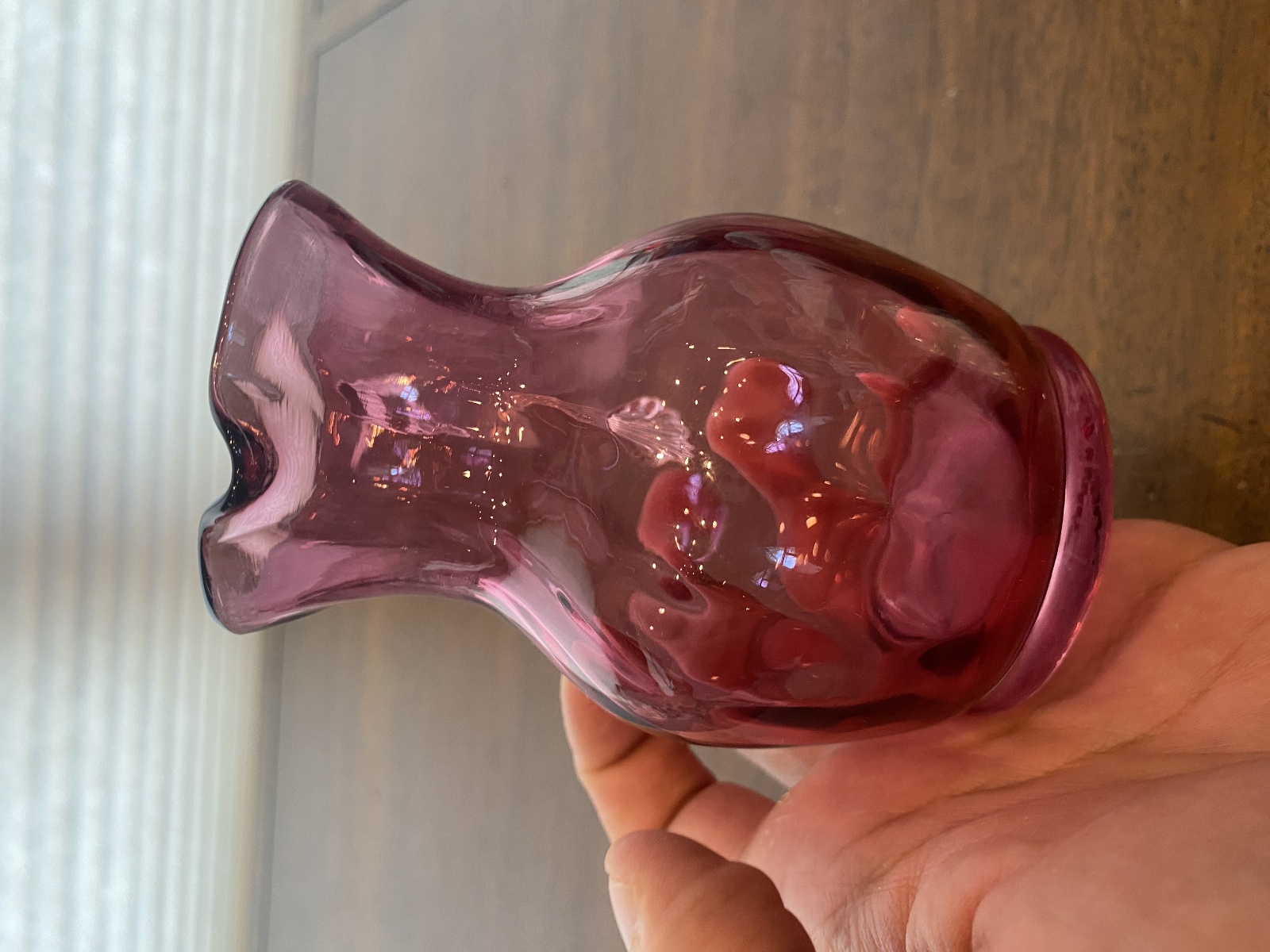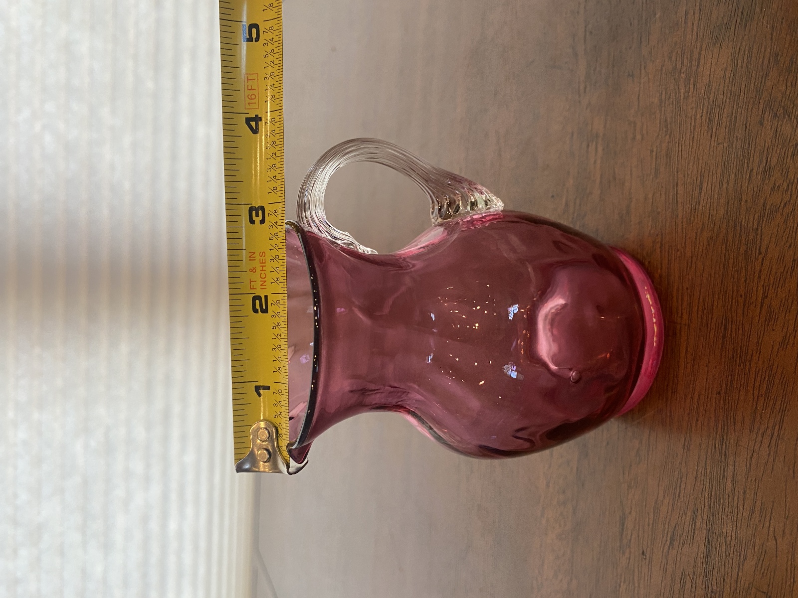 VTG Small Pilgrim Glass Cranberry Art Glass Paneled Optic Pitcher 4.5"H