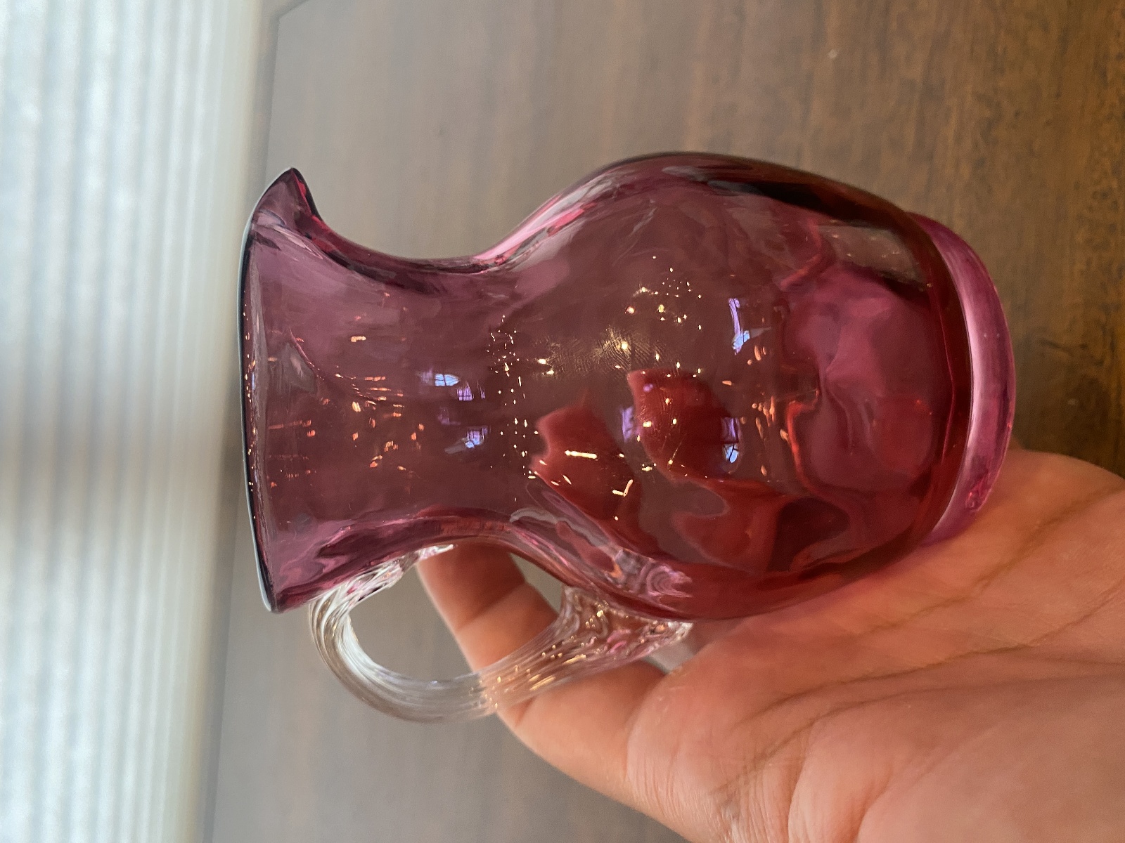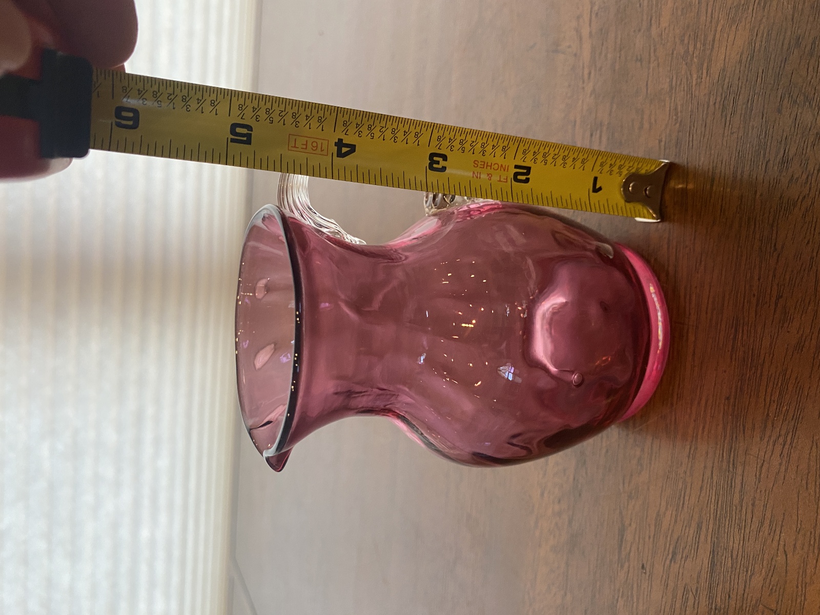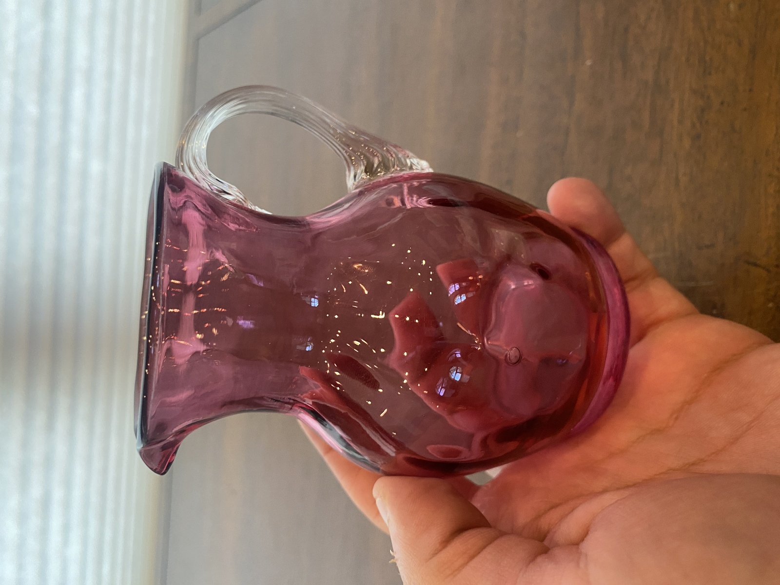 VTG Small Pilgrim Glass Cranberry Art Glass Paneled Optic Pitcher 4.5"H