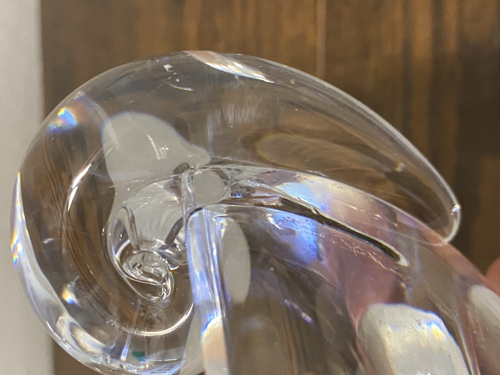 VTG STEUBEN Crystal Snail Scroll Olive Bowl By John Dreves 5"W SIGNED