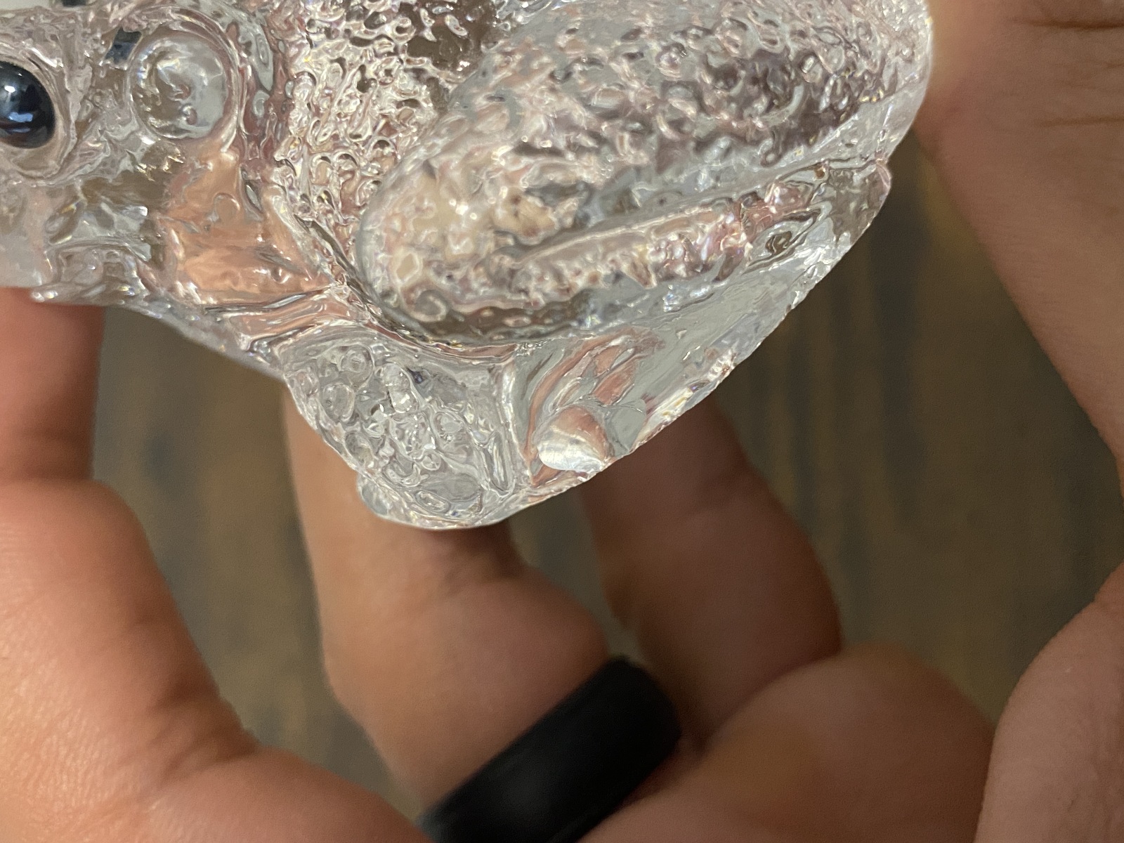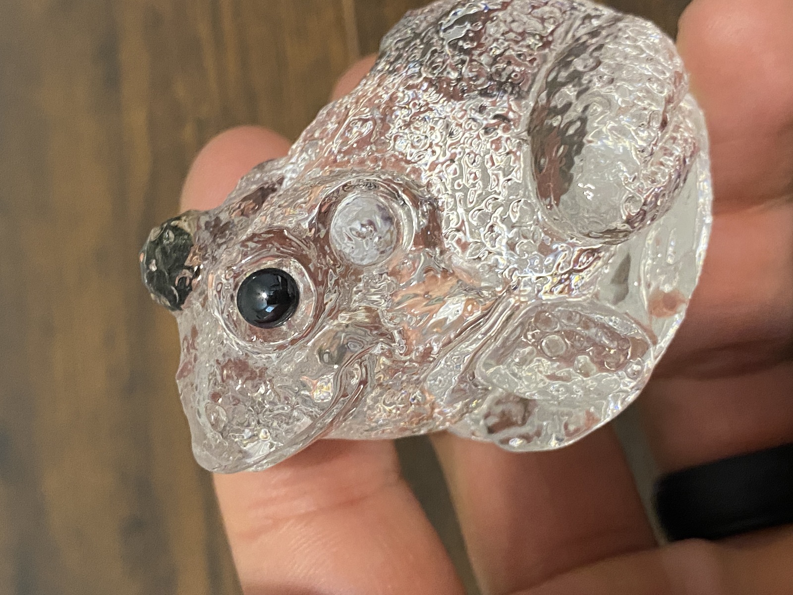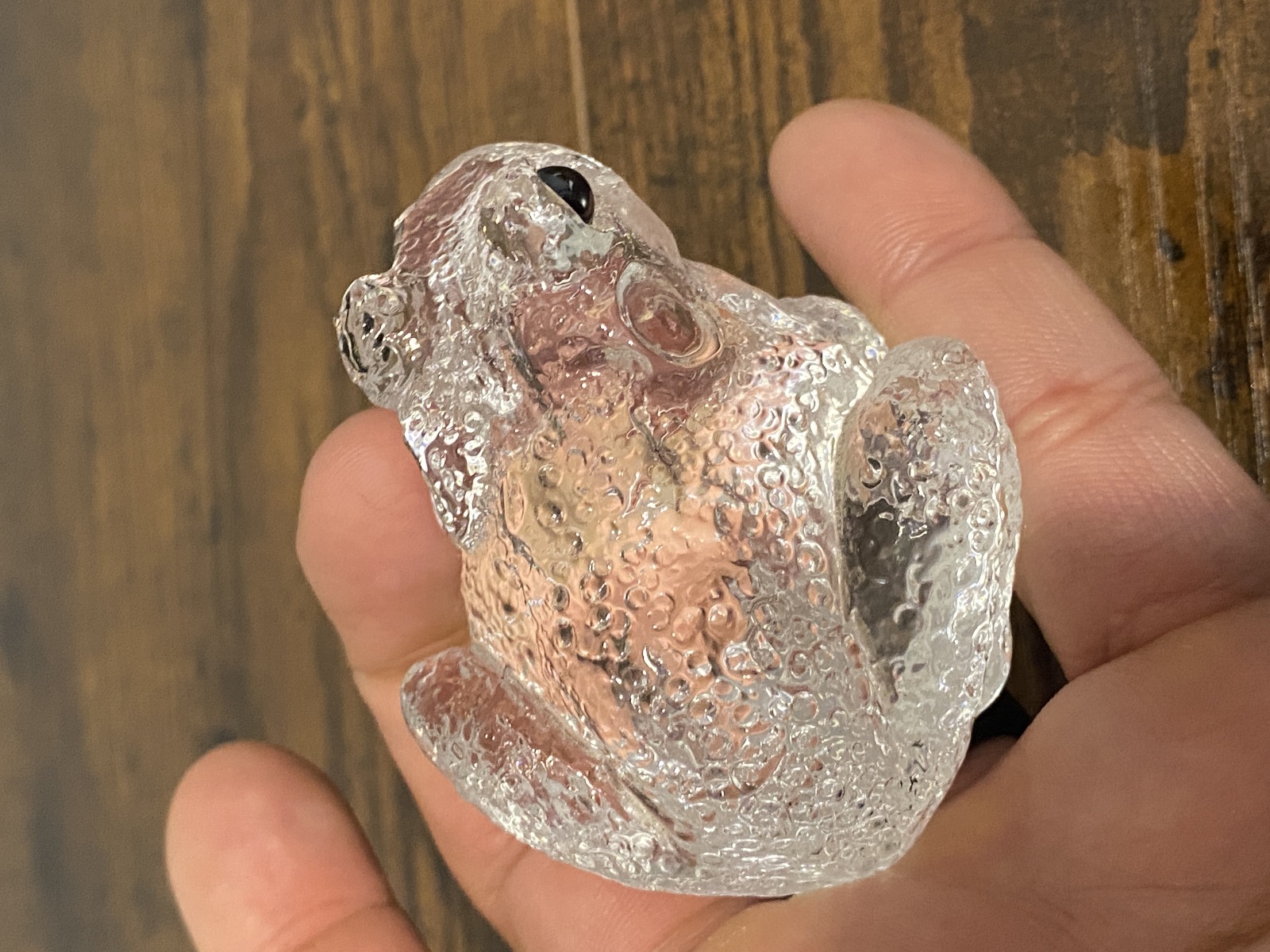 Clear Realistic Looking Crystal Art Glass Frog Paperweight 2.25"L